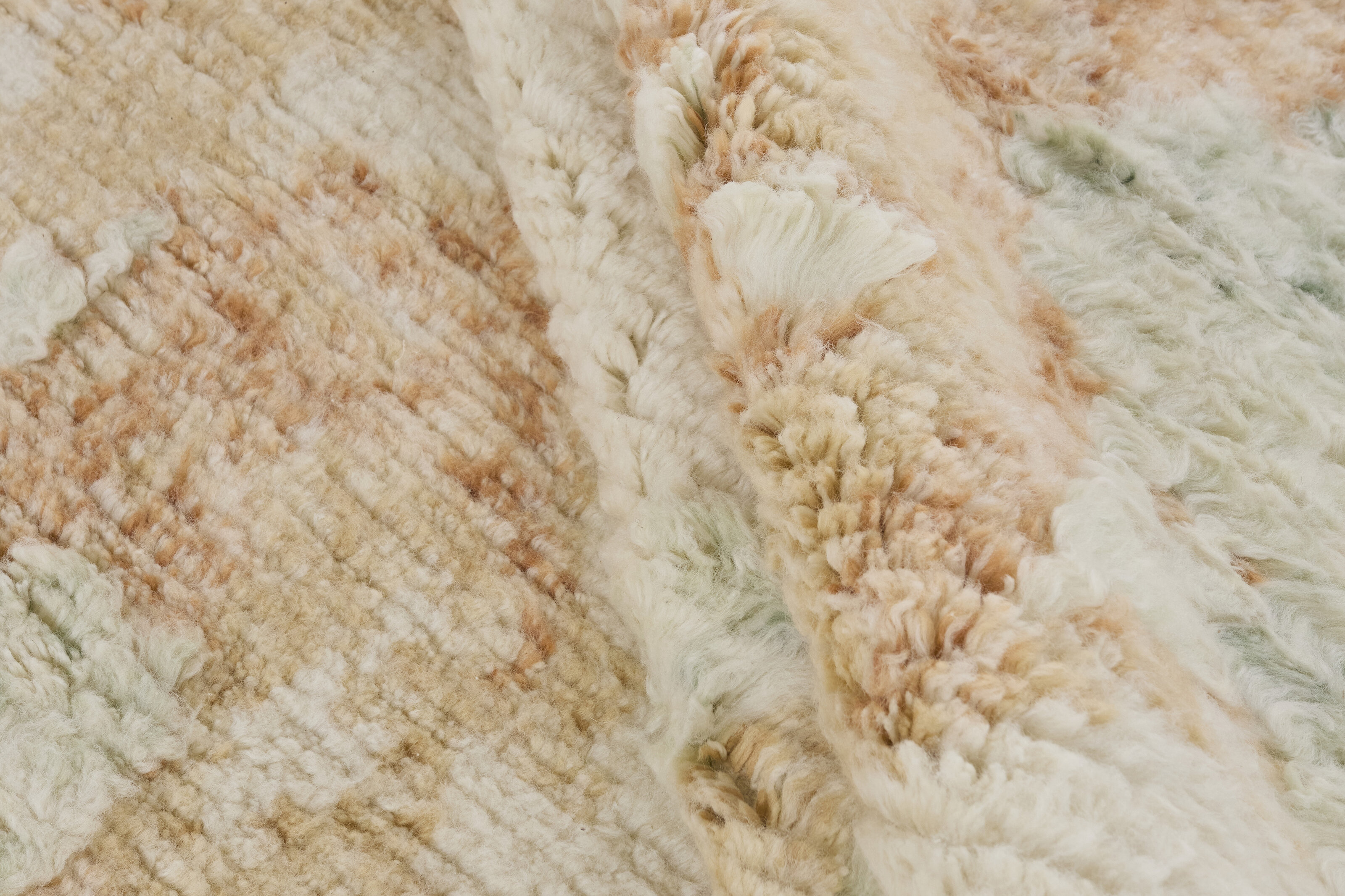 EternityItem no.: MT112677 Size: 200 cm x 300 cmHandknotted in India from pure, high-quality wool. This beautiful rug features a soft, almost cloud-like design that adds an inviting touch to any space. The delicate blend of light, beautiful colours ranges from silvery pink to golden olive and warm rust, creating a harmonious palette that feels both elegant and timeless. Perfect for bringing texture and warmth to any home.