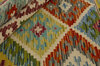 Afghan KelimItem no.: 1520458 Size: 84 cm x 130 cmAfghan Kelim rugs are hand woven by Turkmens in northern Afghanistan. Kelim is the name of a common Persian weave, but also of the technology used in the production. Kelims are primarily produced by nomads and are pile-less rugs, which are also used for bags, as wall decoration, or as curtains for tents. A natural colour scale with geometrical symbols and octagons is used.