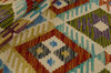 Afghan KelimItem no.: 1520595 Size: 83 cm x 196 cmAfghan Kelim rugs are hand woven by Turkmens in northern Afghanistan. Kelim is the name of a common Persian weave, but also of the technology used in the production. Kelims are primarily produced by nomads and are pile-less rugs, which are also used for bags, as wall decoration, or as curtains for tents. A natural colour scale with geometrical symbols and octagons is used.
