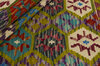Afghan KelimItem no.: 1520652 Size: 66 cm x 150 cmAfghan Kelim rugs are hand woven by Turkmens in northern Afghanistan. Kelim is the name of a common Persian weave, but also of the technology used in the production. Kelims are primarily produced by nomads and are pile-less rugs, which are also used for bags, as wall decoration, or as curtains for tents. A natural colour scale with geometrical symbols and octagons is used.