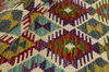 Afghan KelimItem no.: 1520661 Size: 60 cm x 159 cmAfghan Kelim rugs are hand woven by Turkmens in northern Afghanistan. Kelim is the name of a common Persian weave, but also of the technology used in the production. Kelims are primarily produced by nomads and are pile-less rugs, which are also used for bags, as wall decoration, or as curtains for tents. A natural colour scale with geometrical symbols and octagons is used.