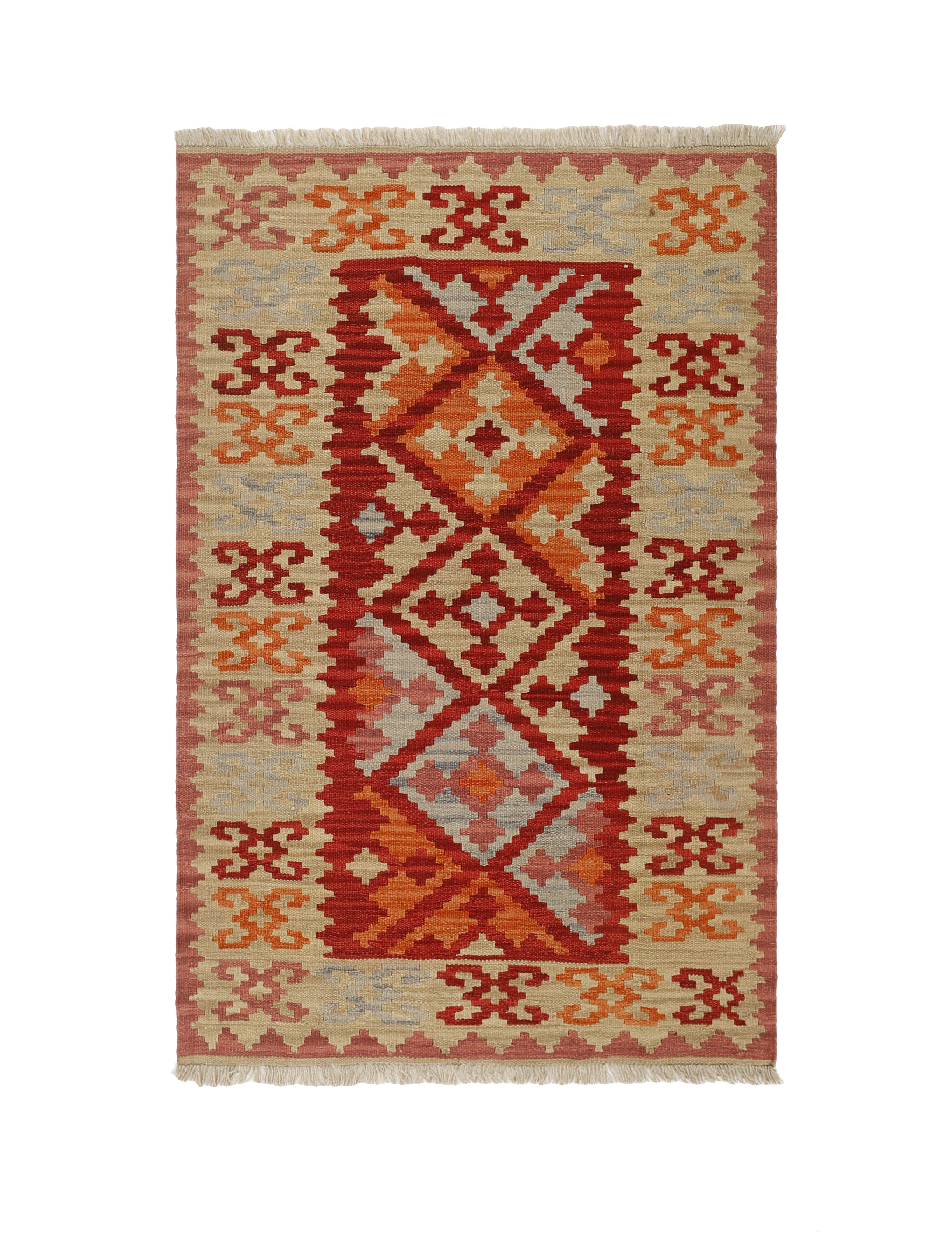 KelimItem no.: 1519276 Size: 118 cm x 181 cmThese Kelims are flat woven rugs, woven by nomads in western Persia. A special weaving technique is used, giving the rug a thinner, flatter surface, with no pile. Kelims are also quicker to produce, compared to common Oriental rugs. The colours are natural and no two rugs are alike. Kelims are produced in several regions and under many names, but the most well known Kelim types are Seneh, Sumak, Fars, and Kelim Gashghai.