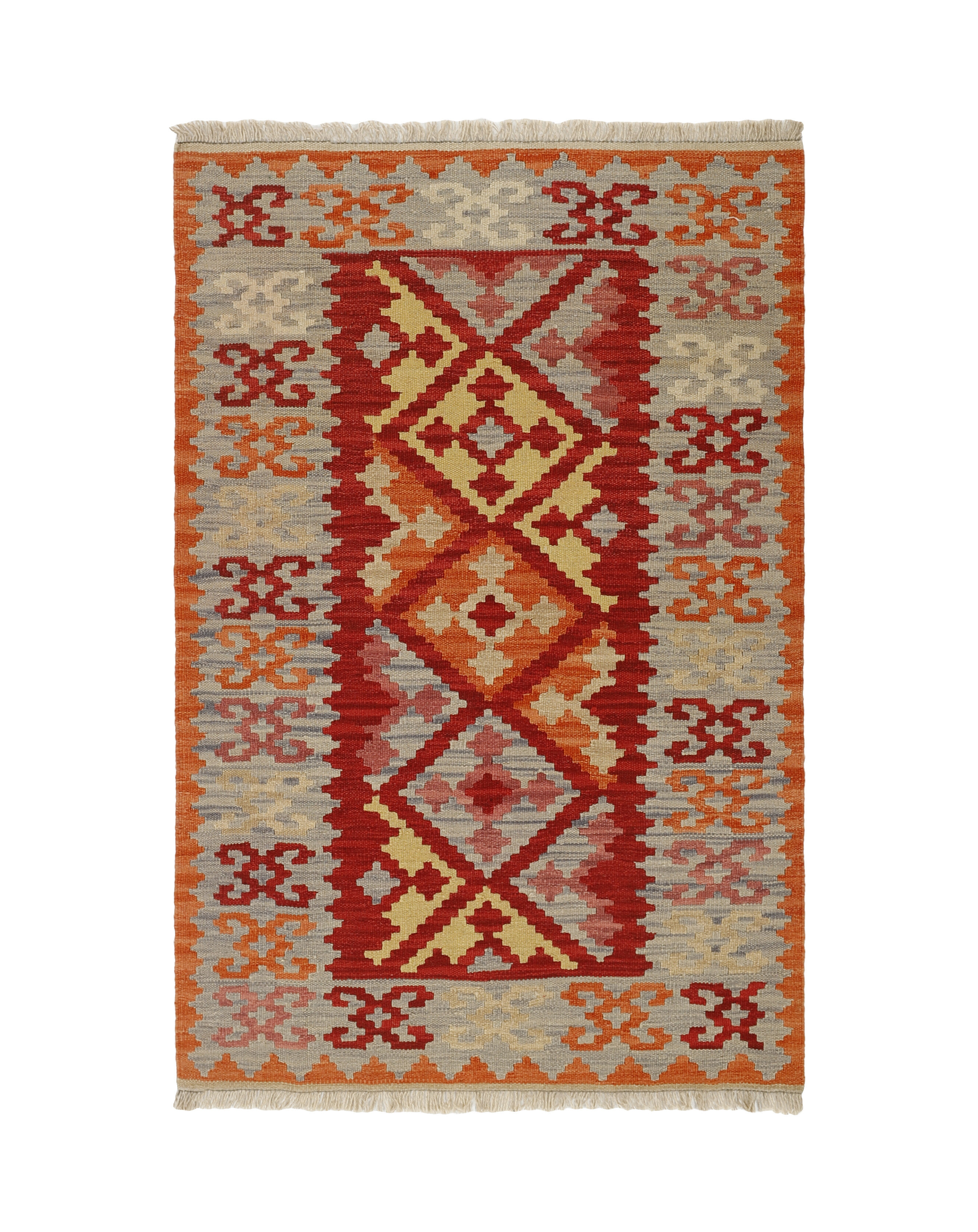 KelimItem no.: 1519282 Size: 115 cm x 177 cmThese Kelims are flat woven rugs, woven by nomads in western Persia. A special weaving technique is used, giving the rug a thinner, flatter surface, with no pile. Kelims are also quicker to produce, compared to common Oriental rugs. The colours are natural and no two rugs are alike. Kelims are produced in several regions and under many names, but the most well known Kelim types are Seneh, Sumak, Fars, and Kelim Gashghai.