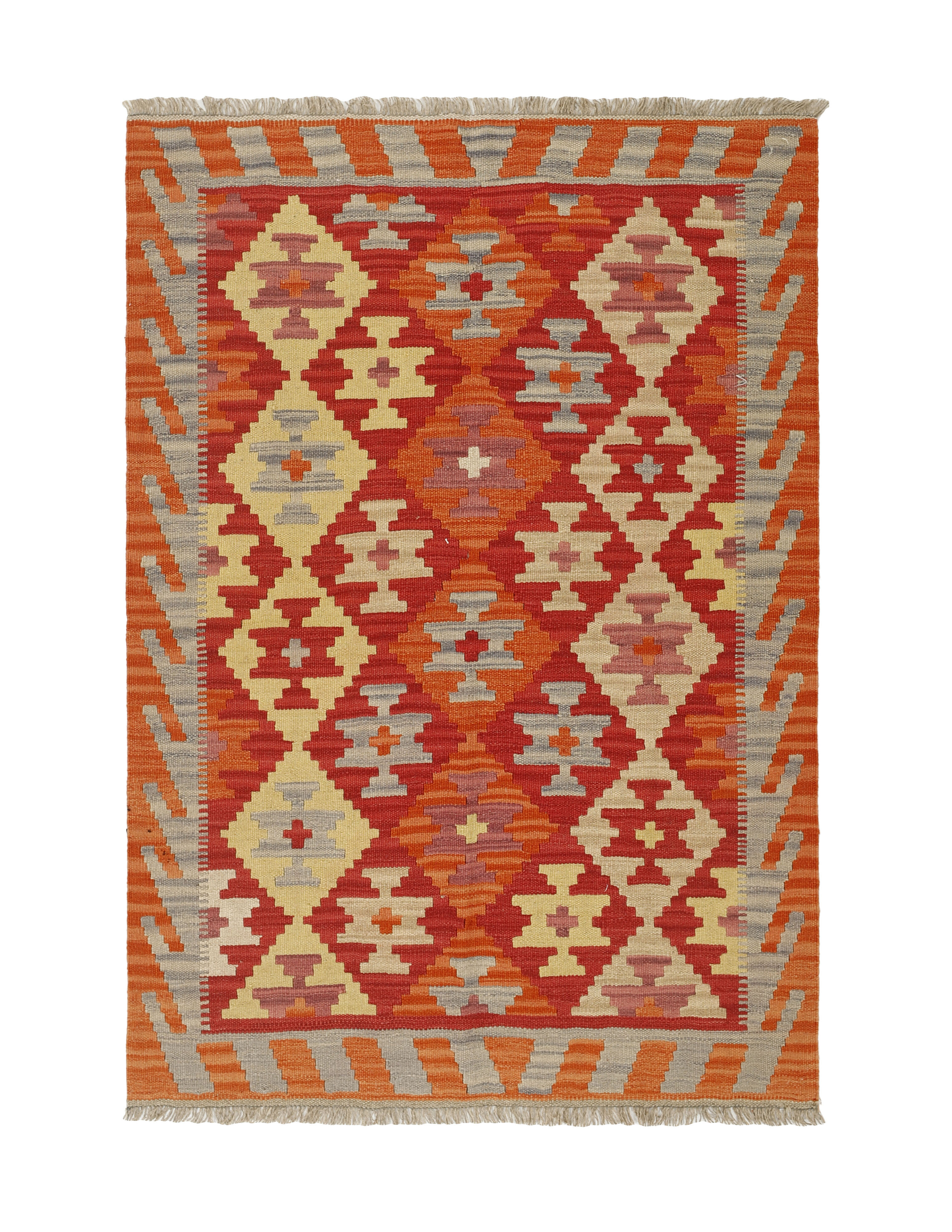 KelimItem no.: 1519291 Size: 125 cm x 185 cmThese Kelims are flat woven rugs, woven by nomads in western Persia. A special weaving technique is used, giving the rug a thinner, flatter surface, with no pile. Kelims are also quicker to produce, compared to common Oriental rugs. The colours are natural and no two rugs are alike. Kelims are produced in several regions and under many names, but the most well known Kelim types are Seneh, Sumak, Fars, and Kelim Gashghai.
