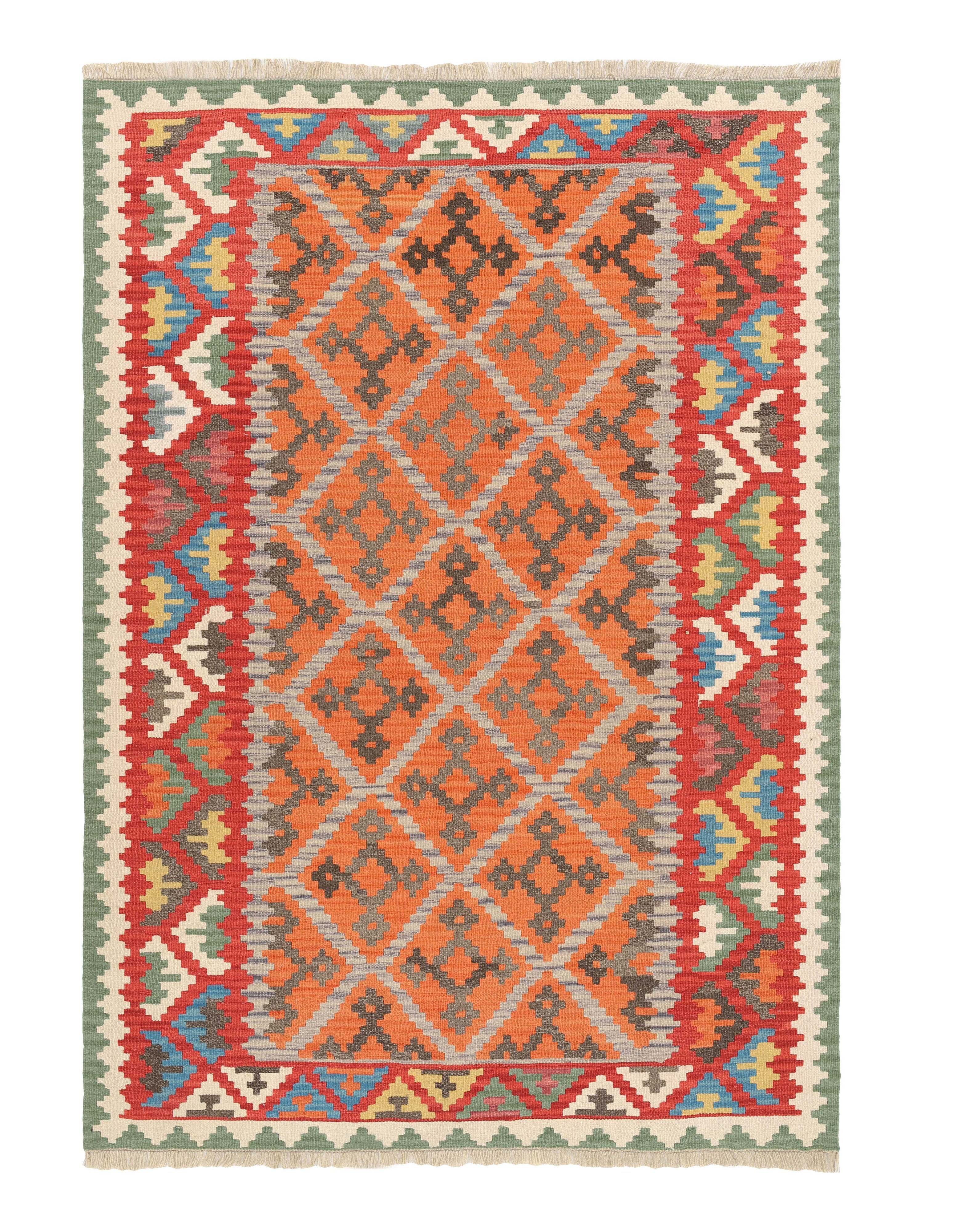 KelimItem no.: 1519370 Size: 172 cm x 245 cmThese Kelims are flat woven rugs, woven by nomads in western Persia. A special weaving technique is used, giving the rug a thinner, flatter surface, with no pile. Kelims are also quicker to produce, compared to common Oriental rugs. The colours are natural and no two rugs are alike. Kelims are produced in several regions and under many names, but the most well known Kelim types are Seneh, Sumak, Fars, and Kelim Gashghai.