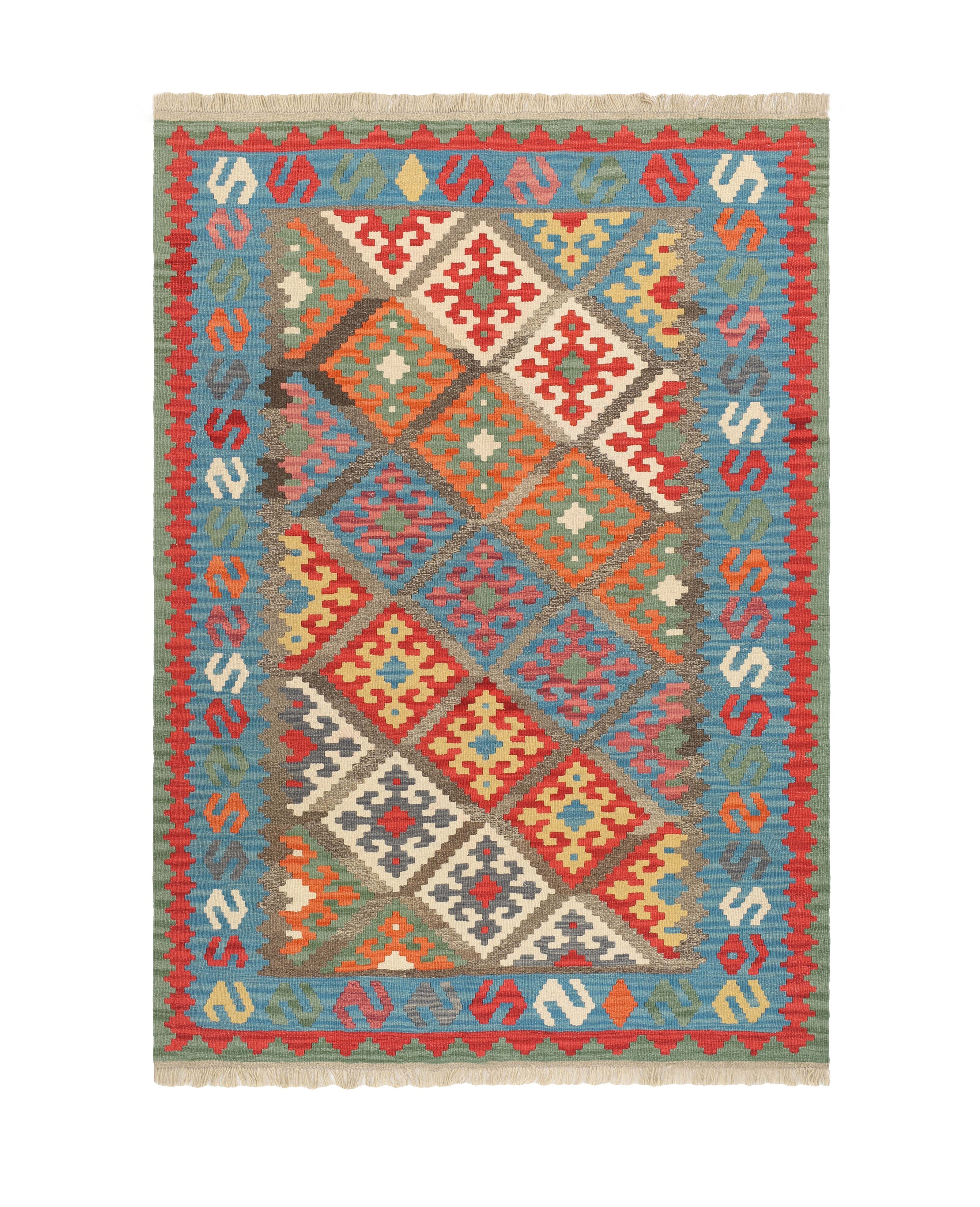 KelimItem no.: 1519372 Size: 150 cm x 210 cmThese Kelims are flat woven rugs, woven by nomads in western Persia. A special weaving technique is used, giving the rug a thinner, flatter surface, with no pile. Kelims are also quicker to produce, compared to common Oriental rugs. The colours are natural and no two rugs are alike. Kelims are produced in several regions and under many names, but the most well known Kelim types are Seneh, Sumak, Fars, and Kelim Gashghai.