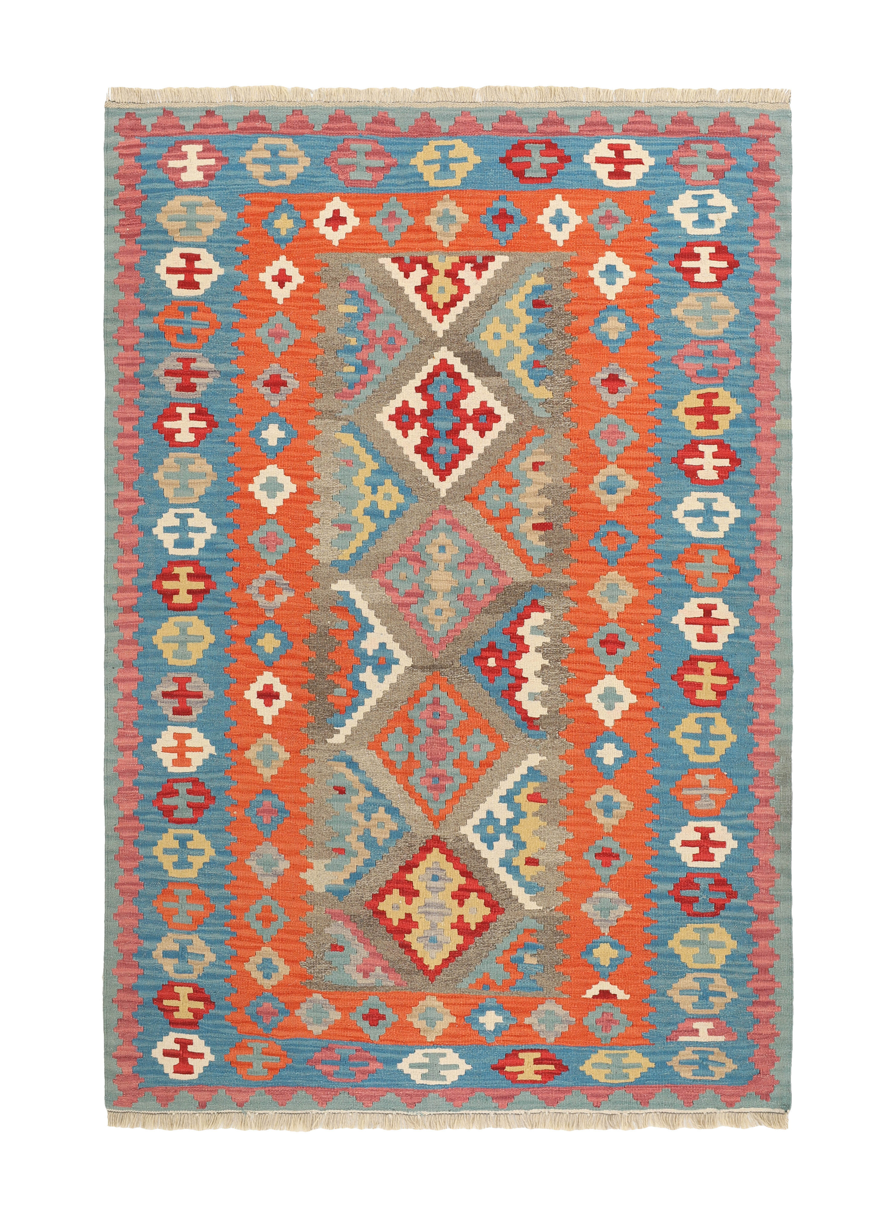 KelimItem no.: 1519459 Size: 168 cm x 245 cmThese Kelims are flat woven rugs, woven by nomads in western Persia. A special weaving technique is used, giving the rug a thinner, flatter surface, with no pile. Kelims are also quicker to produce, compared to common Oriental rugs. The colours are natural and no two rugs are alike. Kelims are produced in several regions and under many names, but the most well known Kelim types are Seneh, Sumak, Fars, and Kelim Gashghai.