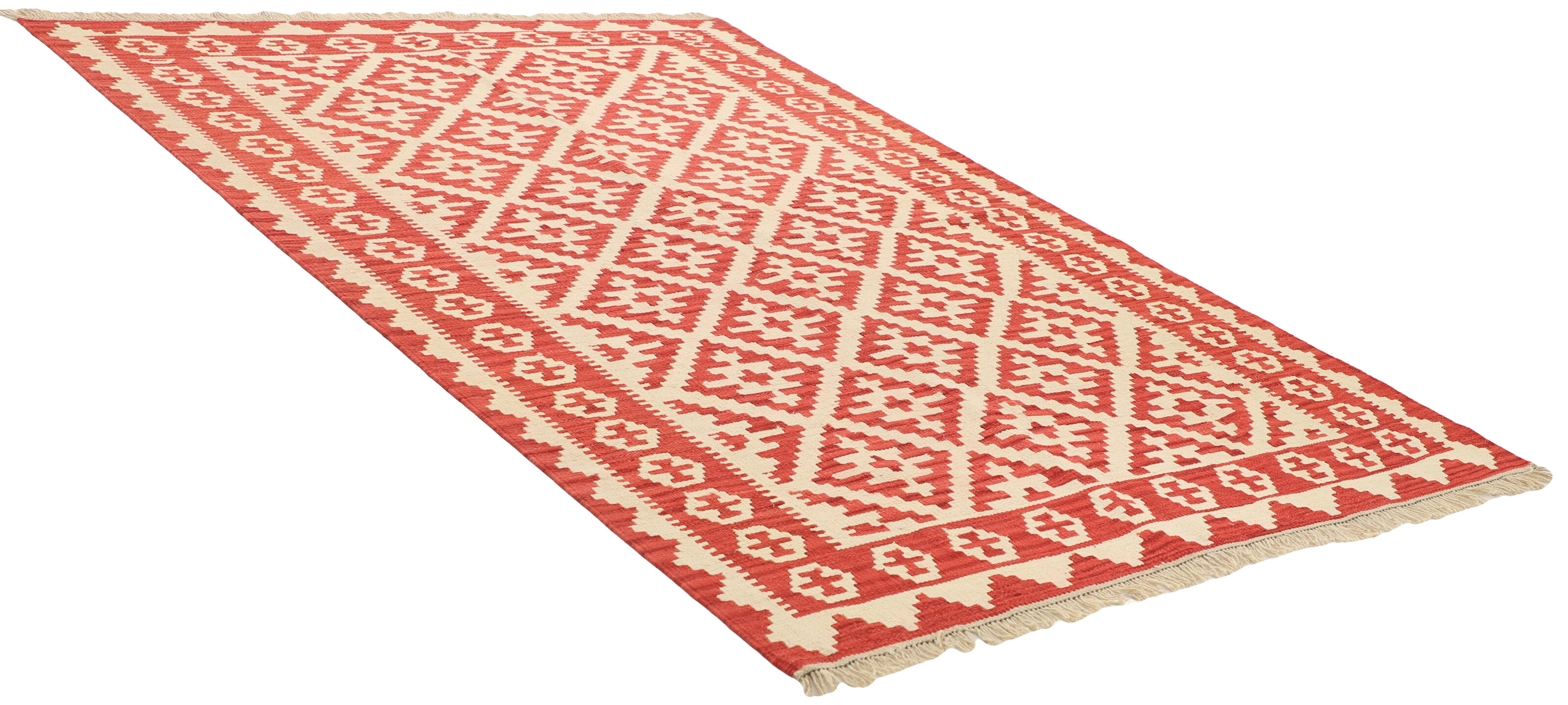 KelimItem no.: 1519465 Size: 166 cm x 230 cmThese Kelims are flat woven rugs, woven by nomads in western Persia. A special weaving technique is used, giving the rug a thinner, flatter surface, with no pile. Kelims are also quicker to produce, compared to common Oriental rugs. The colours are natural and no two rugs are alike. Kelims are produced in several regions and under many names, but the most well known Kelim types are Seneh, Sumak, Fars, and Kelim Gashghai.