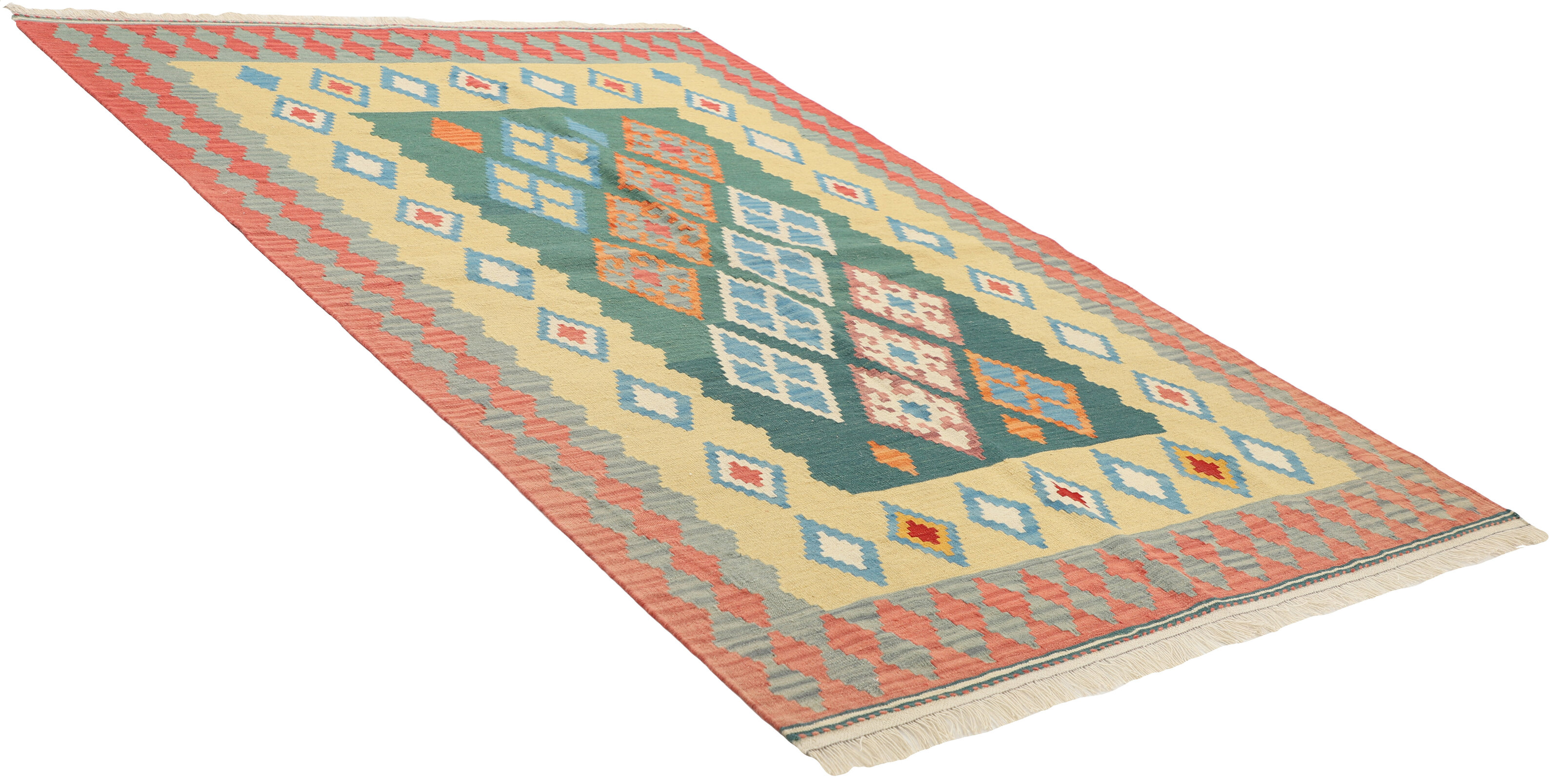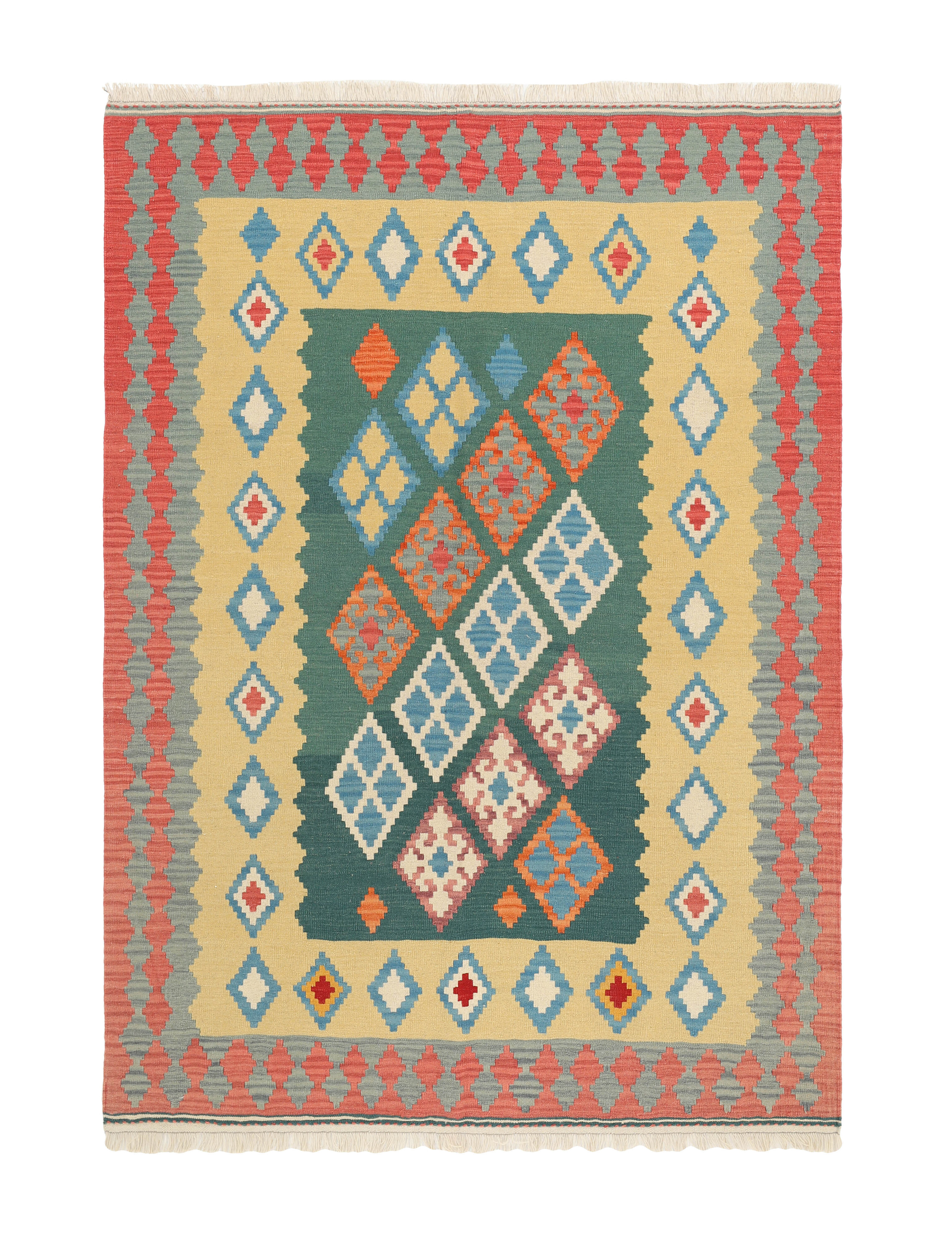 KelimItem no.: 1519466 Size: 175 cm x 244 cmThese Kelims are flat woven rugs, woven by nomads in western Persia. A special weaving technique is used, giving the rug a thinner, flatter surface, with no pile. Kelims are also quicker to produce, compared to common Oriental rugs. The colours are natural and no two rugs are alike. Kelims are produced in several regions and under many names, but the most well known Kelim types are Seneh, Sumak, Fars, and Kelim Gashghai.