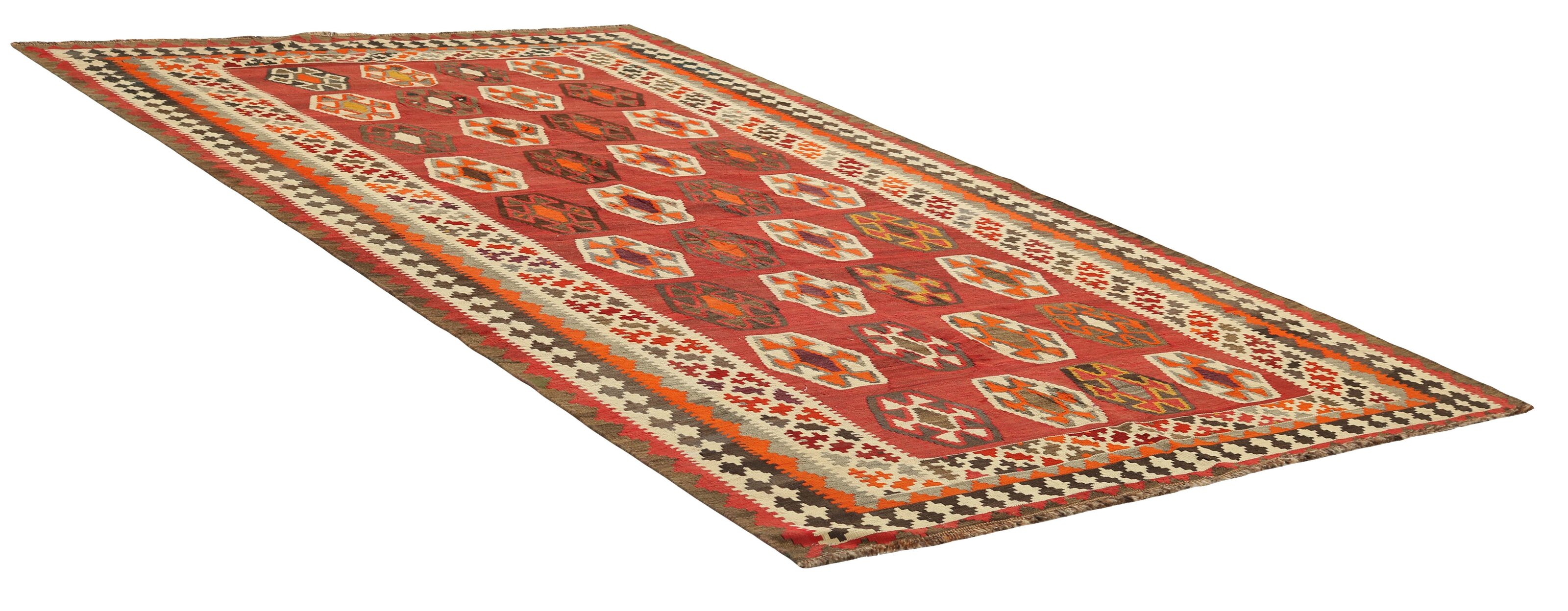 Kelim OldItem no.: 1438713 Size: 170 cm x 281 cmPersian Kelim Old are often oblong, and were originally used in tents by the nomads. Kelim rugs are often placed on top of other rugs as insulation. The rugs are often up to 50 years old, sometimes more than 80 years. The nomads knot or weave the rugs they need themselves, and use them for many different purposes, such as saddlebags for camels and donkeys, but they are mostly used for motorbikes, storing clothes, for sitting on, and as sleeping blankets.