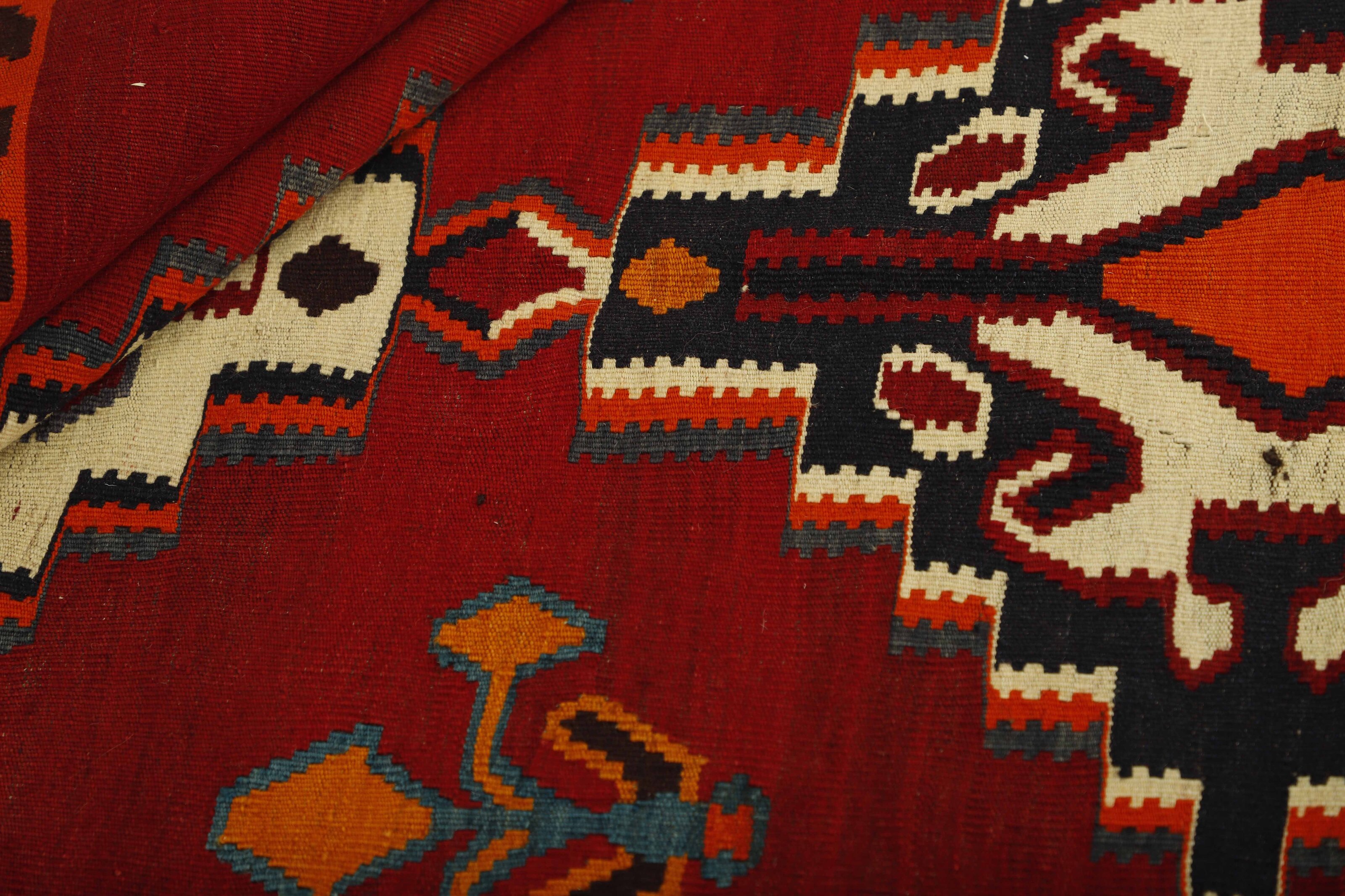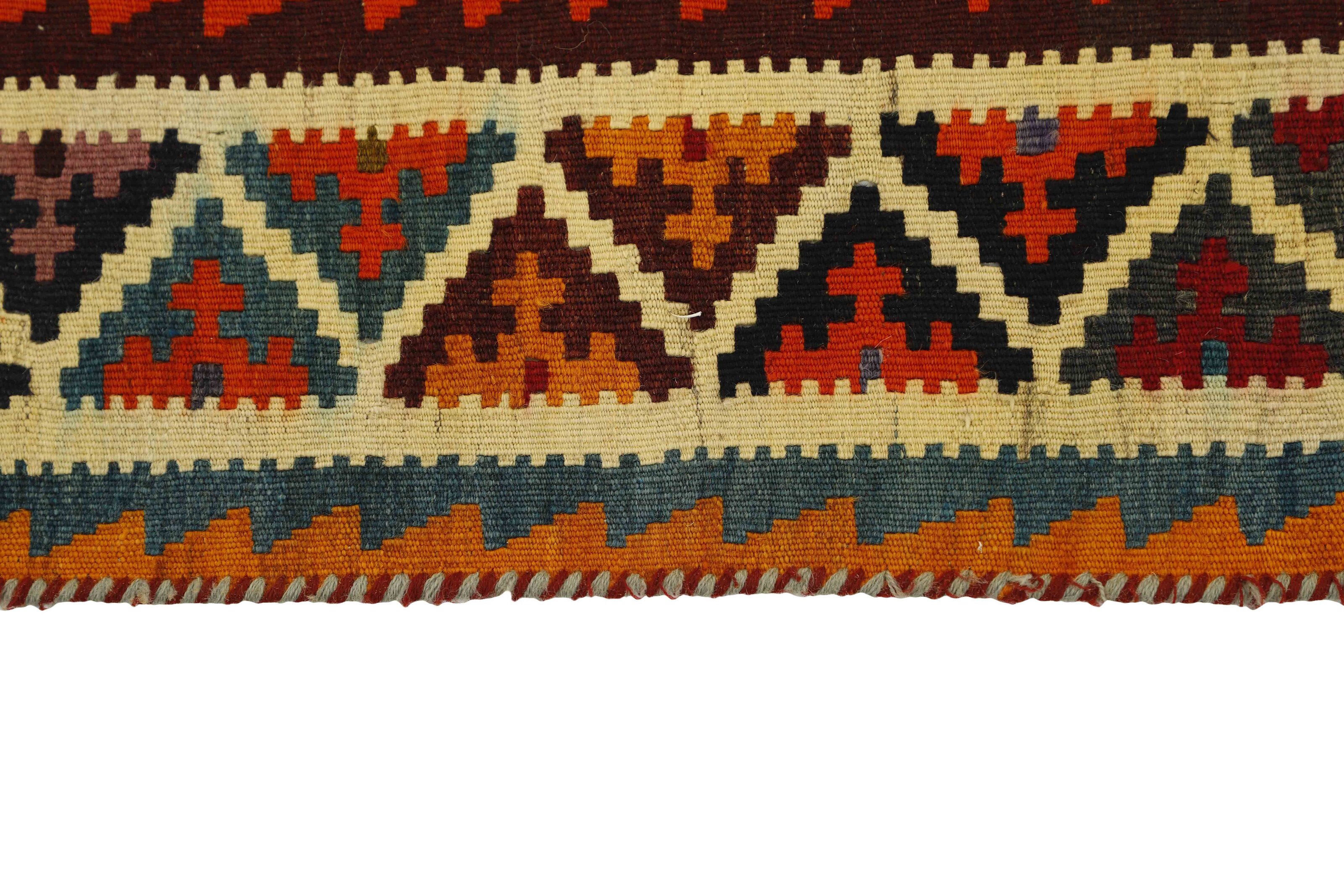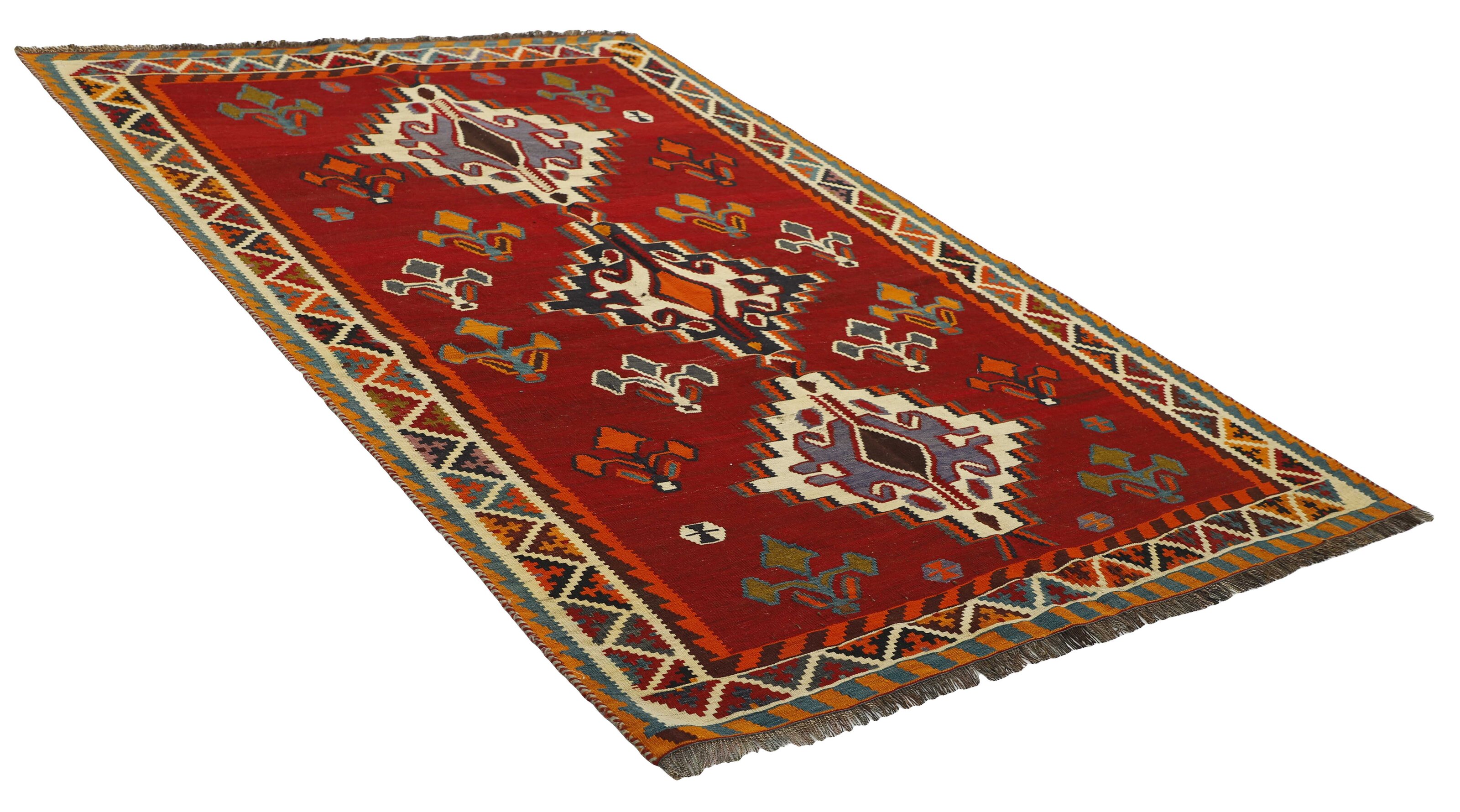 Kelim OldItem no.: 1486842 Size: 155 cm x 228 cmPersian Kelim Old are often oblong, and were originally used in tents by the nomads. Kelim rugs are often placed on top of other rugs as insulation. The rugs are often up to 50 years old, sometimes more than 80 years. The nomads knot or weave the rugs they need themselves, and use them for many different purposes, such as saddlebags for camels and donkeys, but they are mostly used for motorbikes, storing clothes, for sitting on, and as sleeping blankets.