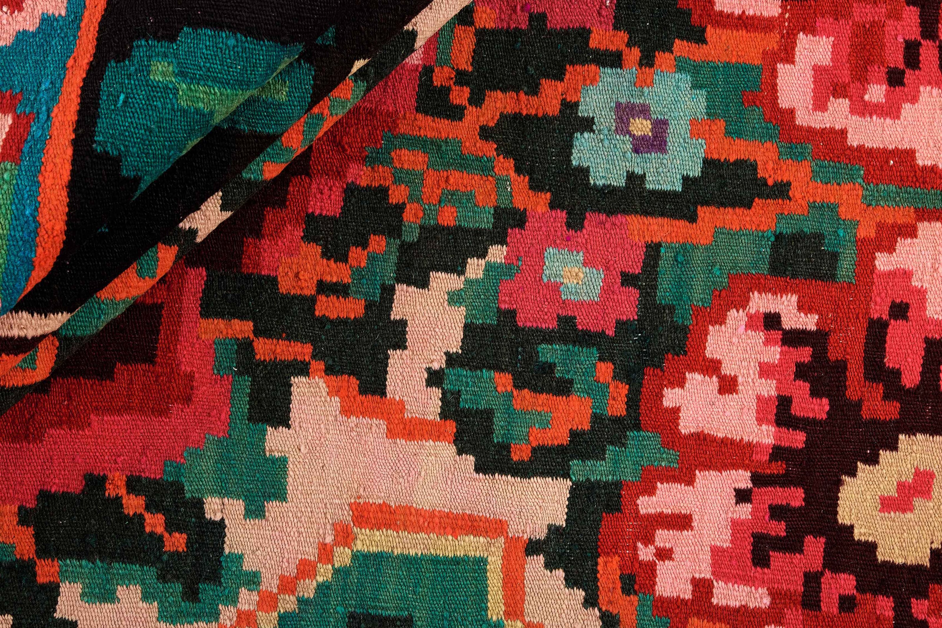 Rose Kelims are produced in Moldavia and northern Turkey. Rose Kelims are woven using a special weaving technique, giving the rugs a thinner, felt-like quality. Rose Kelim are older rugs and can easily be up to 50 years old. They are relatively rare and are hard to get hold of. The motifs are typically very flowered, in strong colours on a dark background.