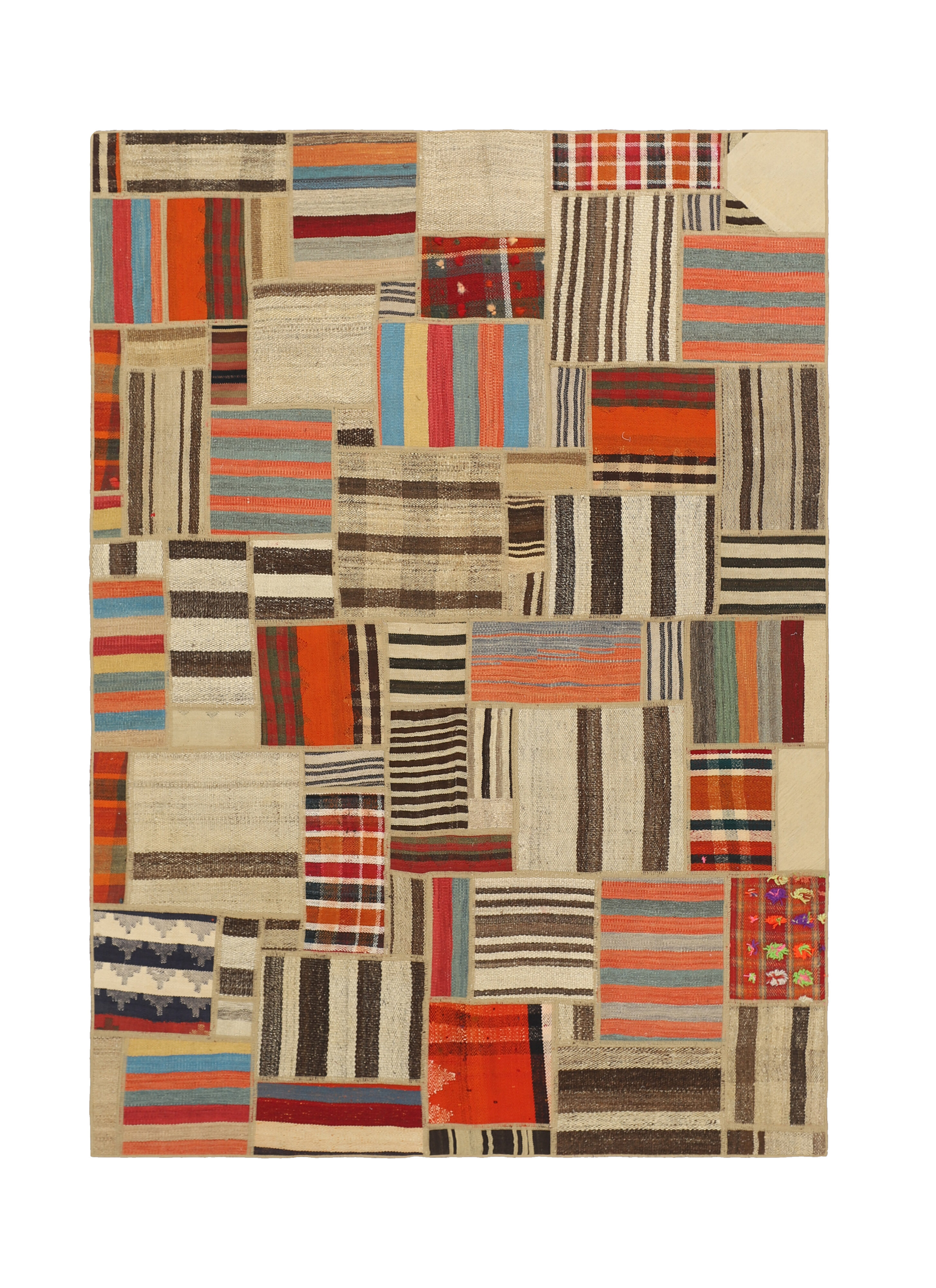 Tekkeh Kelims are produced from older Persian Kelims that have been cut into smaller pieces, sewn together, and given a back cover. Tekkeh means piece, so Tekkeh Kelim means a patchwork rug where many pieces have been sewn together. Tekkeh Kelims are available in many sizes and have thoroughly unique patterns. The rugs are produced from 20-50 year old Kelims. Kelim rugs are hand woven rugs that are made using a special weaving technique, giving the rugs a thinner, felt-like quality. Tekkeh Kelim is produced of older Persian kelim, cut into smaller pieces, sown together and with a backside applied. Tekkeh is the Persian name for pieces, and Tekkeh kelim is an expression for a patchwork rug, where several pieces are sown together. Tekkeh Kelim is available in many sizes and all pieces has unique patterns. used a special weaving technique, that gives the rug a thinner and felt like quality.