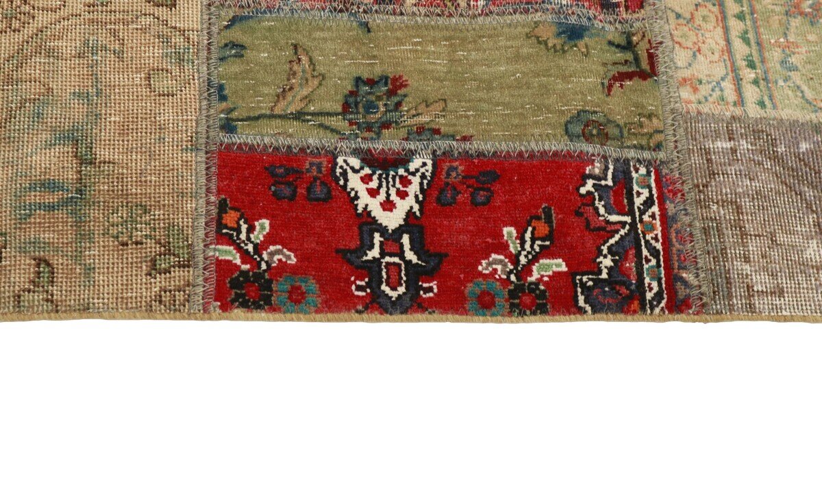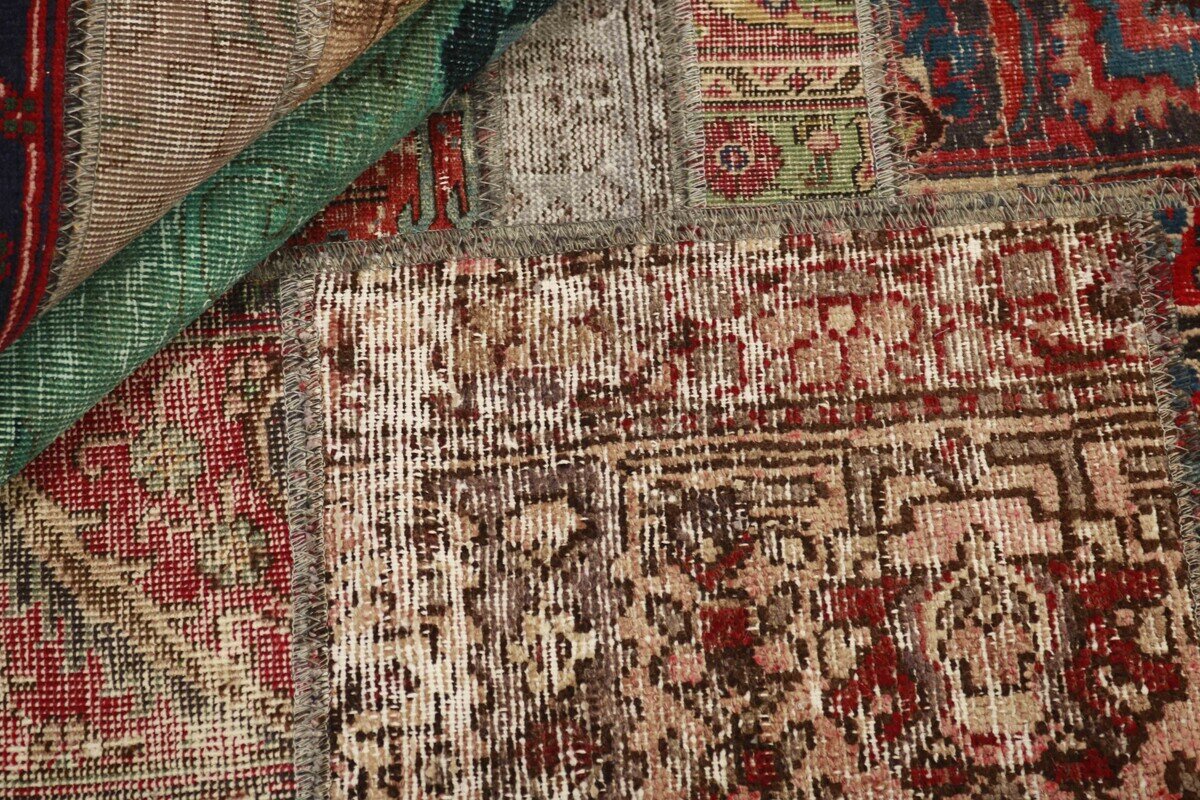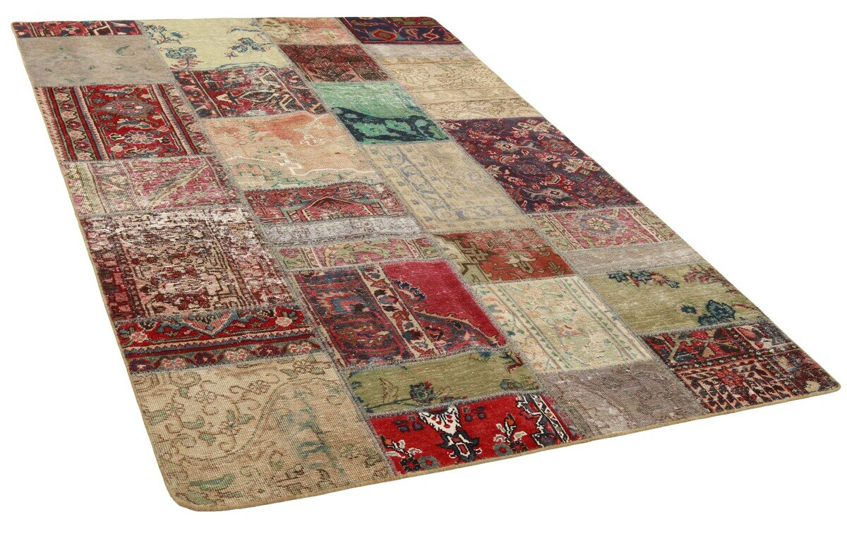 Vintage PatchworkItem no.: 1323361 Size: 161 cm x 235 cmVintage Royals are antique hand knotted rugs of Persian origin. The Patchwork Collection consists of old rugs that have been beyond repair, and instead cut into smaller pieces and used for patchwork. The Patchwork pieces are stonewashed and recoloured in light, dark, or bright colours, with the old pattern just being visible. The Patchwork rug forms a whole new and unique design. The rugs are of a very high quality and are available in large sizes. With the Vintage Royal Patchwork Collection, you do not just get a rug; you adorn your home with a unique piece of antique, Persian handcraft.