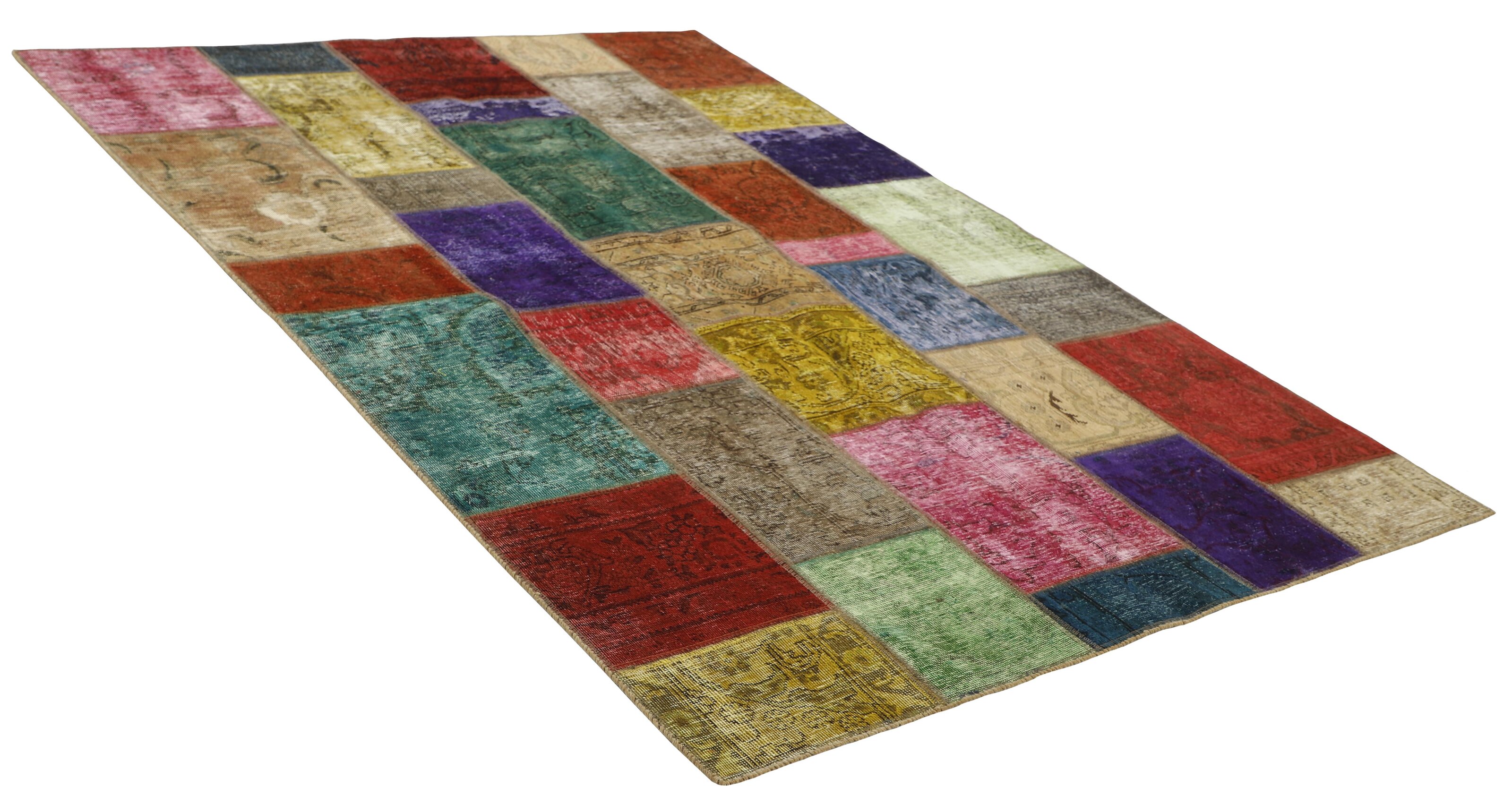 Vintage PatchworkItem no.: 1484067 Size: 170 cm x 238 cmVintage Royals are antique hand knotted rugs of Persian origin. The Patchwork Collection consists of old rugs that have been beyond repair, and instead cut into smaller pieces and used for patchwork. The Patchwork pieces are stonewashed and recoloured in light, dark, or bright colours, with the old pattern just being visible. The Patchwork rug forms a whole new and unique design. The rugs are of a very high quality and are available in large sizes. With the Vintage Royal Patchwork Collection, you do not just get a rug; you adorn your home with a unique piece of antique, Persian handcraft.