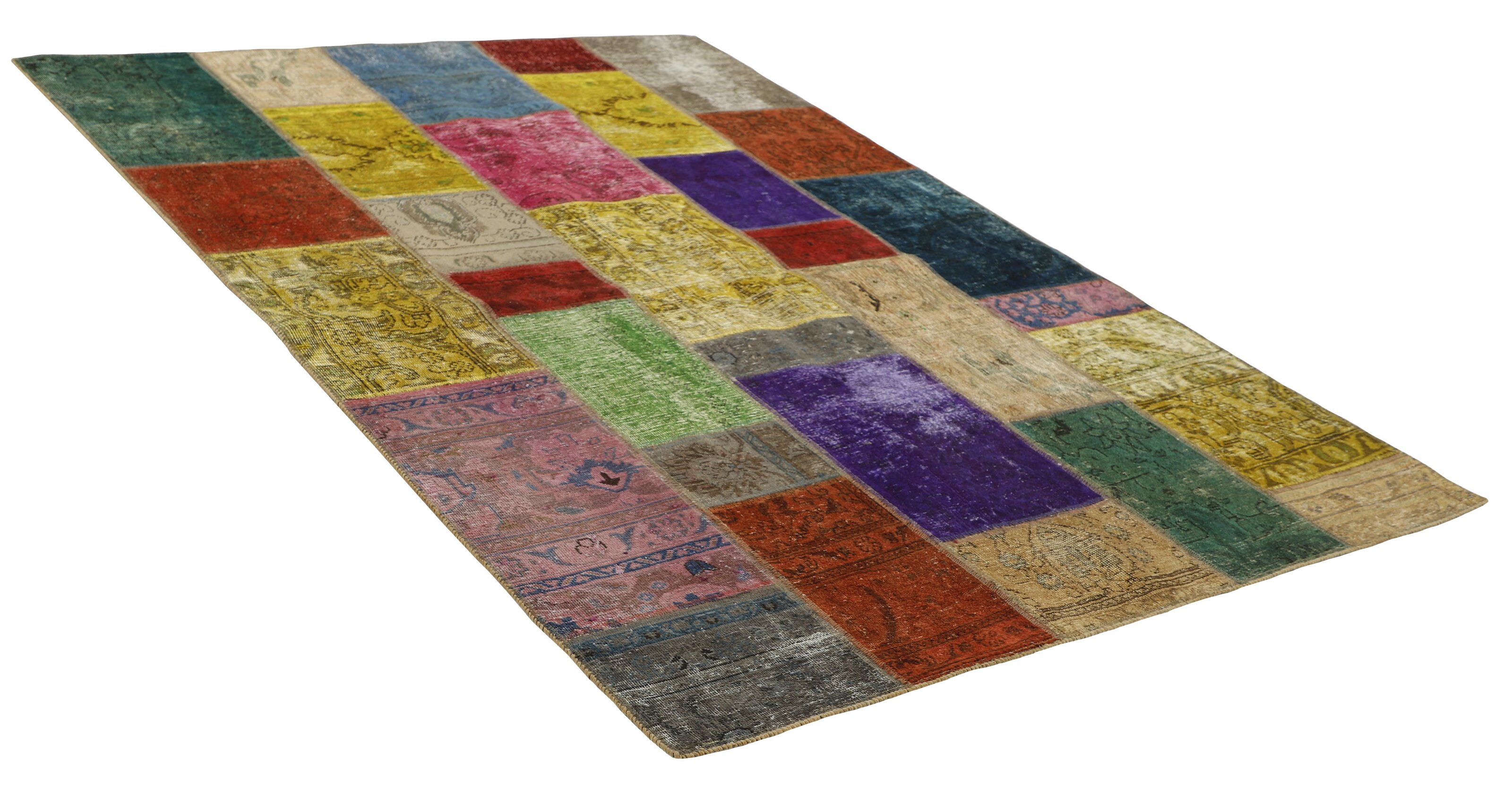Vintage PatchworkItem no.: 1484070 Size: 171 cm x 235 cmVintage Royals are antique hand knotted rugs of Persian origin. The Patchwork Collection consists of old rugs that have been beyond repair, and instead cut into smaller pieces and used for patchwork. The Patchwork pieces are stonewashed and recoloured in light, dark, or bright colours, with the old pattern just being visible. The Patchwork rug forms a whole new and unique design. The rugs are of a very high quality and are available in large sizes. With the Vintage Royal Patchwork Collection, you do not just get a rug; you adorn your home with a unique piece of antique, Persian handcraft.