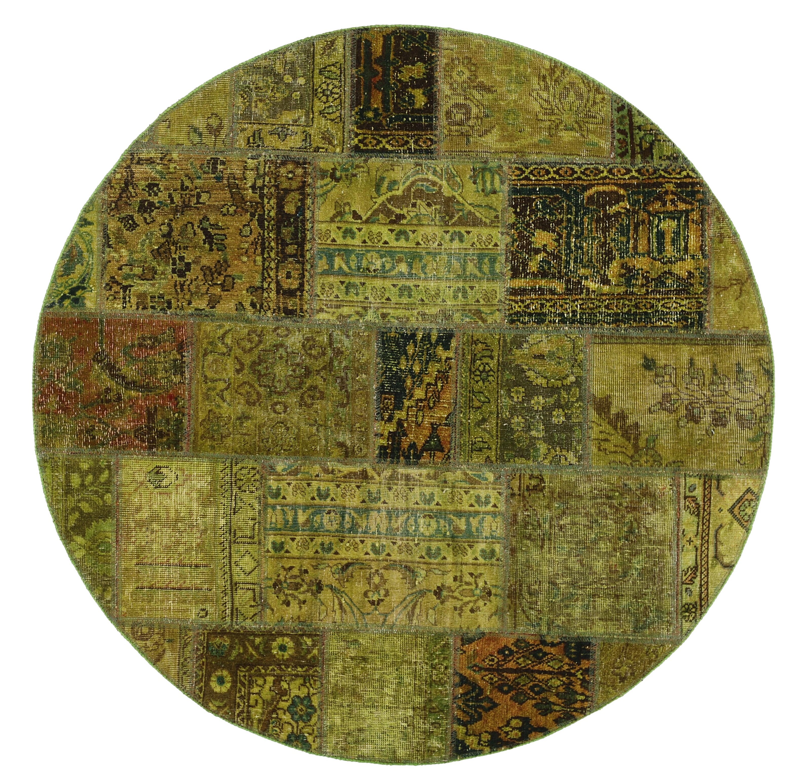Vintage PatchworkItem no.: 1511701 Size: 150 cm x 150 cmVintage Royals are antique hand knotted rugs of Persian origin. The Patchwork Collection consists of old rugs that have been beyond repair, and instead cut into smaller pieces and used for patchwork. The Patchwork pieces are stonewashed and recoloured in light, dark, or bright colours, with the old pattern just being visible. The Patchwork rug forms a whole new and unique design. The rugs are of a very high quality and are available in large sizes. With the Vintage Royal Patchwork Collection, you do not just get a rug; you adorn your home with a unique piece of antique, Persian handcraft.
