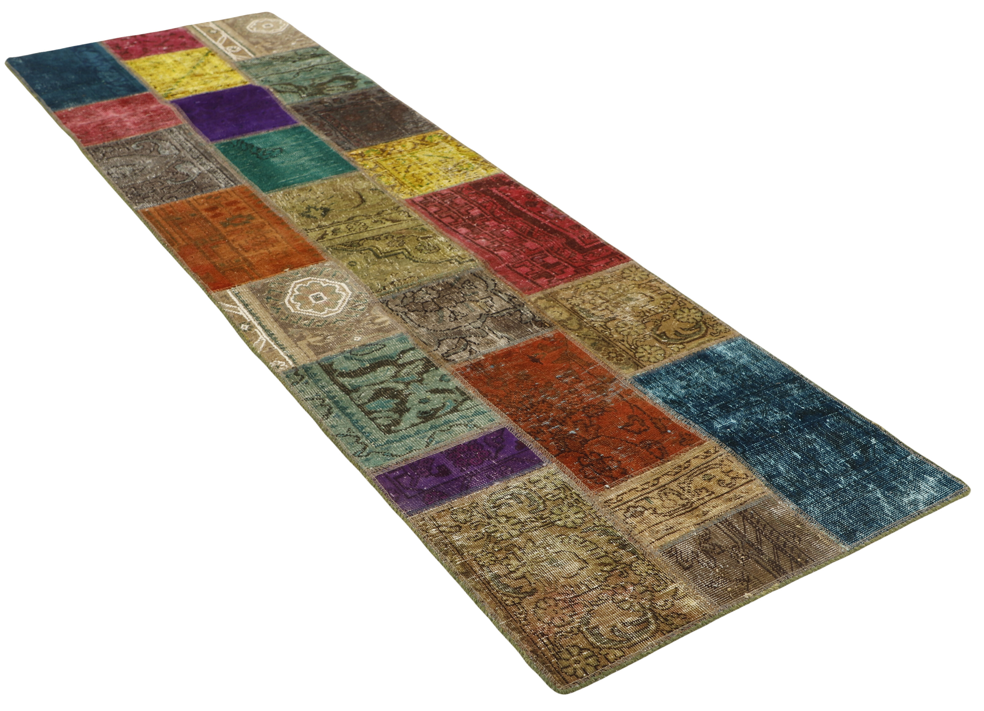 Vintage PatchworkItem no.: 1515794 Size: 76 cm x 256 cmVintage Royals are antique hand knotted rugs of Persian origin. The Patchwork Collection consists of old rugs that have been beyond repair, and instead cut into smaller pieces and used for patchwork. The Patchwork pieces are stonewashed and recoloured in light, dark, or bright colours, with the old pattern just being visible. The Patchwork rug forms a whole new and unique design. The rugs are of a very high quality and are available in large sizes. With the Vintage Royal Patchwork Collection, you do not just get a rug; you adorn your home with a unique piece of antique, Persian handcraft.