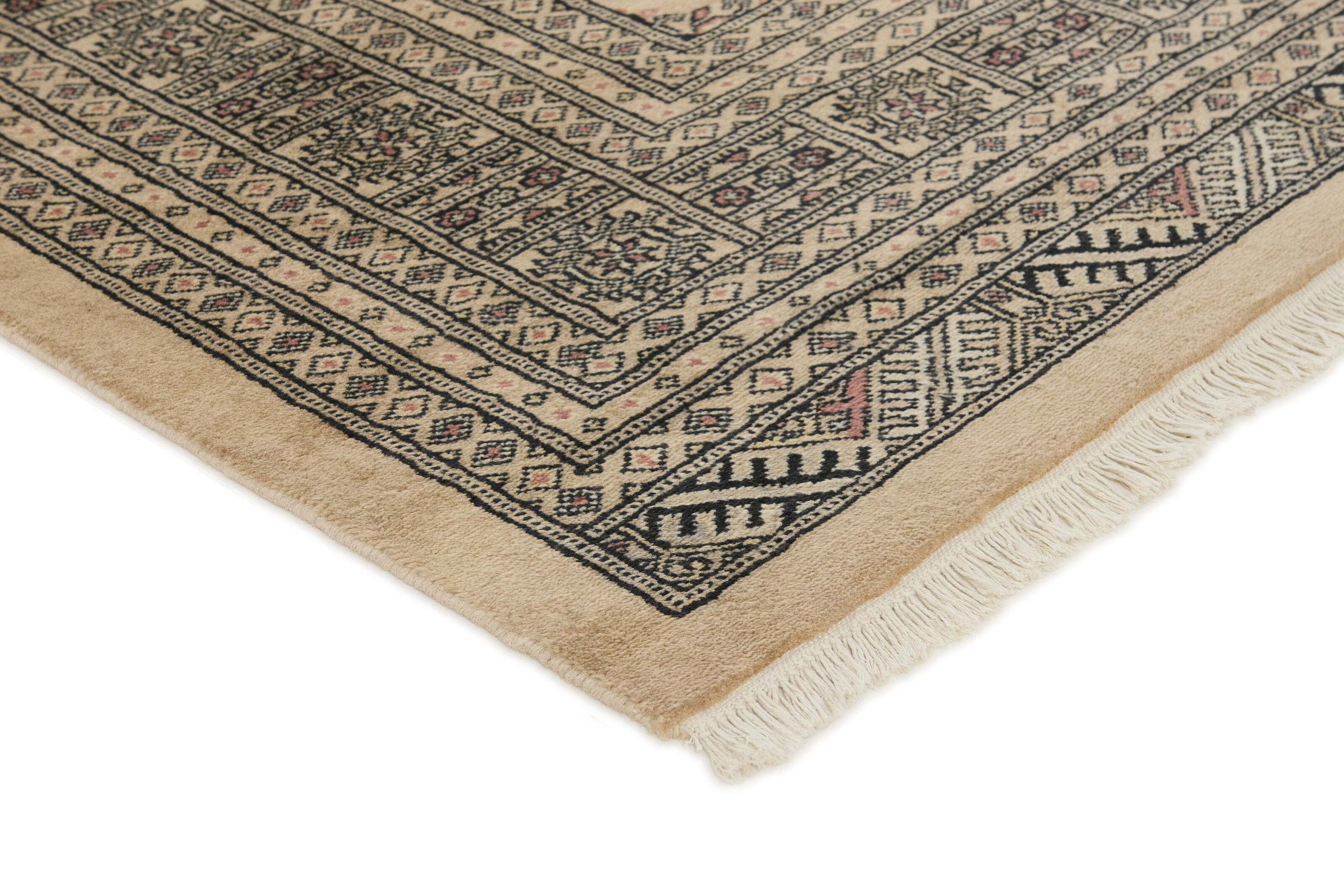 The 2-Ply rugs are produced in Lahore, Pakistan’s second largest city, which is also is the centre of the country’s hand knotted rug production. The rugs most often have the Tekke and Bokara patterns, which were originally inspired by patterns from Turkmenistan. The people of the Tekke Tribe, which was the largest nomadic tribe in Turkmenistan, were known as very industrious rug producers. The term Ply indicates the number of threads wound together to produce the yarn itself; 2-Ply thus guarantees that two threads were wound together during the knotting to make the yarn. The quality of wool is particularly soft and shining, and the warm-coloured patterns are simple and harmonious.