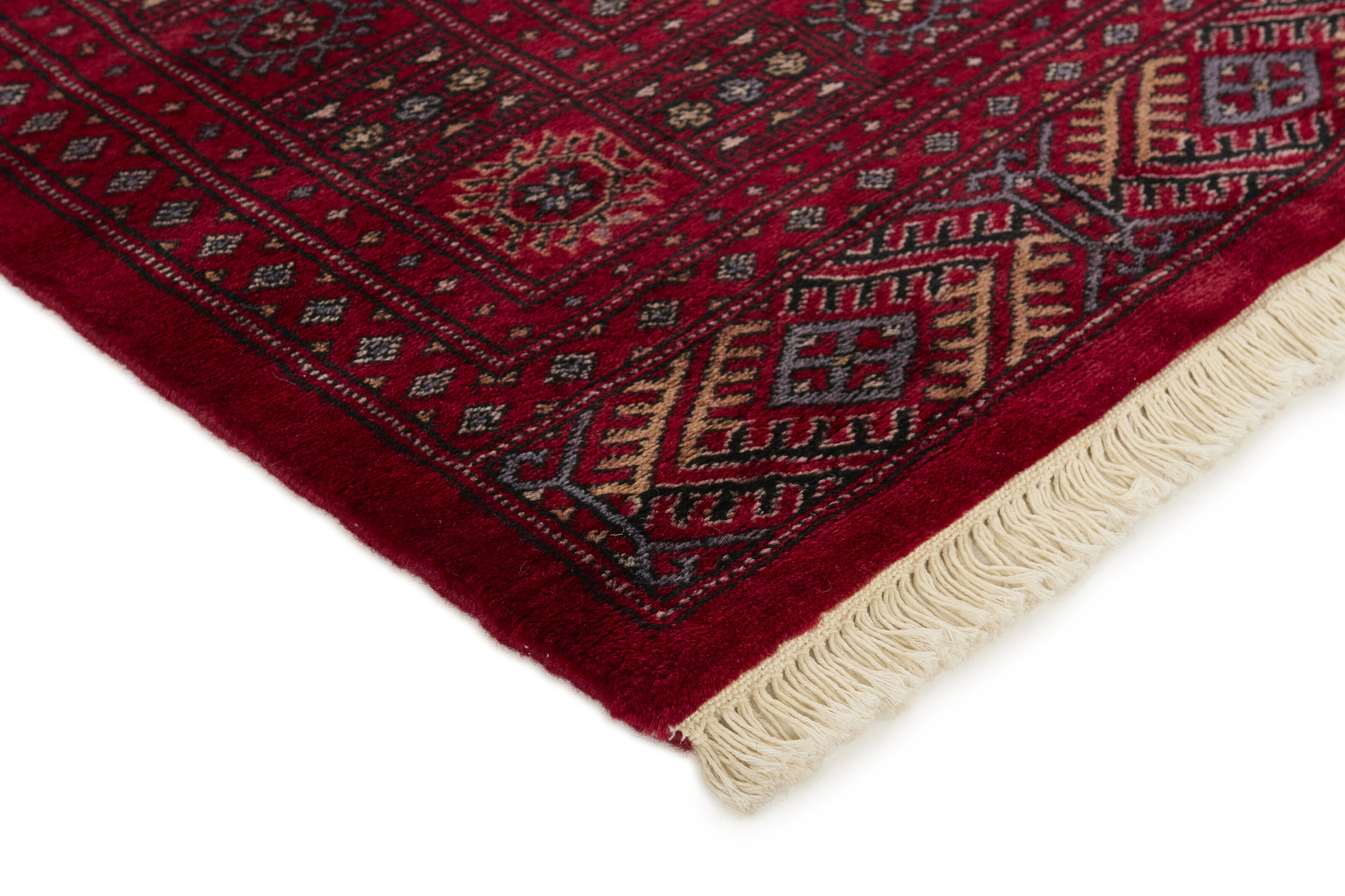 The 3-Ply rugs are produced in Lahore, Pakistan’s second largest city, which is also is the centre of the country’s hand knotted rug production. The rugs most often have the Tekke and Bokara patterns, which were originally inspired by patterns from Turkmenistan. The people of the Tekke Tribe, which was the largest nomadic tribe in Turkmenistan, were known as very industrious rug producers. The term Ply indicates the number of threads wound together to produce the yarn itself; 3-Ply thus guarantees that the yarn consists of three threads wound together. 3-Ply rugs appear thicker and softer than 2-Ply, as more wool is used to produce the rug. The quality of wool is particularly soft and shining, and the warm-coloured patterns are simple and harmonious.
