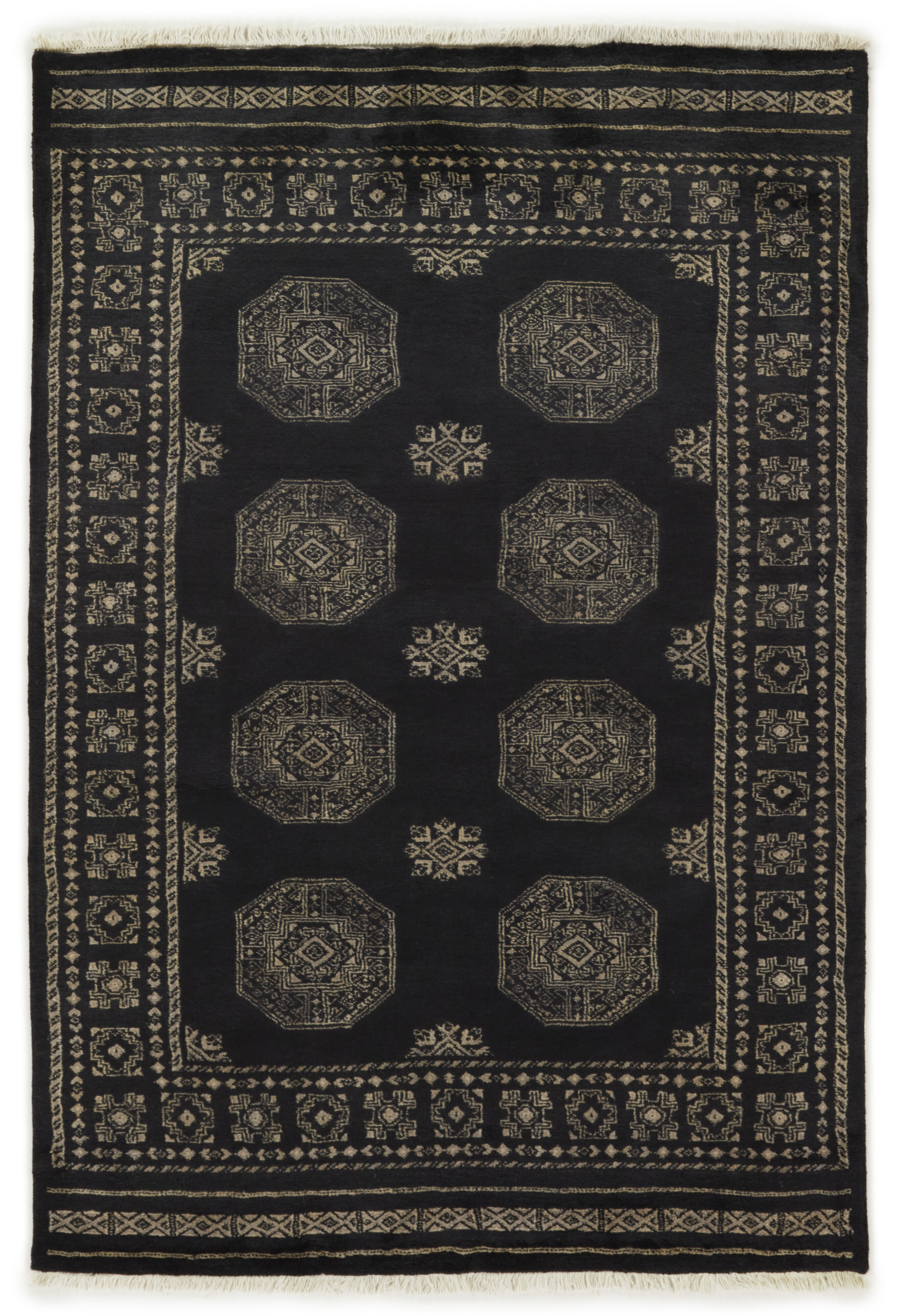 The 3-Ply rugs are produced in Lahore, Pakistan’s second largest city, which is also is the centre of the country’s hand knotted rug production. The rugs most often have the Tekke and Bokara patterns, which were originally inspired by patterns from Turkmenistan. The people of the Tekke Tribe, which was the largest nomadic tribe in Turkmenistan, were known as very industrious rug producers. The term Ply indicates the number of threads wound together to produce the yarn itself; 3-Ply thus guarantees that the yarn consists of three threads wound together. 3-Ply rugs appear thicker and softer than 2-Ply, as more wool is used to produce the rug. The quality of wool is particularly soft and shining, and the warm-coloured patterns are simple and harmonious.