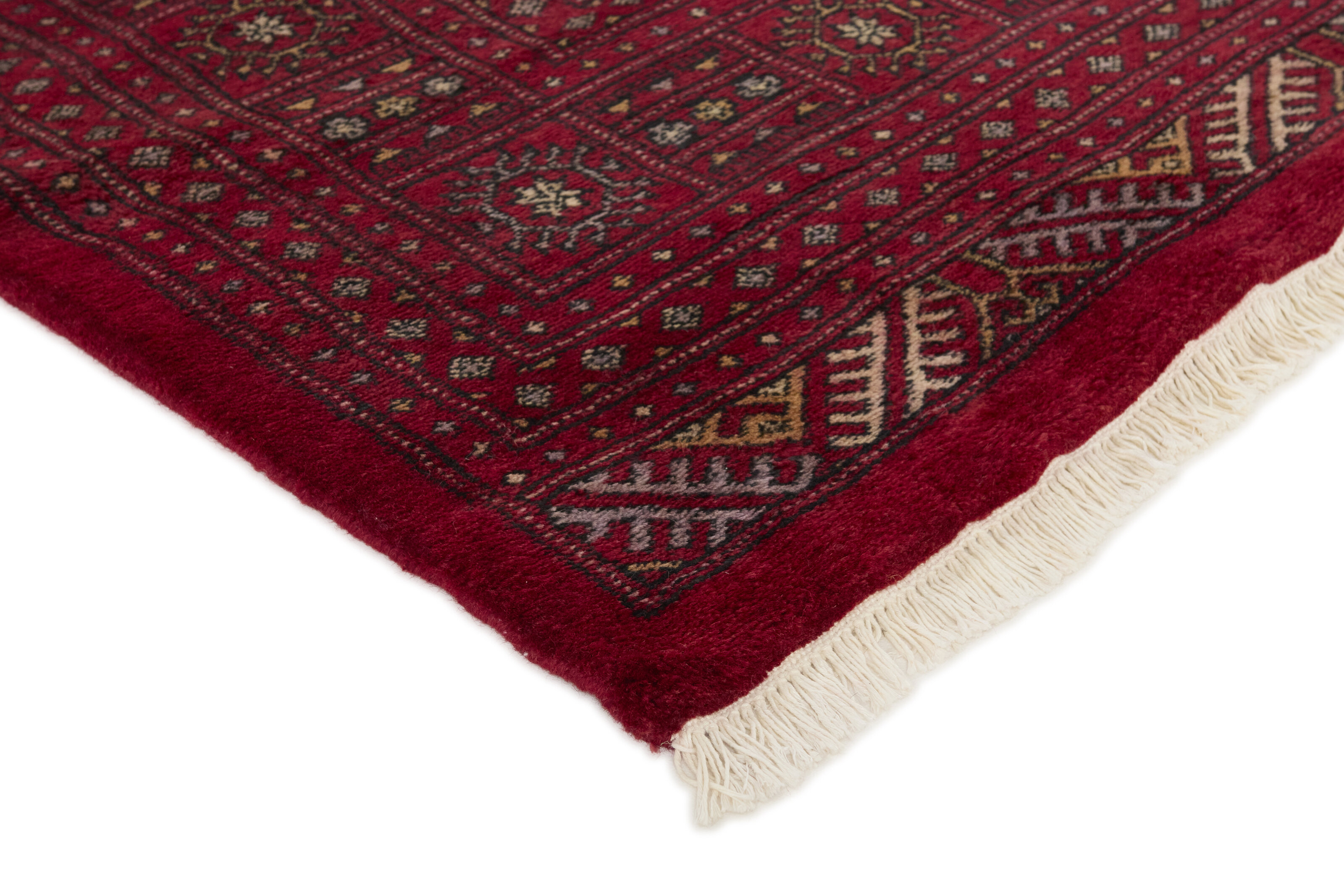 The 3-Ply rugs are produced in Lahore, Pakistan’s second largest city, which is also is the centre of the country’s hand knotted rug production. The rugs most often have the Tekke and Bokara patterns, which were originally inspired by patterns from Turkmenistan. The people of the Tekke Tribe, which was the largest nomadic tribe in Turkmenistan, were known as very industrious rug producers. The term Ply indicates the number of threads wound together to produce the yarn itself; 3-Ply thus guarantees that the yarn consists of three threads wound together. 3-Ply rugs appear thicker and softer than 2-Ply, as more wool is used to produce the rug. The quality of wool is particularly soft and shining, and the warm-coloured patterns are simple and harmonious.