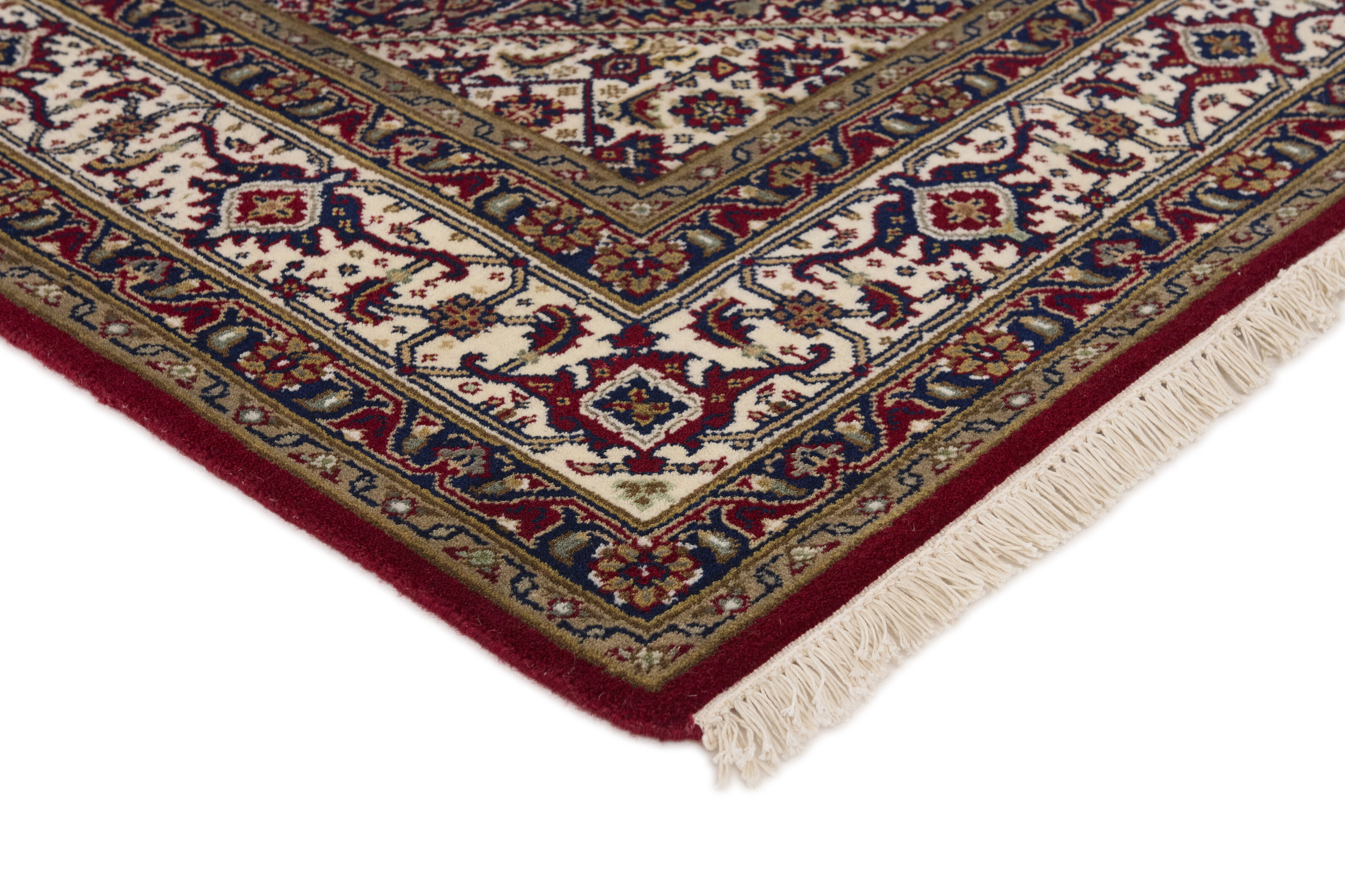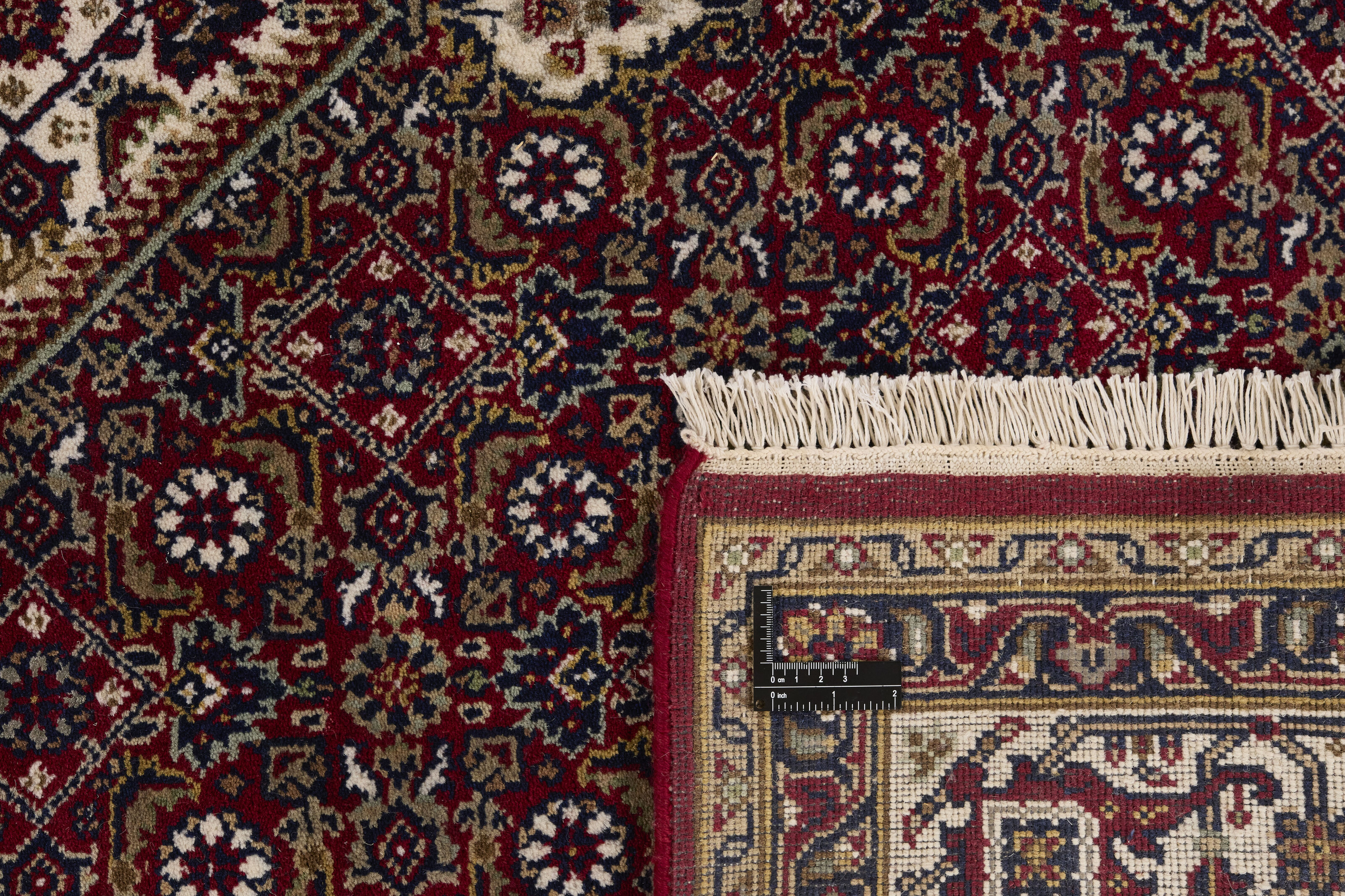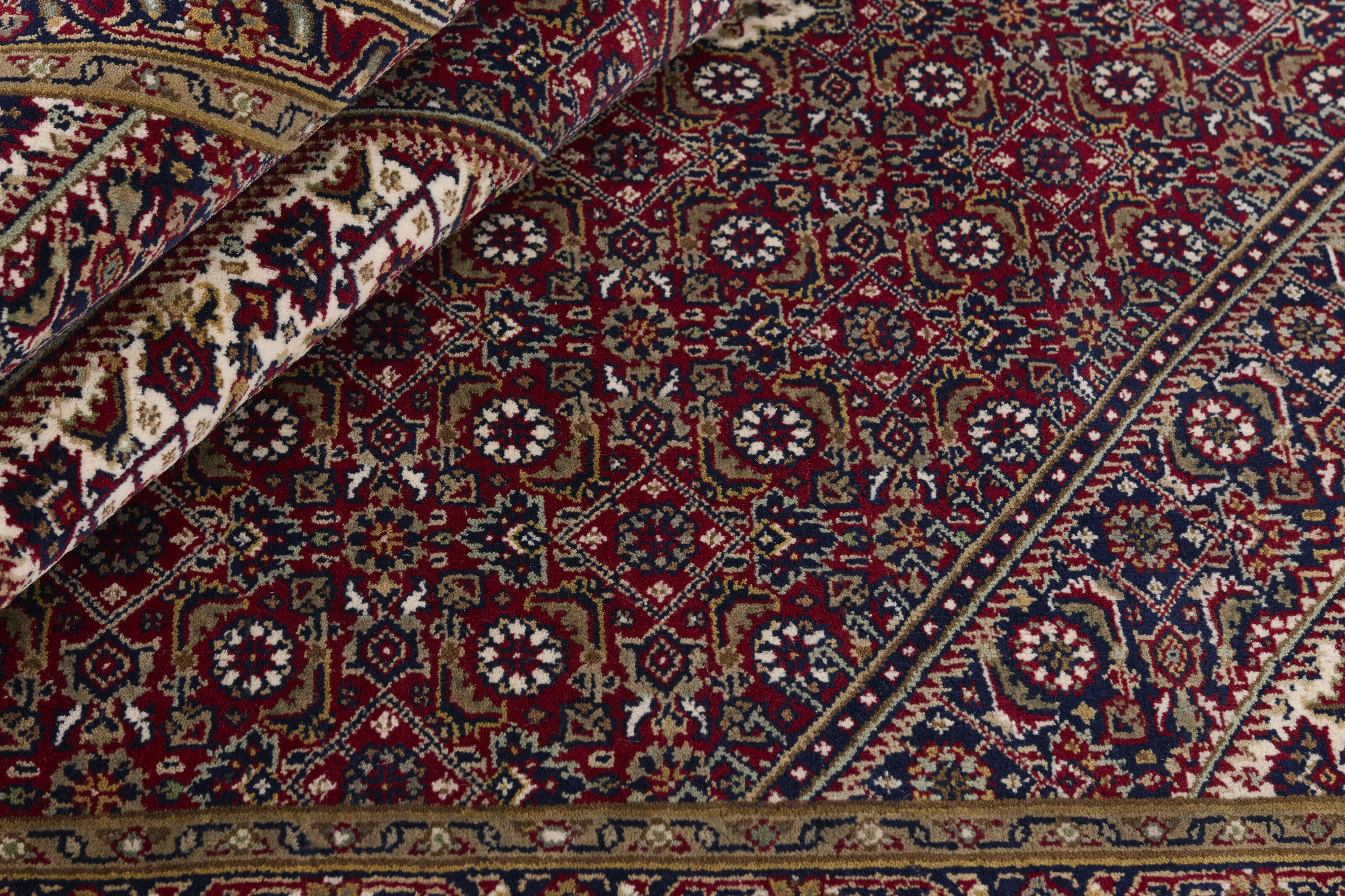 Bidjar Royals are classical hand knotted rugs from India, with designs inspired by the original Persian Bidjar rugs. The colours are red and the patterns are hexagonal, often with a large central medallion surrounded by two other hexagons. The trimmings are decorated with rosettes and flowers. There is some difference in quality between Royals and Indis, but it is not easily observable.