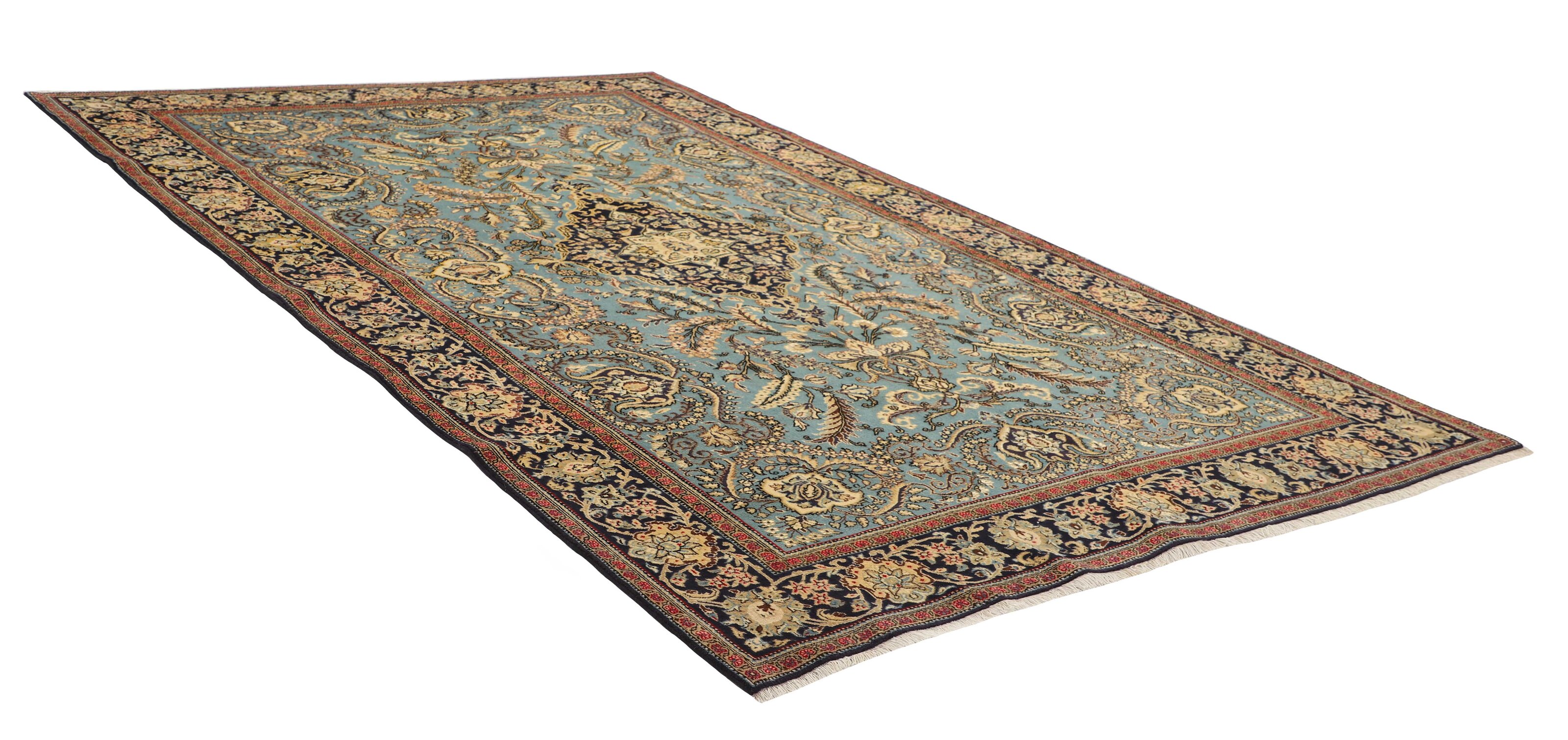 Ghom, a city of half a million people, lies south of Teheran, by the road to the Markazi (Central) province. The city’s rug industry was only developed after 1930 but has gained a good reputation. As there is no tradition or precedent to draw on, the weavers get their motifs from different sources, from where they transfer and combine them. Some patterns are completely copied and it is not uncommon to see copies of Joshqan or Sirjan rugs made in Ghom, but they much finer than the originals and made with a silk pile. In addition, several variations of medallions and uniform patterns are made. The pile is either silk with silk warp and weft, or wool, or wool mixed with silk, with a cotton base. The knotting is usually fine. A wide range of colours is used, sometimes in combinations that appear odd to westerners. A powerful pink and green is particularly characteristic of the silk rugs.