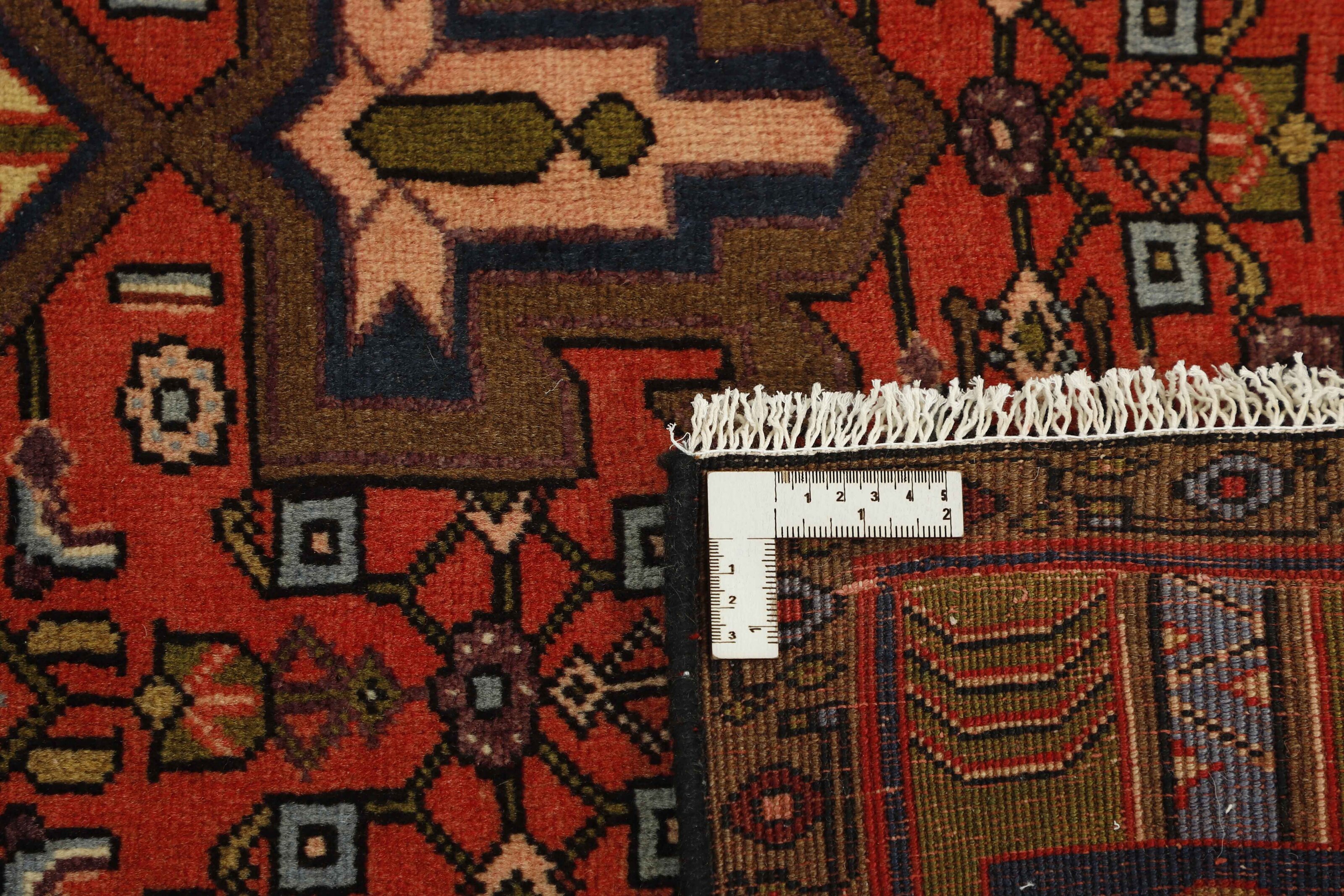 AsadabadItem no.: 1491081 Size: 145 cm x 238 cmThis rug is from the district of Hamadan which is an important centre for the rug trade, as well as the most productive rug production area of Iran. Hamadan is a major city with hundreds of thousands of people. Like Ekbatan, it was a main city of the Achemenian kings. It has an indigenous Jewish population and numerous monuments, of which the most important are the tombs of Esther and Mordicai (central to Jewish pilgrims), and the tomb at Avicenna. Hamadan is a provincial capitol. Two types of rugs are knotted. One is the so-called “city rug”, also known as the Shahrbaff. The production is modern and largely state controlled. The village production, however, is much more important; Hamadan is a market city for many rug producing villages that each has its own pattern. Most prominent are Borchalu, Tuserkman, Memraban, Khamseh, Begardeh, Enjilas, Hosseinabad, and Zandjan. There is a wide range of patterns but the quality is very consistent. The colours are strong, and often plant colours. The patterns are daring, although random, and Hosseinabad and Enjilas in particular are known for through going patterns. The rugs are usually not much bigger than 3 by 2 metres.