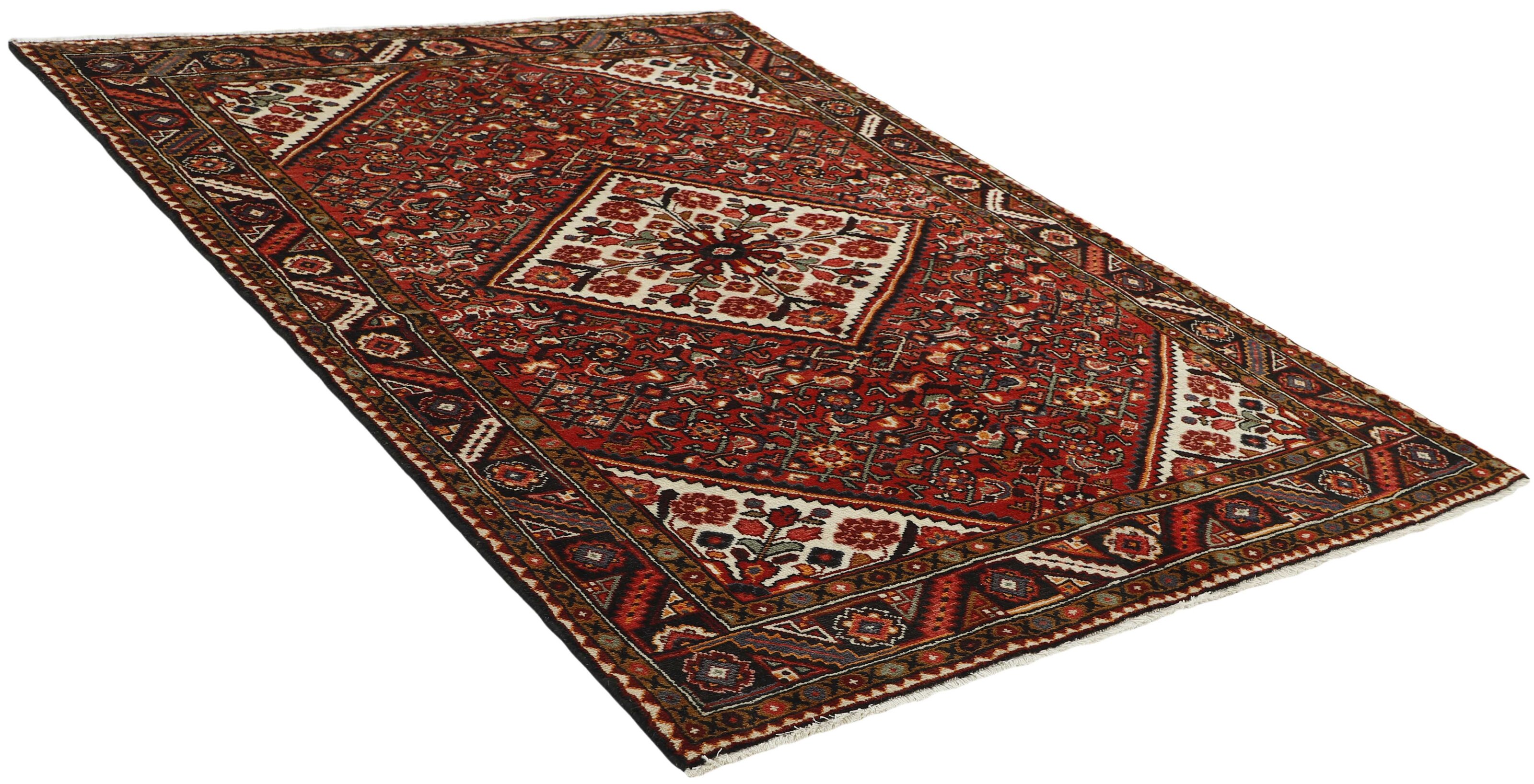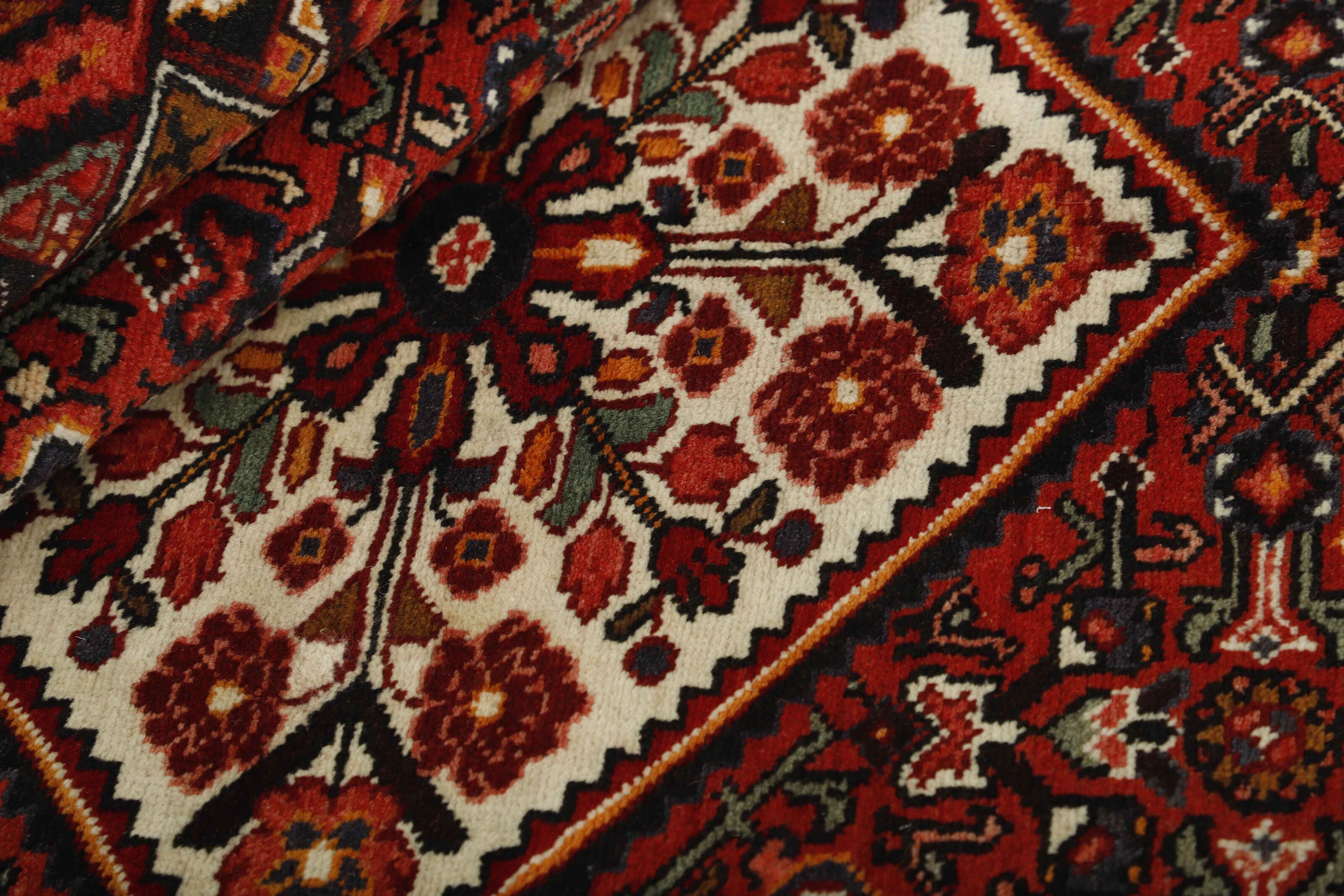 The city and the district of Hamadan is an important centre for the rug trade, as well as the most productive rug production area of Iran. Hamadan is a major city with hundreds of thousands of people. Like Ekbatan, it was a main city of the Achemenian kings. It has an indigenous Jewish population and numerous monuments, of which the most important are the tombs of Esther and Mordicai (central to Jewish pilgrims), and the tomb at Avicenna. Hamadan is a provincial capitol. Two types of rugs are knotted. One is the so-called “city rug”, also known as the Shahrbaff. The production is modern and largely state controlled. The village production, however, is much more important; Hamadan is a market city for many rug producing villages that each has its own pattern. Most prominent are Borchalu, Tuserkman, Memraban, Khamseh, Begardeh, Enjilas, Hosseinabad, and Zandjan. There is a wide range of patterns but the quality is very consistent. The colours are strong, and often plant colours. The patterns are daring, although random, and Hosseinabad and Enjilas in particular are known for through going patterns. The rugs are usually not much bigger than 3 by 2 metres.
