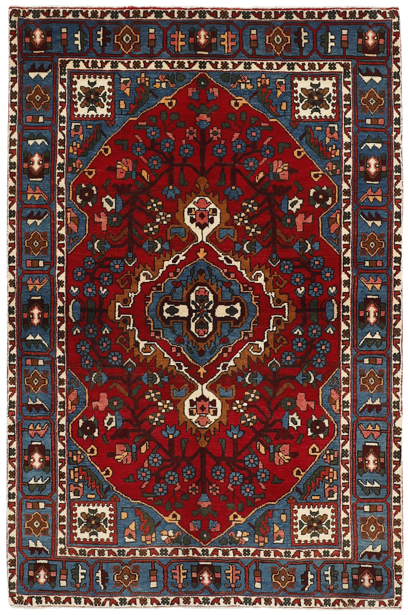 NahavandItem no.: 1491100 Size: 133 cm x 202 cmNahavand is a city of about 200.000 people, situated west of Malayer, in the southern part of the Hamadan province. The rug production is concentrated in the city itself and the surrounding villages, such as Ushvand. The rugs share many characteristics with Hamadan rugs; they have simple warps and wefts, with a wool pile and cotton warp and weft. The patterns can best be described as rural interpretations of classical patterns, with a central medallion and corners. They have warm colours, different nuances of red, as well as brown, blue, and green.