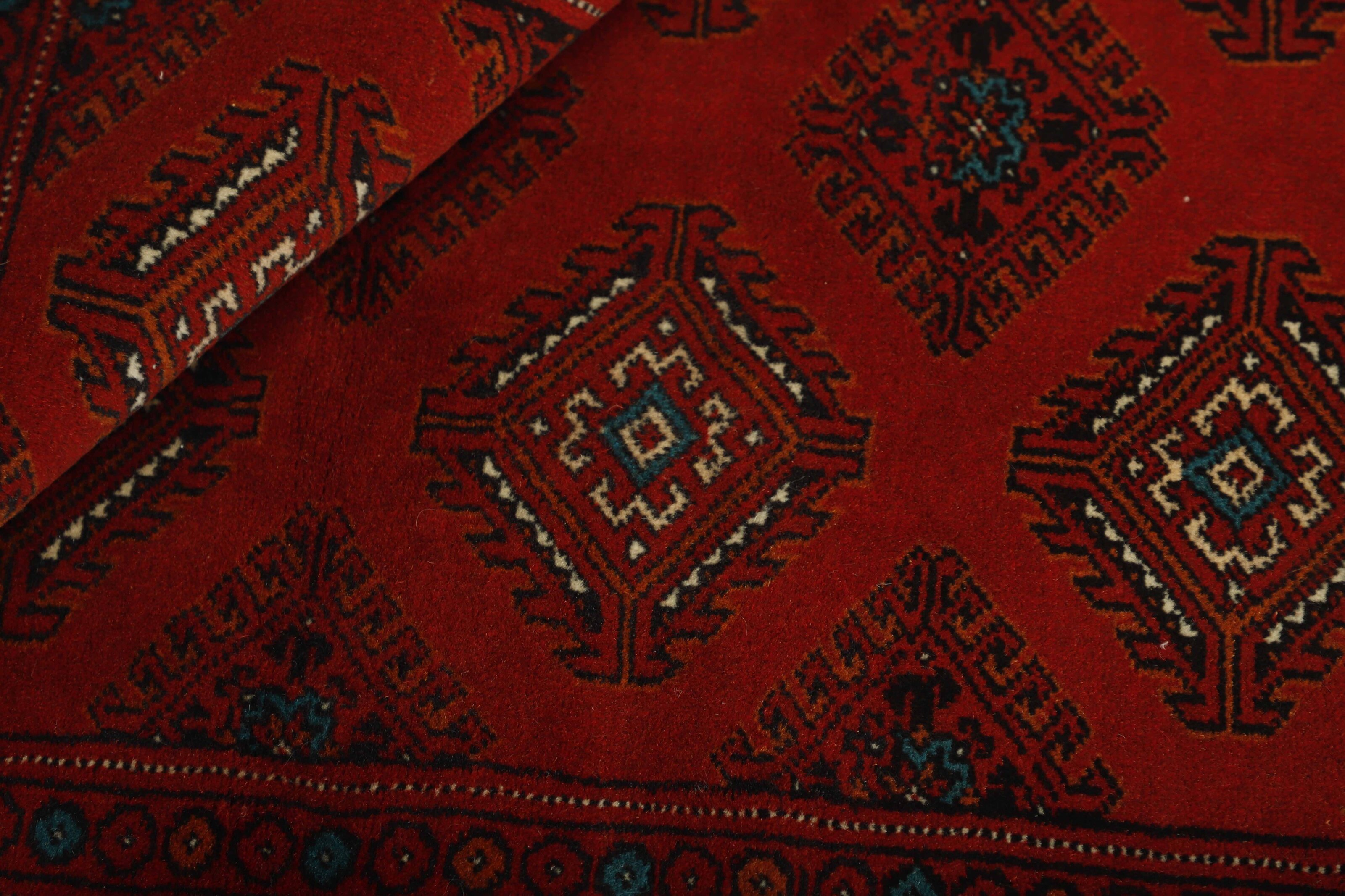 The Turkmen are a very significant tribe, mostly inhabiting Afghanistan and the former Soviet Republic of Turkmenistan. The Iranian population is limited to an area around Gonbad-e- Kavus (500.000 inhabitants) in the Mazandran Province. The Iranian Turkmens belong to three tribes; the Yomut, the Tekke, and the Atabat. The first two are most famous for their rugs. They were originally nomadic tribes, but most Iranian Turkmens are now settled, although they often have a traditional round tent in a square near their modern brick houses. Turkmen rugs are traditionally made of wool and have a limited range of colours; red, black, and ivory, sometimes mixed with other colours and silk. The typical patterns are geometrical flowers (güls), and octagonal patterns with variations according to tribe. According to tradition, the rugs are made in several sizes, depending on where in the tent they are to be used; as door curtains, bag covers, etc. Very large rugs are sometimes made to order for tribal chiefs.