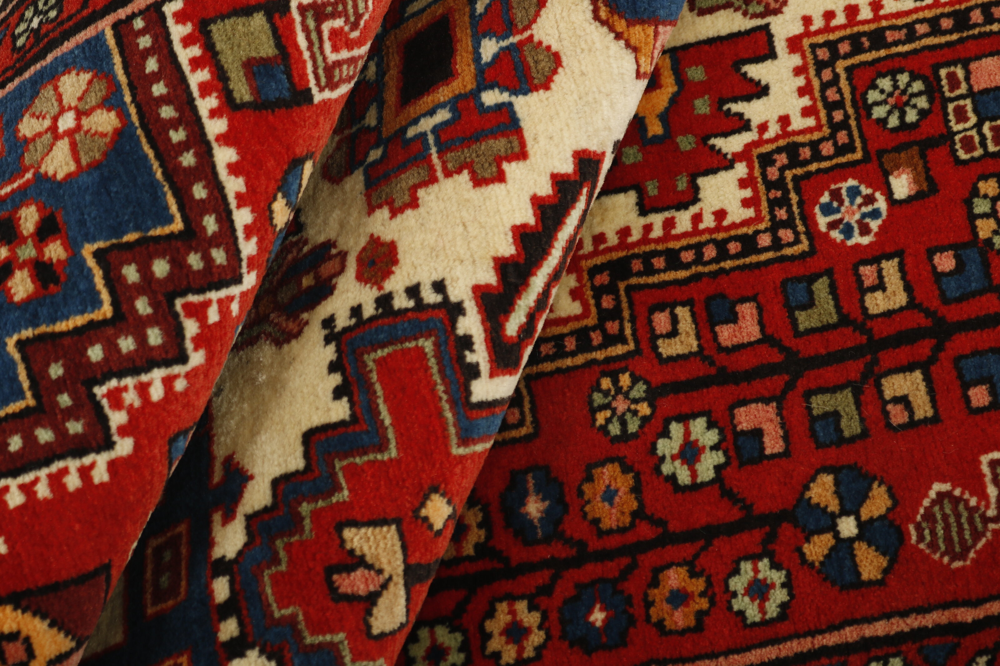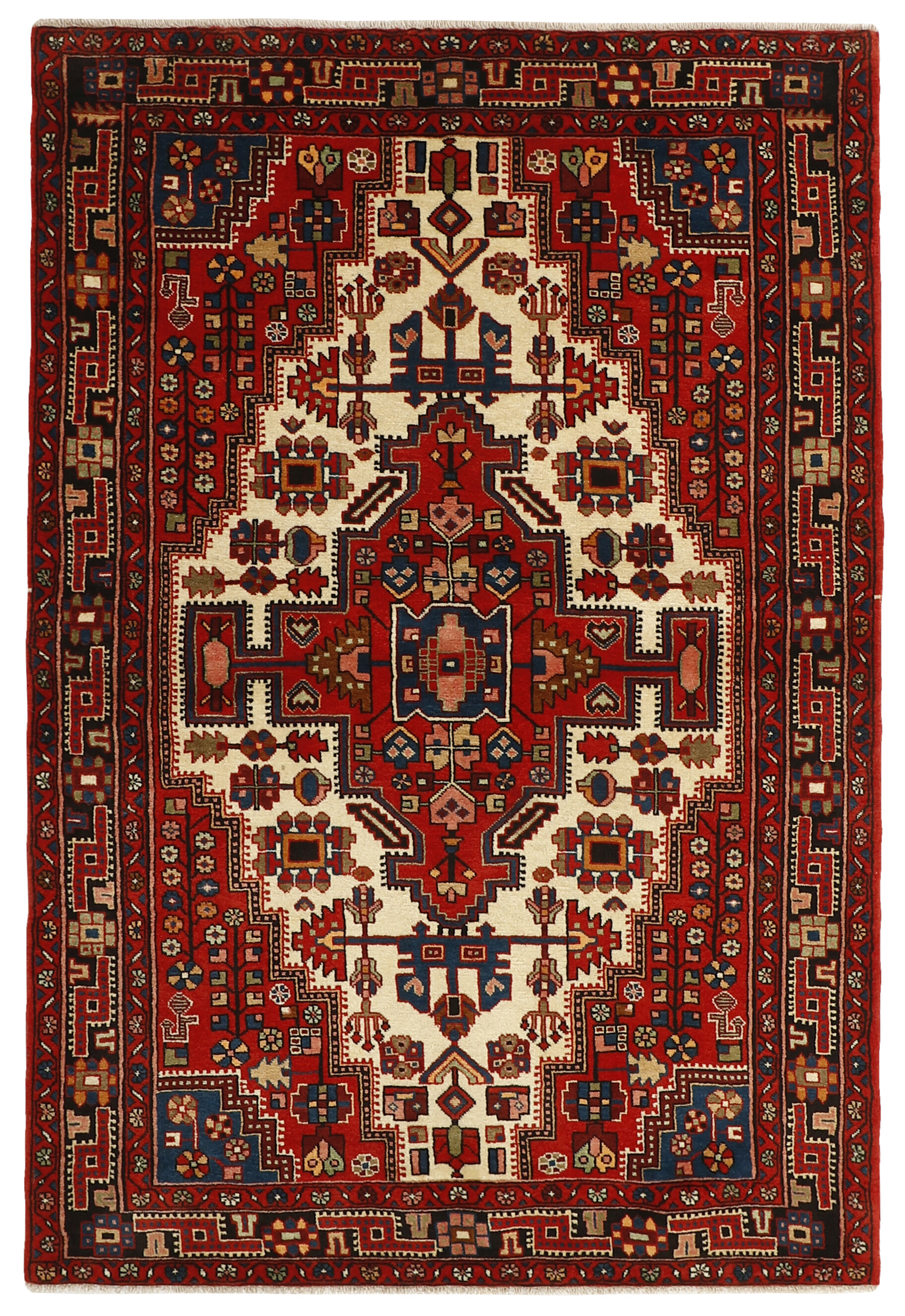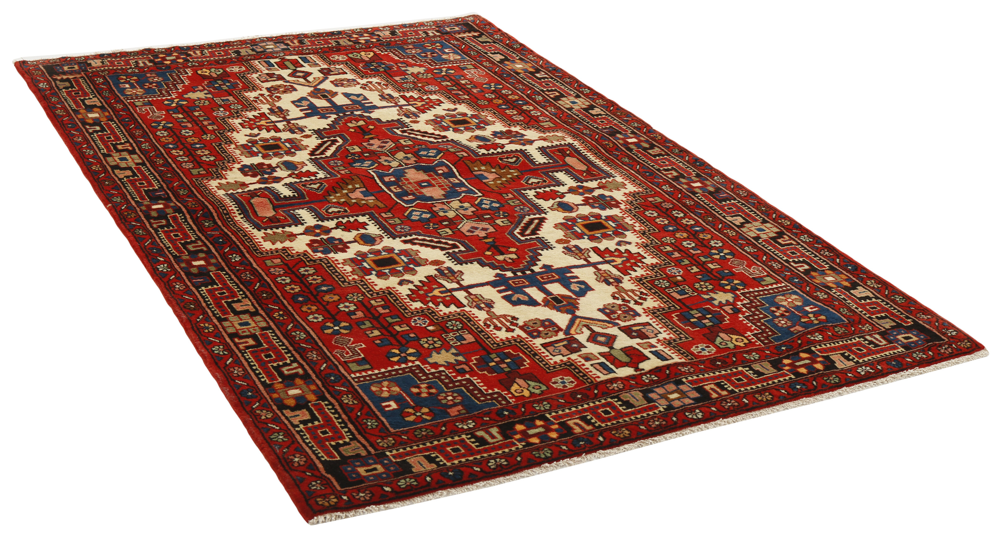 NahavandItem no.: 1514299 Size: 144 cm x 212 cmNahavand is a city of about 200.000 people, situated west of Malayer, in the southern part of the Hamadan province. The rug production is concentrated in the city itself and the surrounding villages, such as Ushvand. The rugs share many characteristics with Hamadan rugs; they have simple warps and wefts, with a wool pile and cotton warp and weft. The patterns can best be described as rural interpretations of classical patterns, with a central medallion and corners. They have warm colours, different nuances of red, as well as brown, blue, and green.