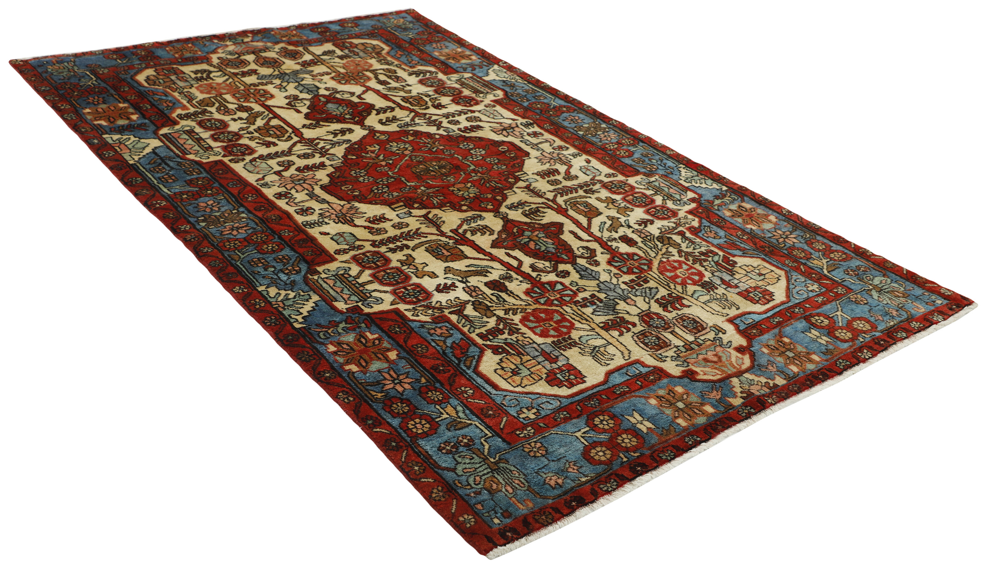 NahavandItem no.: 1514327 Size: 143 cm x 220 cmNahavand is a city of about 200.000 people, situated west of Malayer, in the southern part of the Hamadan province. The rug production is concentrated in the city itself and the surrounding villages, such as Ushvand. The rugs share many characteristics with Hamadan rugs; they have simple warps and wefts, with a wool pile and cotton warp and weft. The patterns can best be described as rural interpretations of classical patterns, with a central medallion and corners. They have warm colours, different nuances of red, as well as brown, blue, and green.
