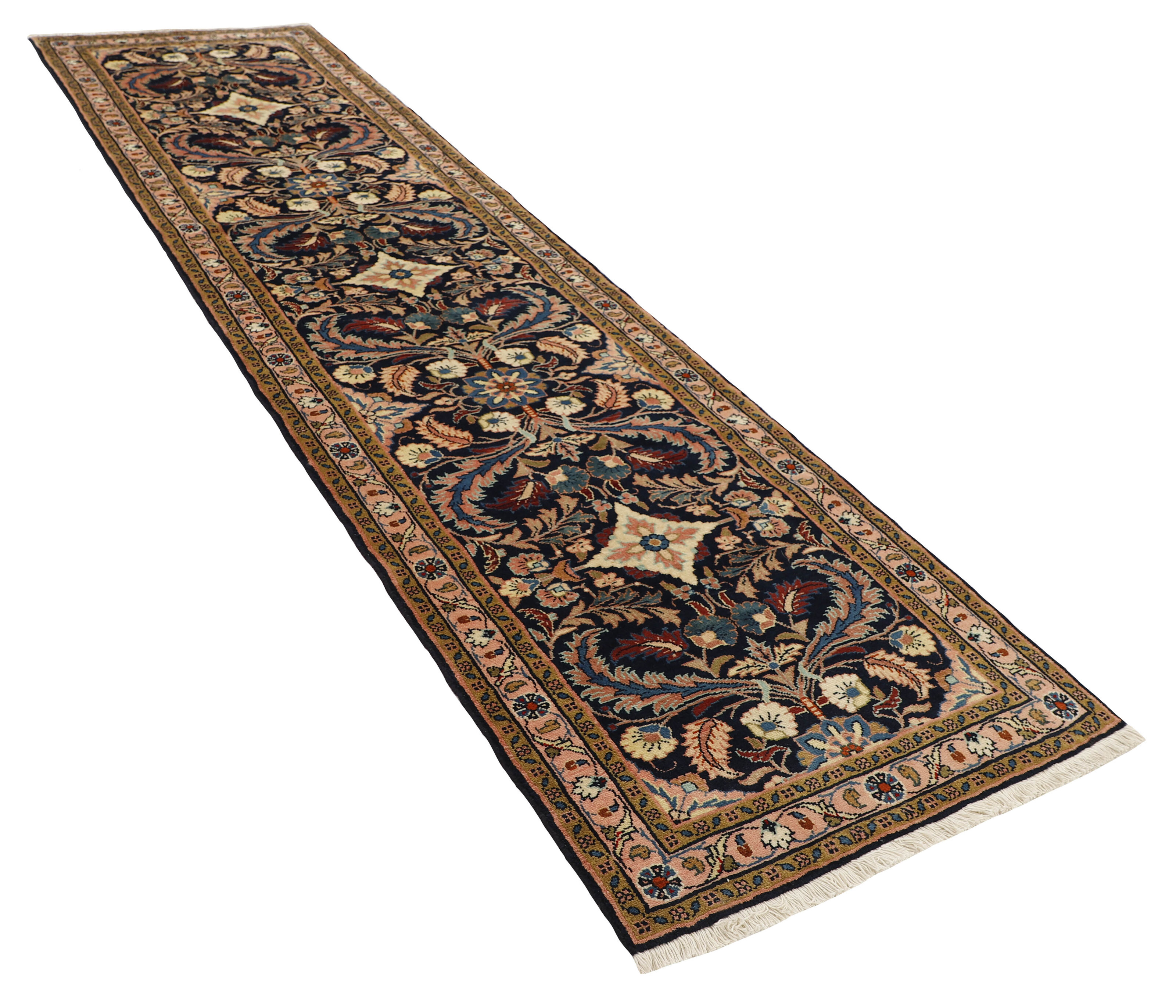 AsadabadItem no.: 1514380 Size: 84 cm x 313 cmThis rug is from the district of Hamadan which is an important centre for the rug trade, as well as the most productive rug production area of Iran. Hamadan is a major city with hundreds of thousands of people. Like Ekbatan, it was a main city of the Achemenian kings. It has an indigenous Jewish population and numerous monuments, of which the most important are the tombs of Esther and Mordicai (central to Jewish pilgrims), and the tomb at Avicenna. Hamadan is a provincial capitol. Two types of rugs are knotted. One is the so-called “city rug”, also known as the Shahrbaff. The production is modern and largely state controlled. The village production, however, is much more important; Hamadan is a market city for many rug producing villages that each has its own pattern. Most prominent are Borchalu, Tuserkman, Memraban, Khamseh, Begardeh, Enjilas, Hosseinabad, and Zandjan. There is a wide range of patterns but the quality is very consistent. The colours are strong, and often plant colours. The patterns are daring, although random, and Hosseinabad and Enjilas in particular are known for through going patterns. The rugs are usually not much bigger than 3 by 2 metres.