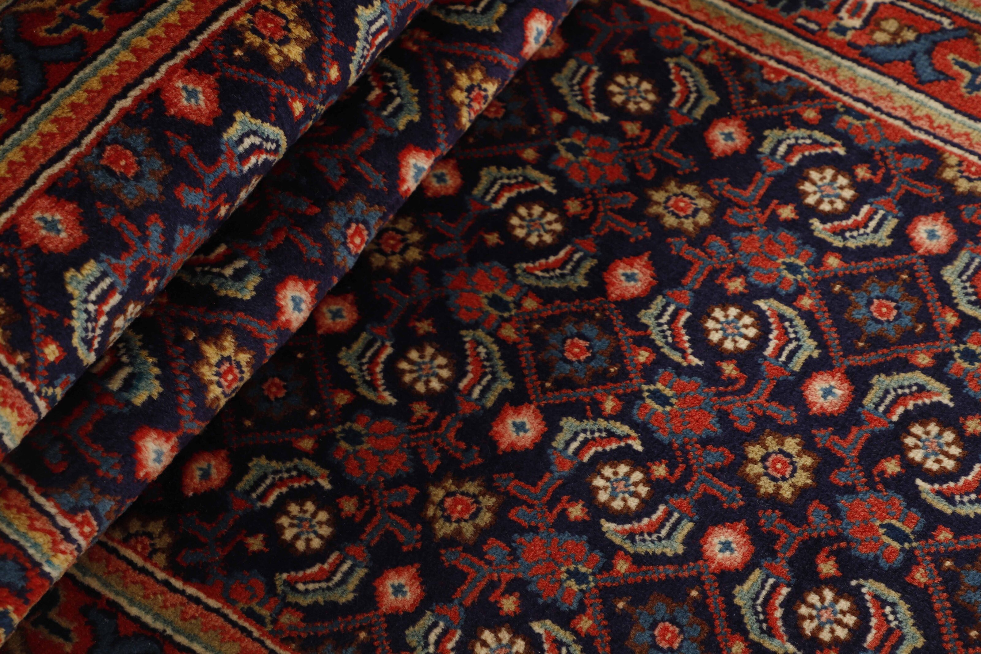 MahalItem no.: 1514405 Size: 83 cm x 310 cmThe Mahal rugs are knotted in Mahal, southwest of the capitol Teheran. The rugs are knotted with a beautiful, shining wool, and with the Seneh knot and the dense knotting method used, it is one of the most durable Persian rugs.