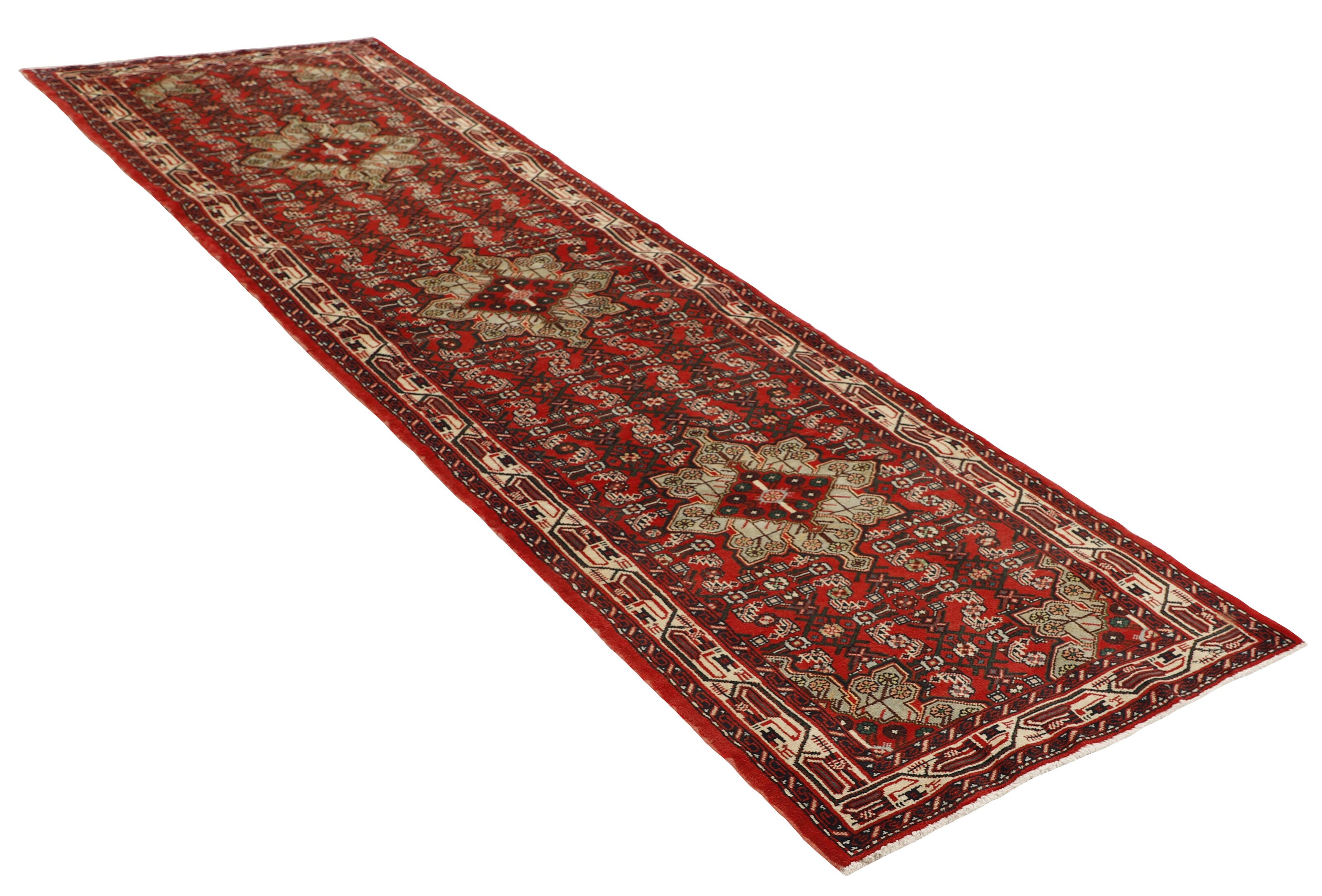 AsadabadItem no.: 1514407 Size: 81 cm x 295 cmThis rug is from the district of Hamadan which is an important centre for the rug trade, as well as the most productive rug production area of Iran. Hamadan is a major city with hundreds of thousands of people. Like Ekbatan, it was a main city of the Achemenian kings. It has an indigenous Jewish population and numerous monuments, of which the most important are the tombs of Esther and Mordicai (central to Jewish pilgrims), and the tomb at Avicenna. Hamadan is a provincial capitol. Two types of rugs are knotted. One is the so-called “city rug”, also known as the Shahrbaff. The production is modern and largely state controlled. The village production, however, is much more important; Hamadan is a market city for many rug producing villages that each has its own pattern. Most prominent are Borchalu, Tuserkman, Memraban, Khamseh, Begardeh, Enjilas, Hosseinabad, and Zandjan. There is a wide range of patterns but the quality is very consistent. The colours are strong, and often plant colours. The patterns are daring, although random, and Hosseinabad and Enjilas in particular are known for through going patterns. The rugs are usually not much bigger than 3 by 2 metres.