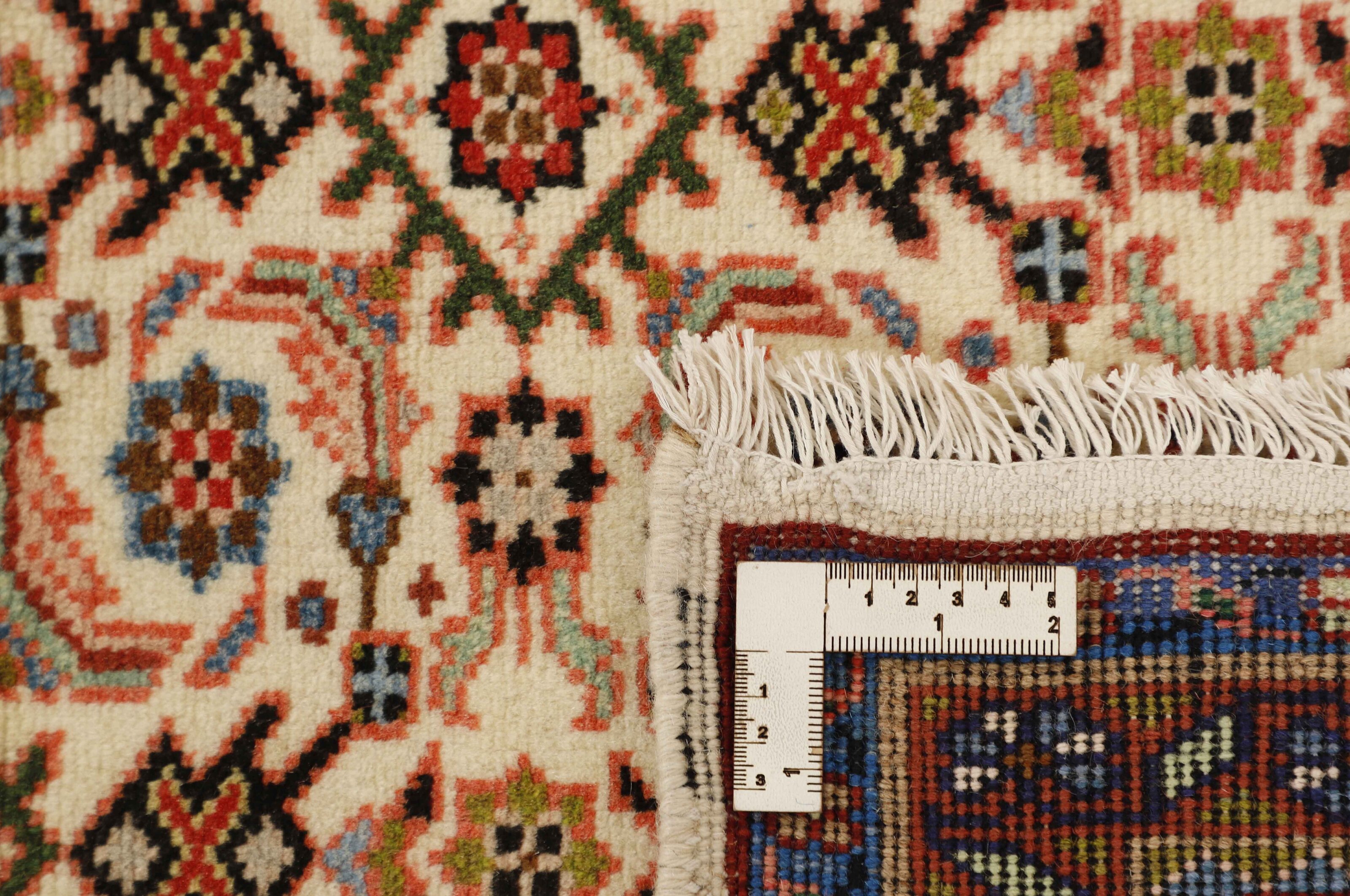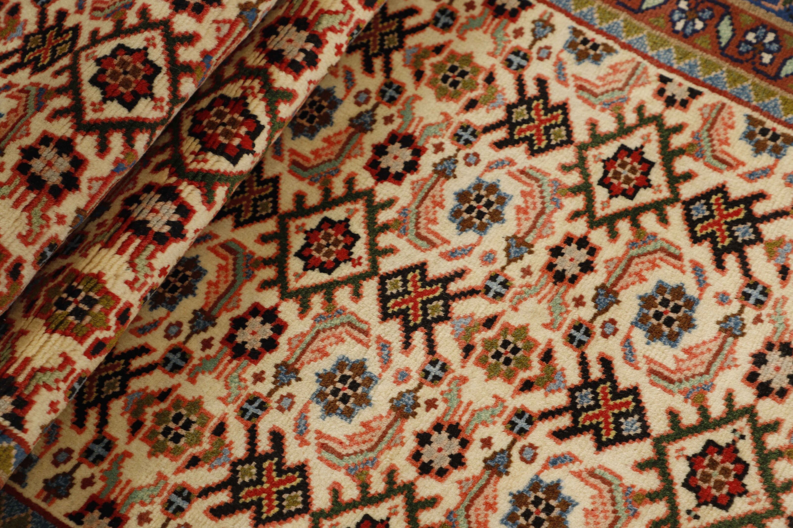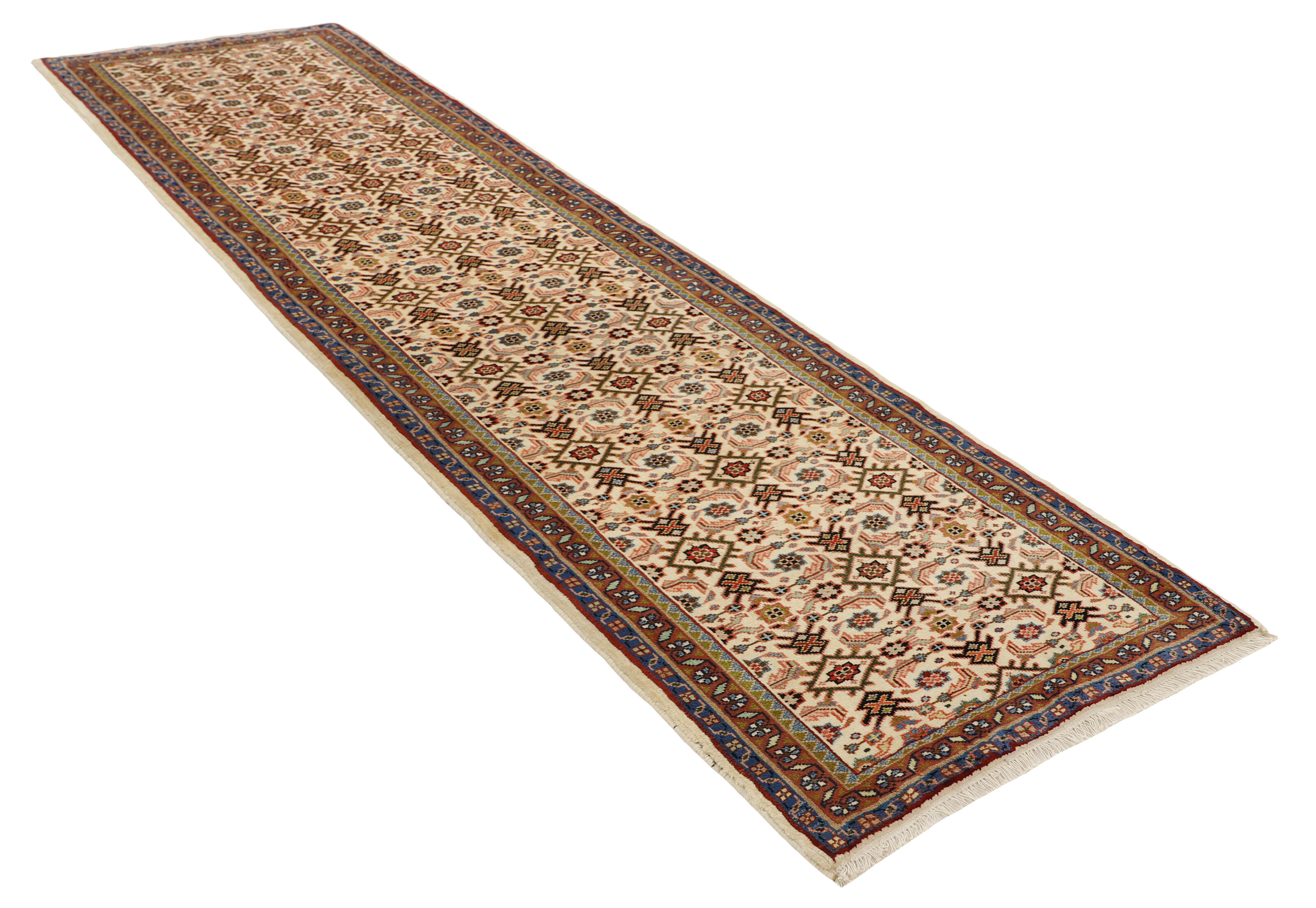 ArdebilItem no.: 1514451 Size: 80 cm x 300 cmArdebil and Meshkin (or Meshkinshahr) are situated in East Azerbaijan, east of Tabriz. Ardebil is the biggest and most important of the two cities, and it was home to the Safavaids, a royal family in 17th century Iran. The Safavid mosque and mausoleum complex is located in the city centre. The two 1542 rugs known as the Ardebil rugs, now shared between London and California, were originally placed in the mosque. The rugs produced in Ardebil and Meshkin today are heavily influenced by impressions from other parts of Azerbaijan; by the village rugs covered in geometrical patterns, and by the Tabriz rugs, with their simple patterns and medallions on a Herati base, which provides a beautiful contrast to the calm blue, red, or cream coloured base. Wool and cotton is used for the warp and weft, while the pile is generally wool, although there is a significant production of rugs with mixed silk/wool piles.