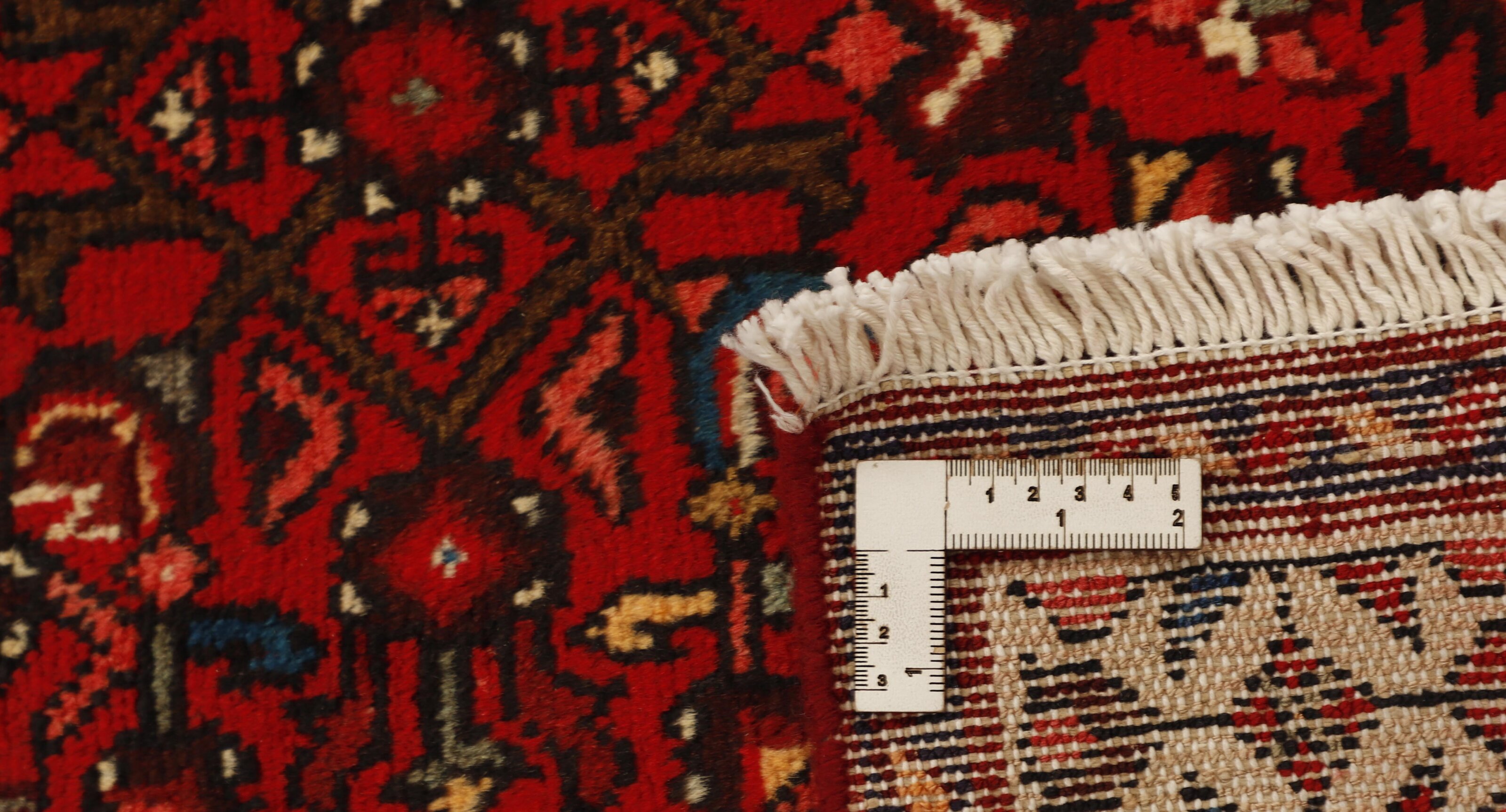 AsadabadItem no.: 1514455 Size: 84 cm x 380 cmThis rug is from the district of Hamadan which is an important centre for the rug trade, as well as the most productive rug production area of Iran. Hamadan is a major city with hundreds of thousands of people. Like Ekbatan, it was a main city of the Achemenian kings. It has an indigenous Jewish population and numerous monuments, of which the most important are the tombs of Esther and Mordicai (central to Jewish pilgrims), and the tomb at Avicenna. Hamadan is a provincial capitol. Two types of rugs are knotted. One is the so-called “city rug”, also known as the Shahrbaff. The production is modern and largely state controlled. The village production, however, is much more important; Hamadan is a market city for many rug producing villages that each has its own pattern. Most prominent are Borchalu, Tuserkman, Memraban, Khamseh, Begardeh, Enjilas, Hosseinabad, and Zandjan. There is a wide range of patterns but the quality is very consistent. The colours are strong, and often plant colours. The patterns are daring, although random, and Hosseinabad and Enjilas in particular are known for through going patterns. The rugs are usually not much bigger than 3 by 2 metres.