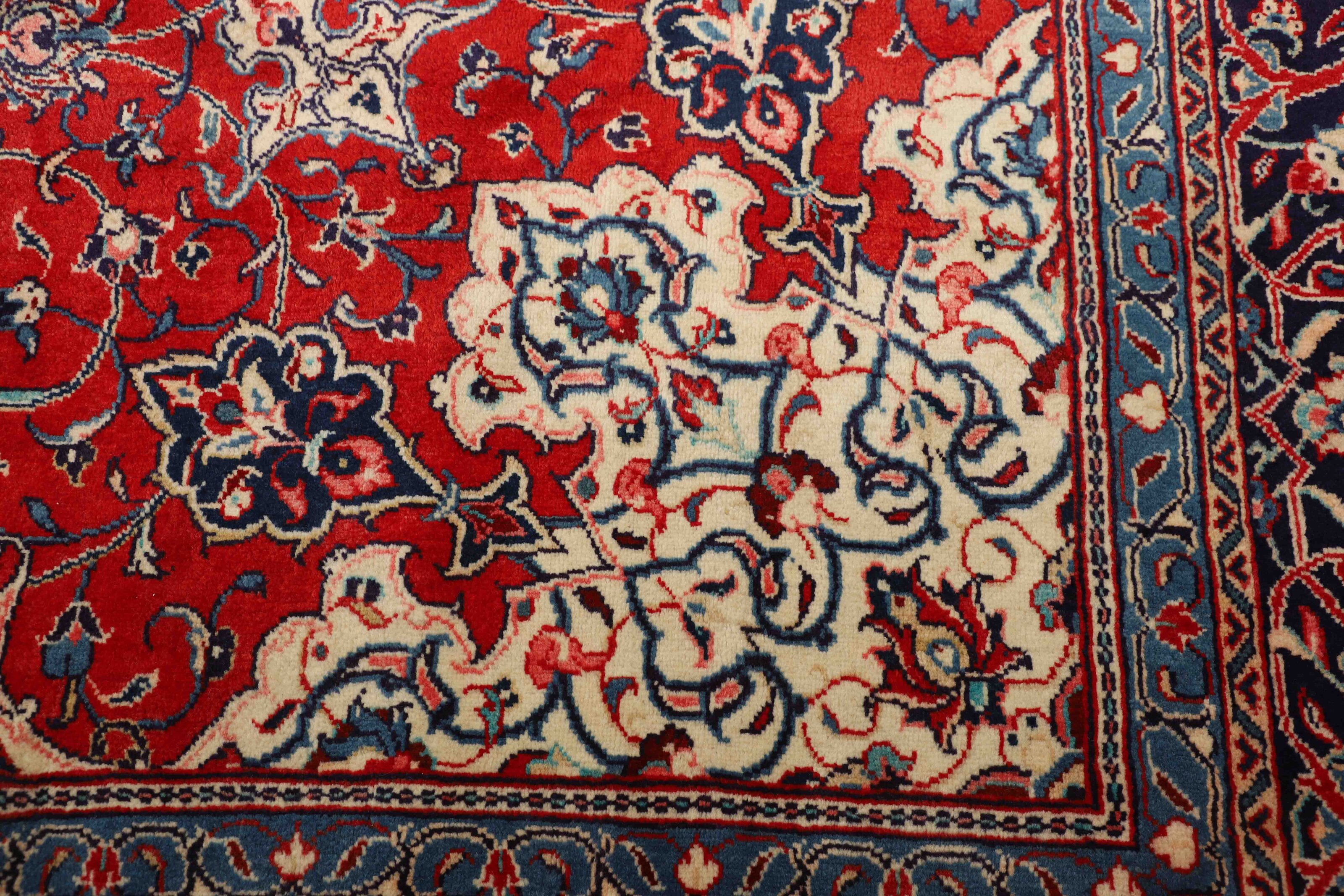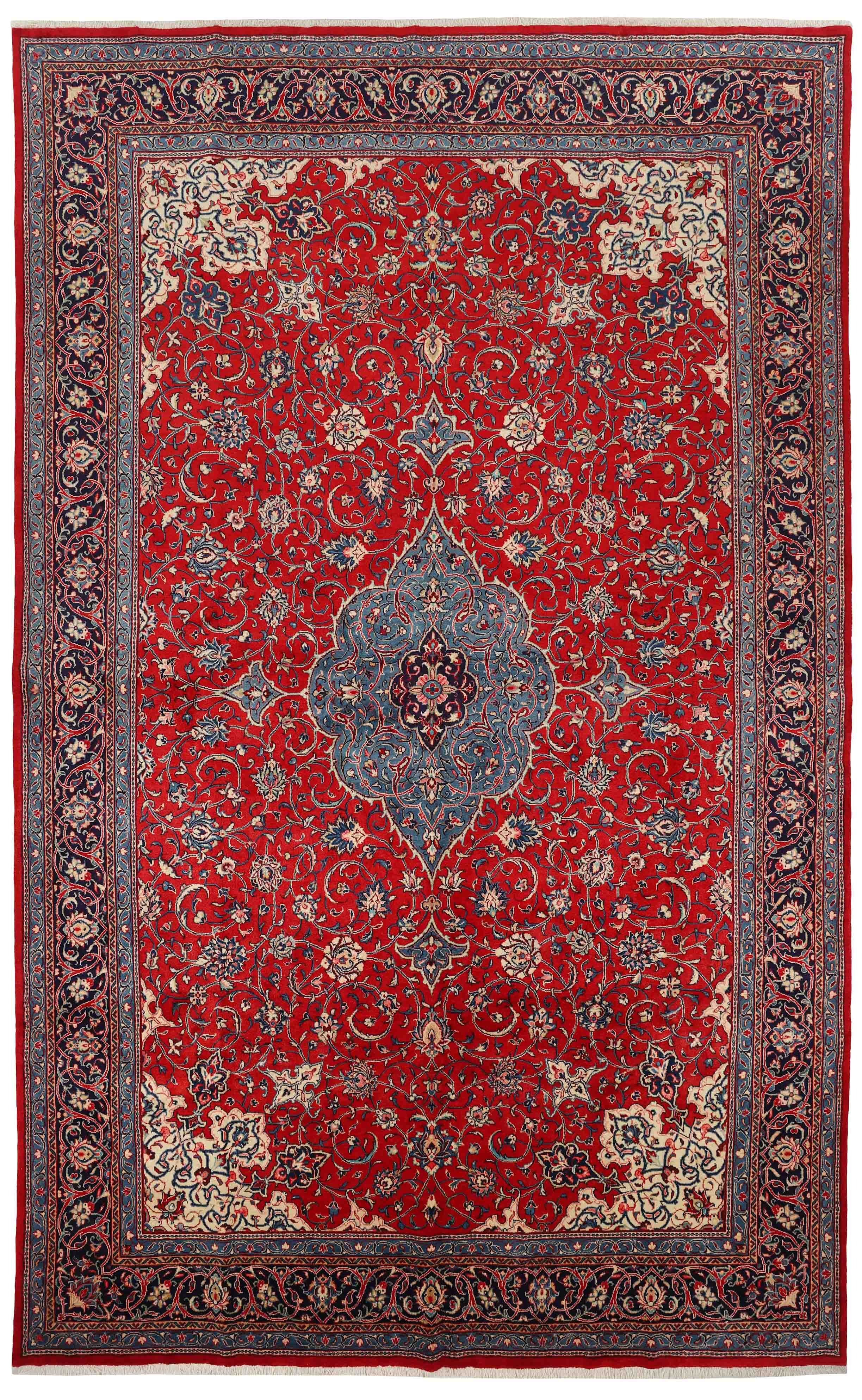 SaroughItem no.: 1519706 Size: 340 cm x 545 cmThe city and the district of Hamadan is an important centre for the rug trade, as well as the most productive rug production area of Iran. Hamadan is a major city with hundreds of thousands of people. Like Ekbatan, it was a main city of the Achemenian kings. It has an indigenous Jewish population and numerous monuments, of which the most important are the tombs of Esther and Mordicai (central to Jewish pilgrims), and the tomb at Avicenna. Hamadan is a provincial capitol. Two types of rugs are knotted. One is the so-called “city rug”, also known as the Shahrbaff. The production is modern and largely state controlled. The village production, however, is much more important; Hamadan is a market city for many rug producing villages that each has its own pattern. Most prominent are Borchalu, Tuserkman, Memraban, Khamseh, Begardeh, Enjilas, Hosseinabad, and Zandjan. There is a wide range of patterns but the quality is very consistent. The colours are strong, and often plant colours. The patterns are daring, although random, and Hosseinabad and Enjilas in particular are known for through going patterns. The rugs are usually not much bigger than 3 by 2 metres.