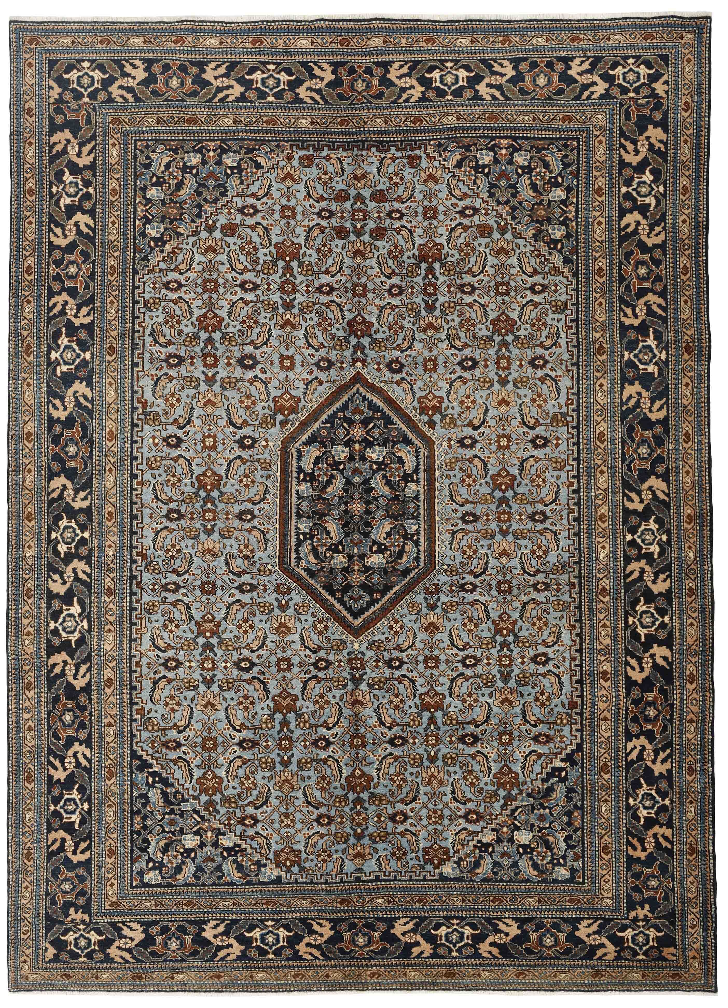 ArdebilItem no.: 1519715 Size: 227 cm x 322 cmArdebil and Meshkin (or Meshkinshahr) are situated in East Azerbaijan, east of Tabriz. Ardebil is the biggest and most important of the two cities, and it was home to the Safavaids, a royal family in 17th century Iran. The Safavid mosque and mausoleum complex is located in the city centre. The two 1542 rugs known as the Ardebil rugs, now shared between London and California, were originally placed in the mosque. The rugs produced in Ardebil and Meshkin today are heavily influenced by impressions from other parts of Azerbaijan; by the village rugs covered in geometrical patterns, and by the Tabriz rugs, with their simple patterns and medallions on a Herati base, which provides a beautiful contrast to the calm blue, red, or cream coloured base. Wool and cotton is used for the warp and weft, while the pile is generally wool, although there is a significant production of rugs with mixed silk/wool piles.