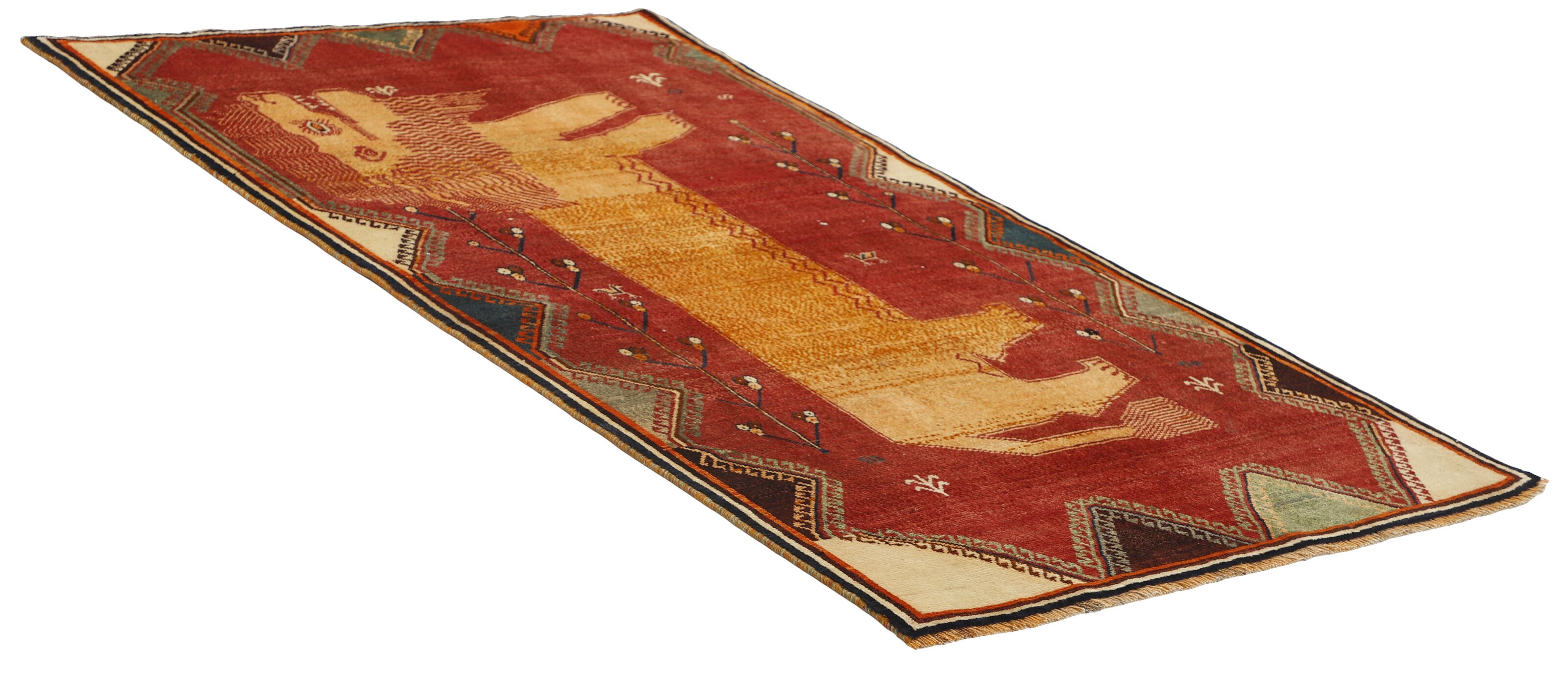 Kashghai Old FiguralItem no.: 1460308 Size: 121 cm x 193 cmThe Kashghai are Iran’s largest and most well known tribe. They speak a Turkish dialect, and are believed to have come from the Caucasus in the 18th century to their current areas, around Shiraz in the Fars Province of southern Iran. Their belligerent attitude has lead to conflicts with changing governments, as well as other tribes in the area. Both their rugs and the women’s clothing clearly show their skills and love of colours. Many subtribes exist, the most important ones being the Bilvedi, the Shishbouki, the Darashuri, and the Kashkuli. The Kashghai knot numerous types of rugs, but a characteristic product can be distinguished by its wool construction, the sturdy ridges on the back, its strong, deep colours (especially the red), as well as by the use of traditional motifs such as Harshang or the crab. The patterns are geometrical, typically with three or five medallions along the centre of the rug or in the middle and corners. The entire field is usually covered in small geometrical motifs. Persepolis motifs can often be found in the rugs. The Kashghai are also famous for their older crafts, such as horse blankets, saddlebags, and rope. The products of other tribes, such as the Kamseh and the Lori, are often mistaken for those of the Kashghai.
