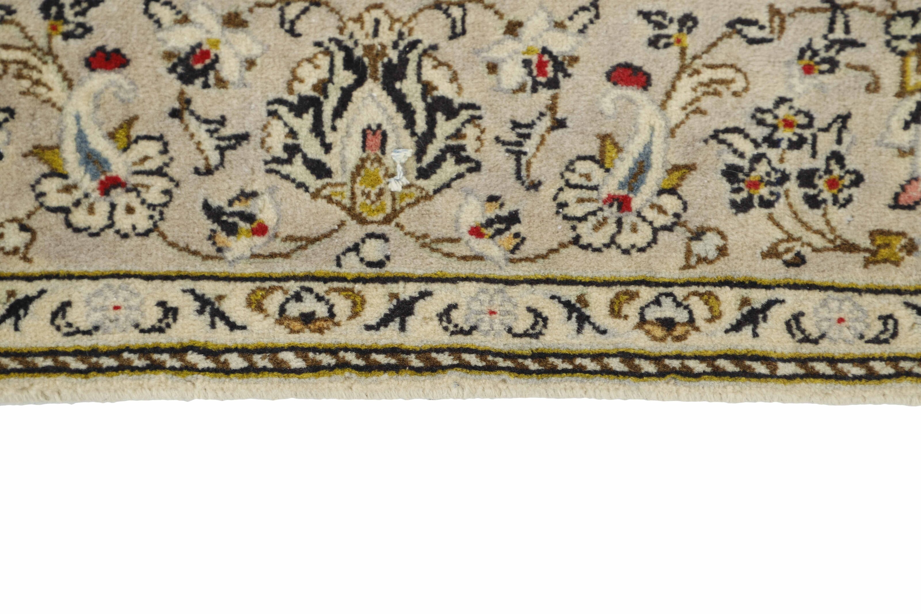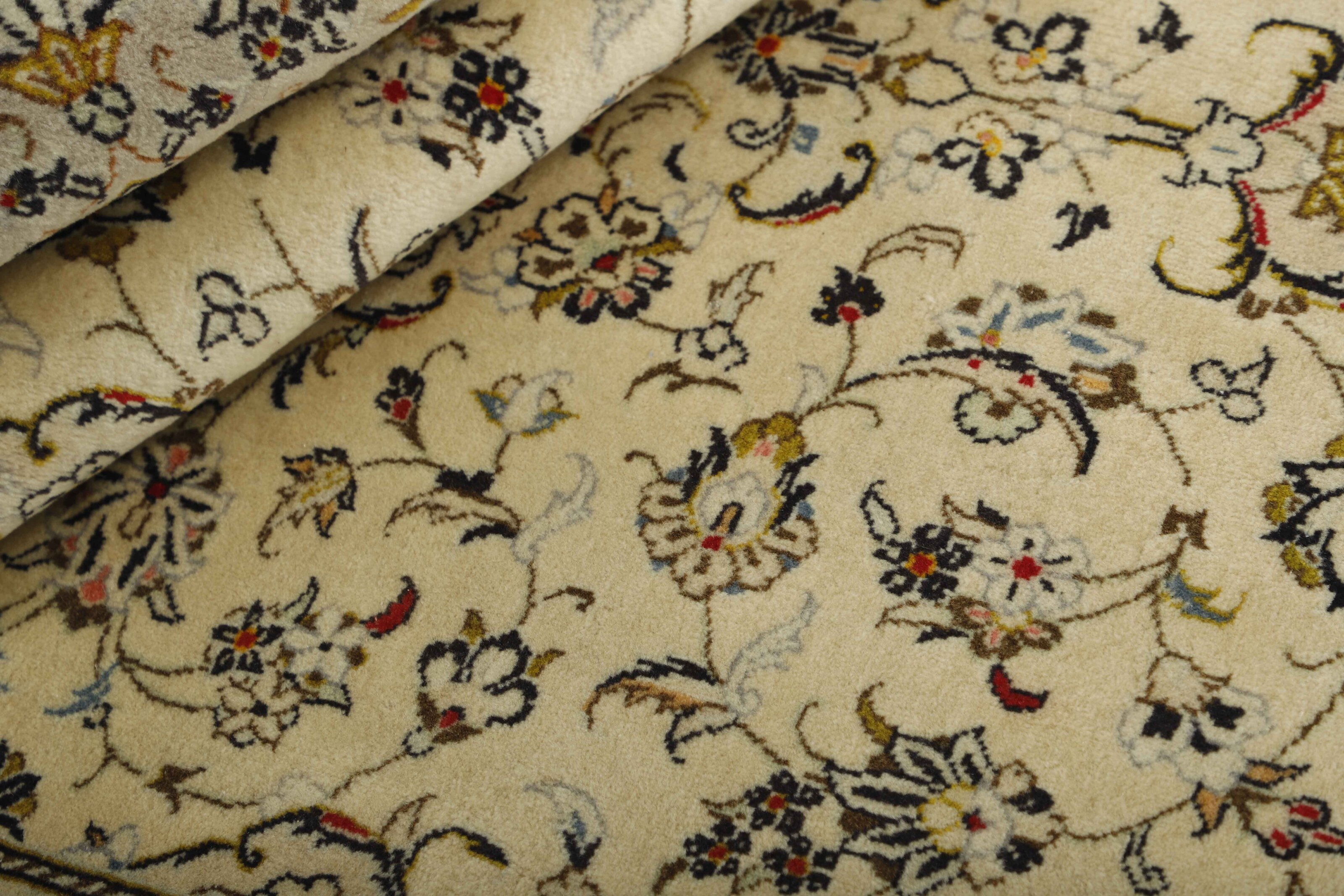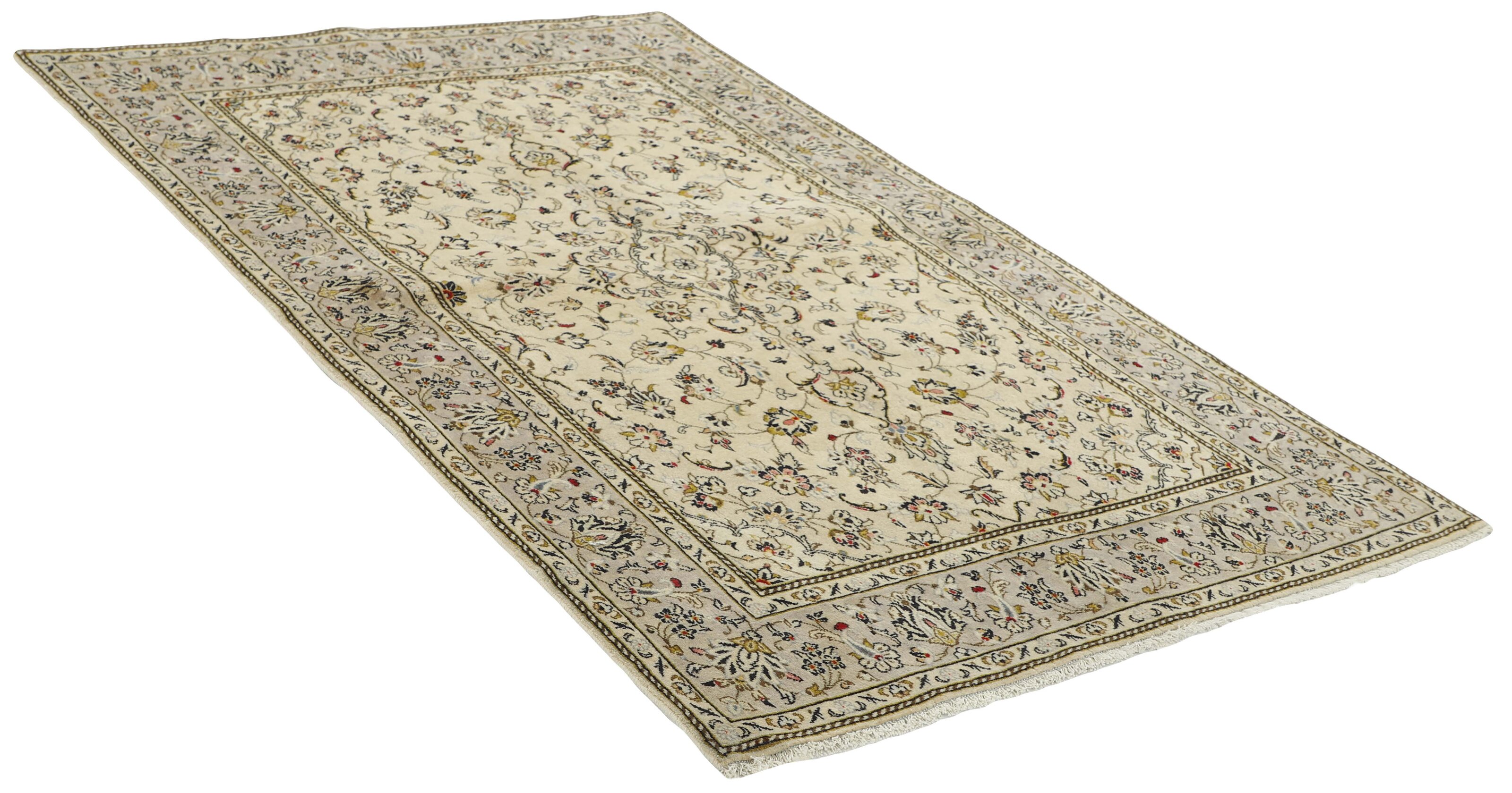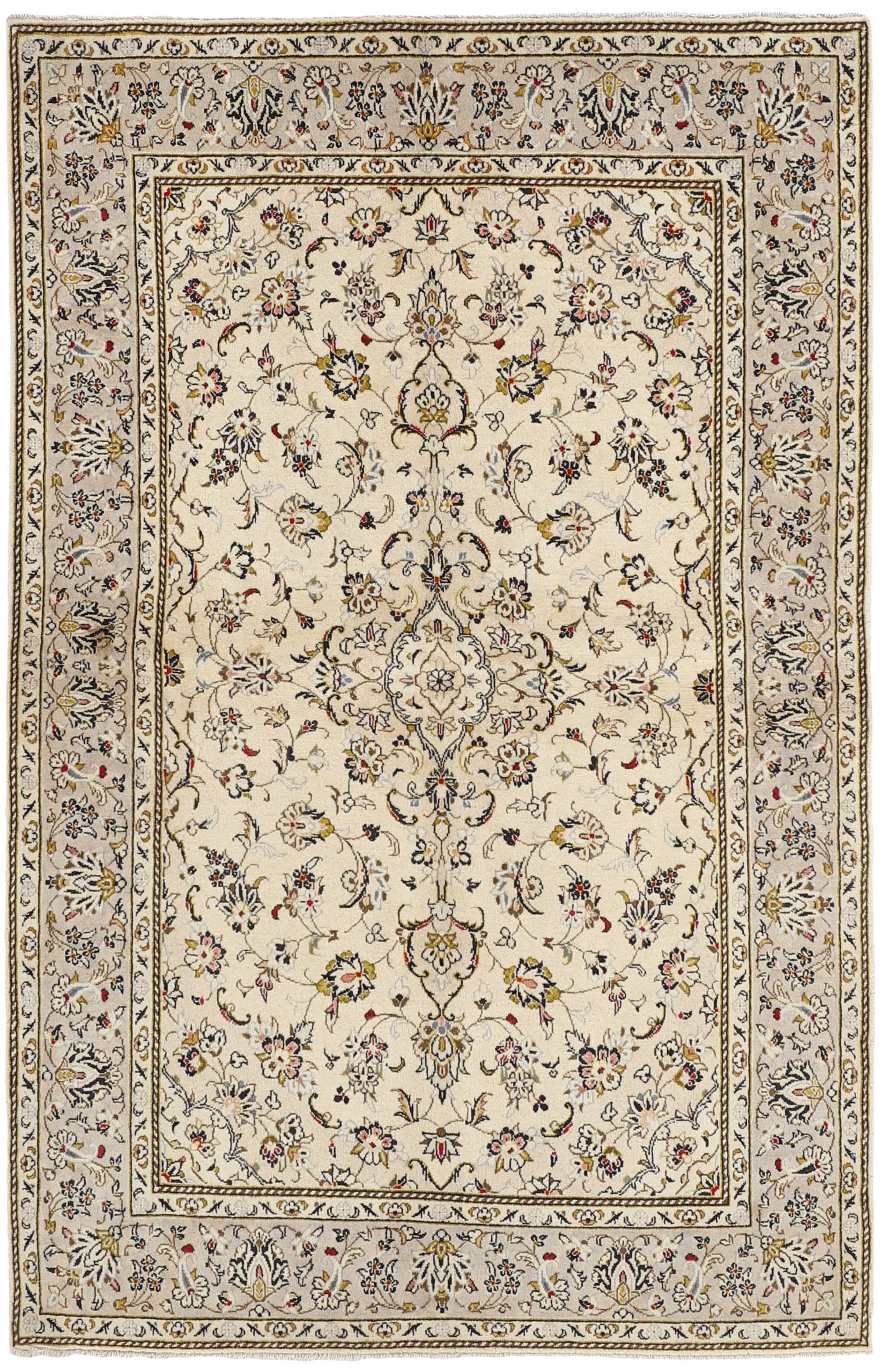 Keshan FineItem no.: 1487846 Size: 137 cm x 217 cmKeshan has always been famed for its handicrafts. The villages lie on the main road between Ghom and Isfahan in central Iran. To the East, the region borders Iran's largest desert. Despite the decline of this particular handicraft during the 20th century, many beautiful Keshan rugs are still being produced in accordance with the traditions of the old masters, e.g. decorated with the beautiful medallion patterns or tapestry featuring human and animal motifs. The patterns are most commonly woven around a medallion in the centre of the rug, some of which are repeated in the corners. The other fields are densely decorated with realistic flowers and vines.