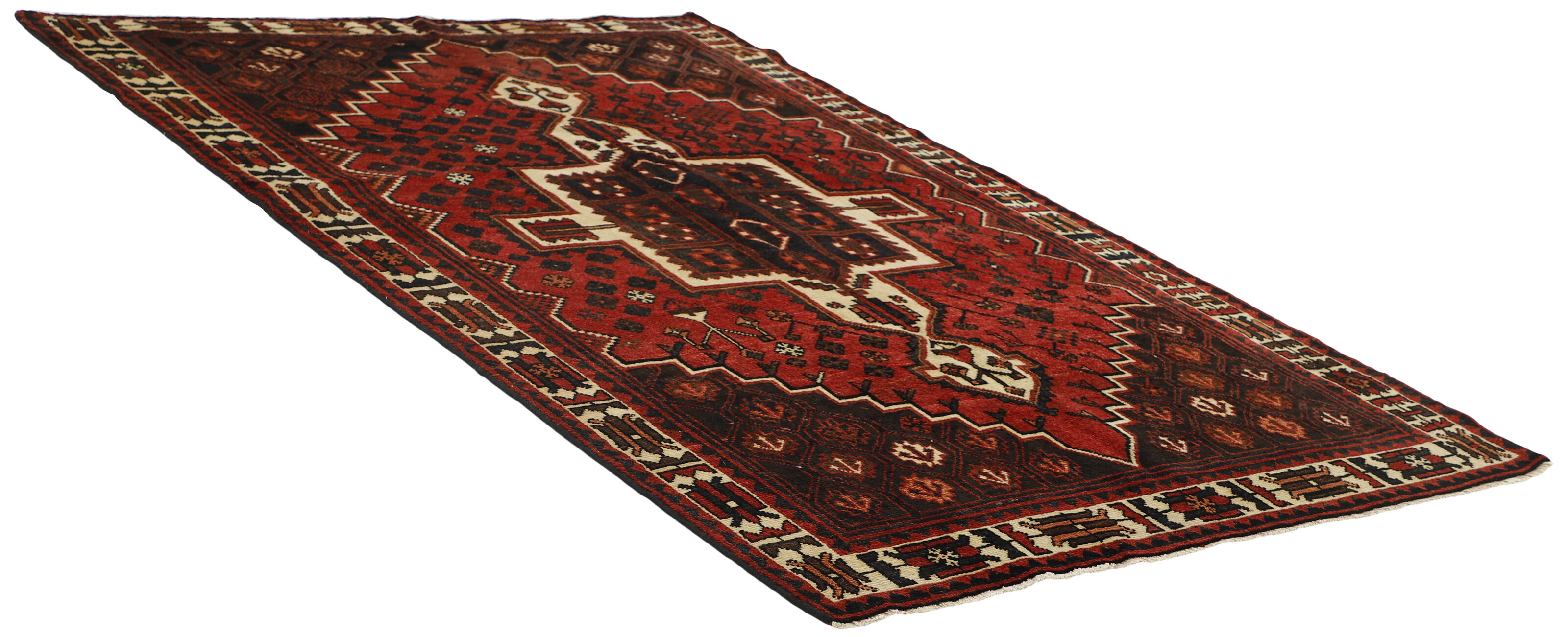 The Lori Tribe is one of the most important nomadic tribes in Iran, and inhabit the southern and western parts of the country. Several of the Lori areas used to belong to the Kashghai. As opposed to the Kashghai, who speak Turkish, the Loris are originally Iranian, and their language is similar to Persian. Pressure from different sides in this century has forced many Loris to give up their nomadic lives and settle in villages. Two main types of Lori rugs are marketed. The nomadic rugs, produced in the southern area, are called “normal Lori Behbehan”. They resemble the Kashghai rugs and are made entirely of wool but they have a different series of motifs, and a generous use of clear, contrasted colours; a strong red is particularly prevalent. The other type of Lori rugs is marketed in the city of Khorramabad. These are squarer and colours are used more cautiously. The patterns show a great deal of variation, with a hole pattern being dominant. The fringes are often beautifully weaved. The city and the district of Hamadan is an important centre for the rug trade, as well as the most productive rug production area of Iran. Hamadan is a major city with hundreds of thousands of people. Like Ekbatan, it was a main city of the Achemenian kings. It has an indigenous Jewish population and numerous monuments, of which the most important are the tombs of Esther and Mordicai (central to Jewish pilgrims), and the tomb at Avicenna. Hamadan is a provincial capitol. Two types of rugs are knotted. One is the so-called “city rug”, also known as the Shahrbaff. The production is modern and largely state controlled. The village production, however, is much more important; Hamadan is a market city for many rug producing villages that each has its own pattern. Most prominent are Borchalu, Tuserkman, Memraban, Khamseh, Begardeh, Enjilas, Hosseinabad, and Zandjan. There is a wide range of patterns but the quality is very consistent. The colours are strong, and often plant colours. The patterns are daring, although random, and Hosseinabad and Enjilas in particular are known for through going patterns. The rugs are usually not much bigger than 3 by 2 metres.