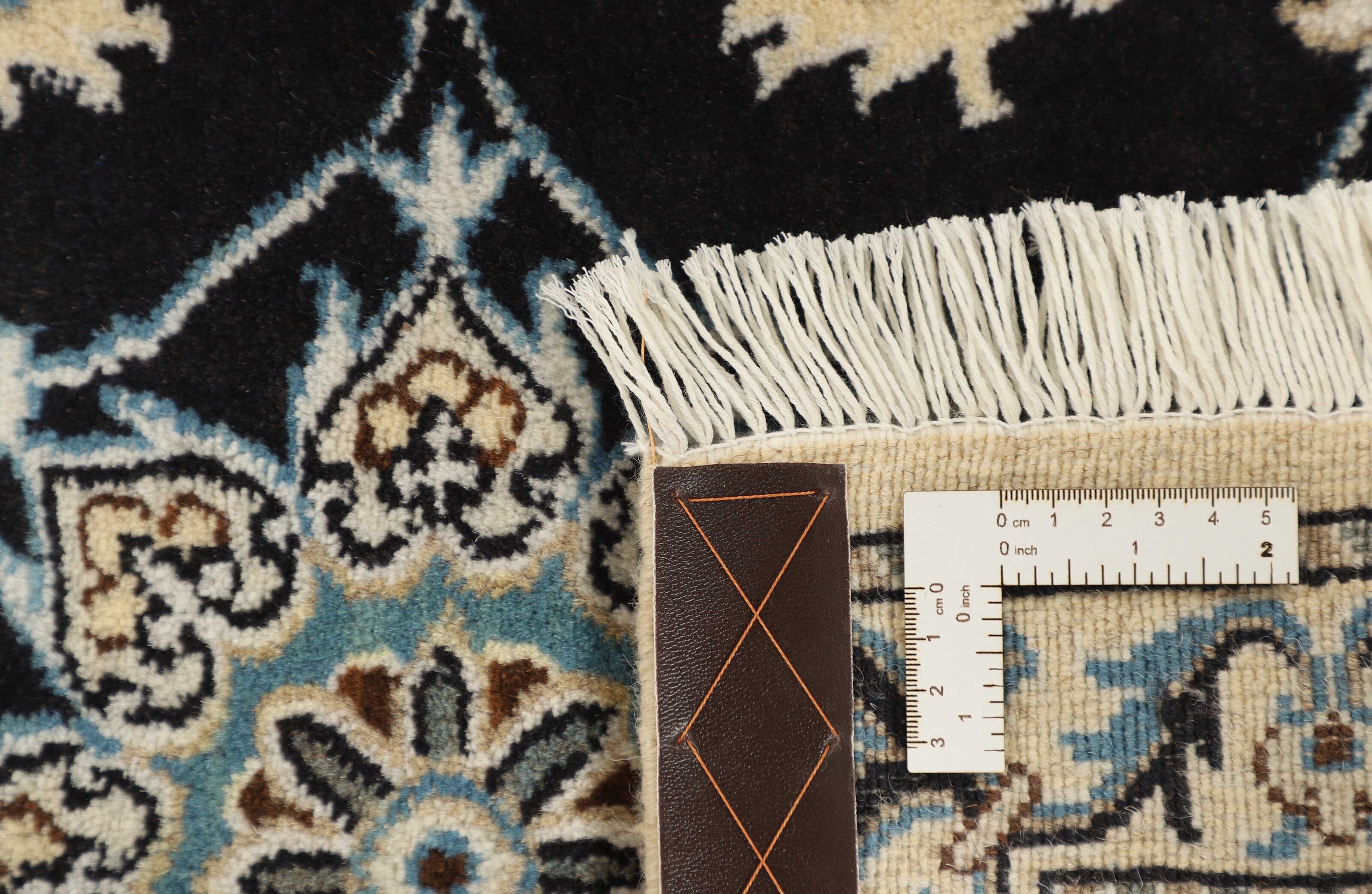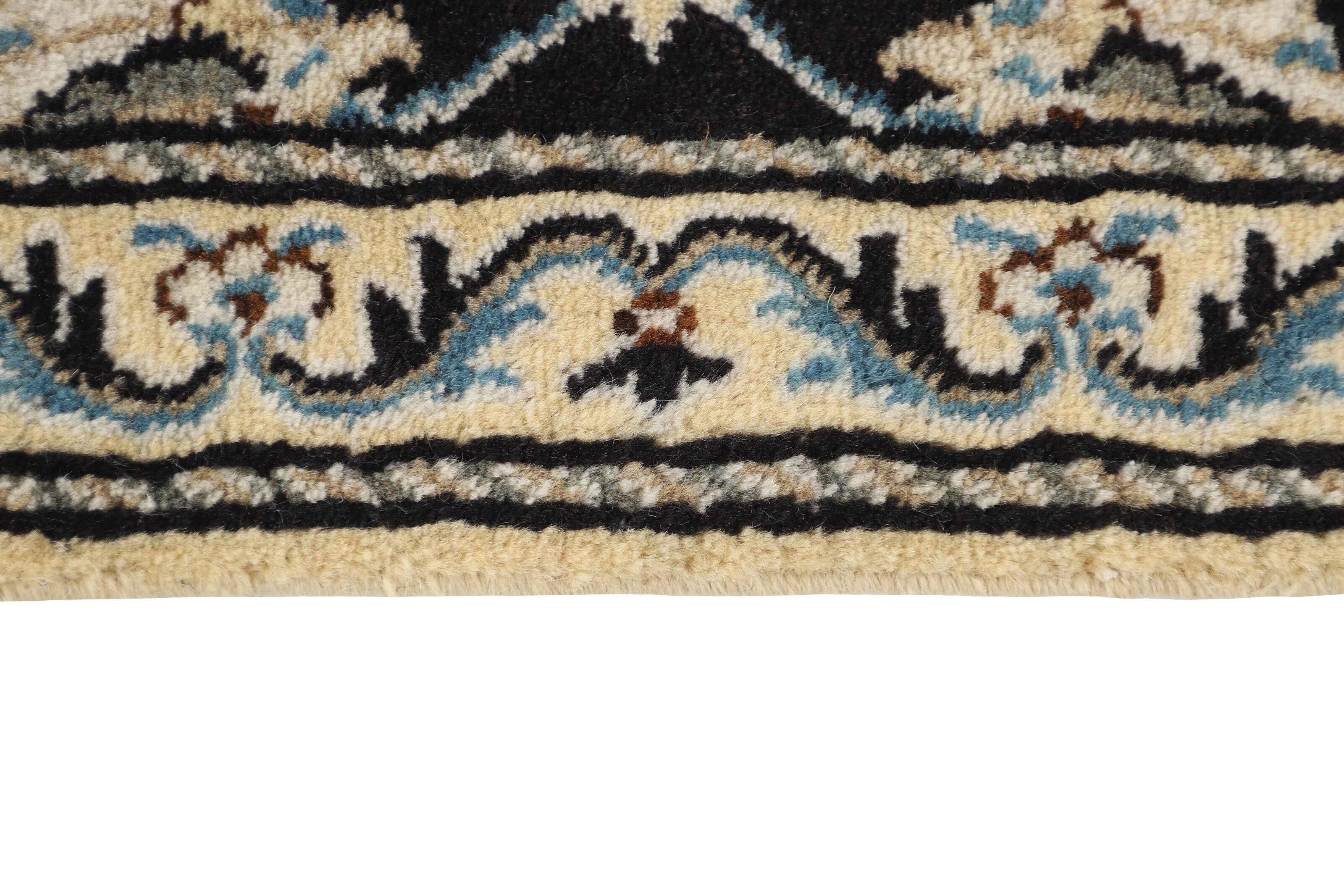 Nain KashmarItem no.: 1519879 Size: 78 cm x 193 cmNain is a city of about 50.000 people, located in the Isfahan Province. It has historic significance, since it was the last stop on caravan routes before Kavir-a-Lut, one of the deserts that stretch through the centre of Iran. The Nain Mosque is one of Iran’s oldest, and is built far better than the later and more famous mosques of Isfahan. The industry in Nain was traditionally focused on the production of wool garments, but the weavers switched to rug production when the demand fell. Their new products soon became famous, as the weavers were skilled and used good quality materials. The warp and weft are cotton, with a wool pile and contours of silk. Sometimes, silk is used more in the base. The colours are refined; nuances of ivory and cream, with small areas of red, green, and blue. As with the rugs from Isfahan, the patterns of the Nain rugs are also classical. The Nain rugs are made in all sizes, including the very large of up to 60m2, and some of these have a pure silk pile. The largest Nain rug produced was 20 by 20 metres.