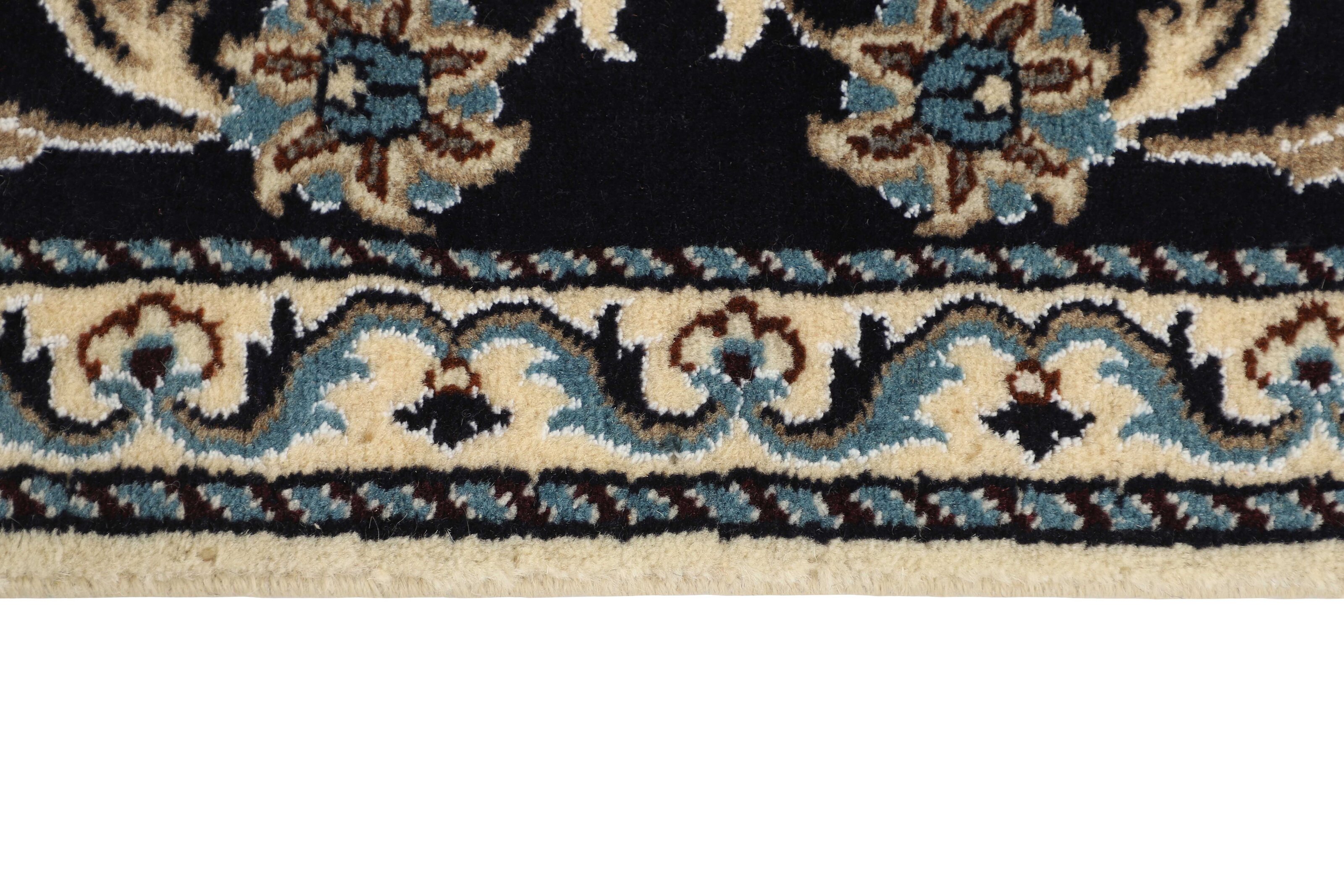 Nain KashmarItem no.: 1519910 Size: 77 cm x 382 cmNain is a city of about 50.000 people, located in the Isfahan Province. It has historic significance, since it was the last stop on caravan routes before Kavir-a-Lut, one of the deserts that stretch through the centre of Iran. The Nain Mosque is one of Iran’s oldest, and is built far better than the later and more famous mosques of Isfahan. The industry in Nain was traditionally focused on the production of wool garments, but the weavers switched to rug production when the demand fell. Their new products soon became famous, as the weavers were skilled and used good quality materials. The warp and weft are cotton, with a wool pile and contours of silk. Sometimes, silk is used more in the base. The colours are refined; nuances of ivory and cream, with small areas of red, green, and blue. As with the rugs from Isfahan, the patterns of the Nain rugs are also classical. The Nain rugs are made in all sizes, including the very large of up to 60m2, and some of these have a pure silk pile. The largest Nain rug produced was 20 by 20 metres.