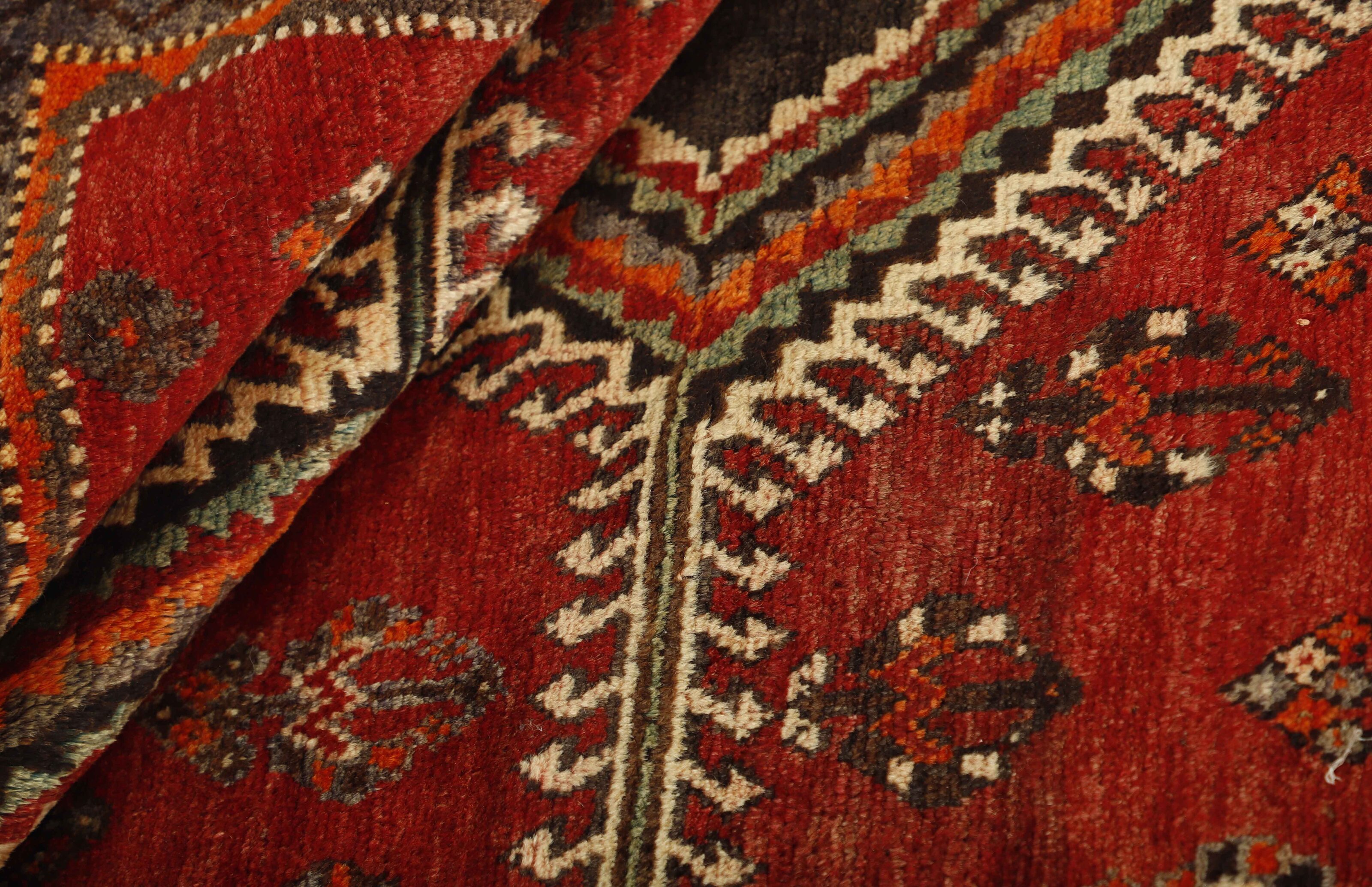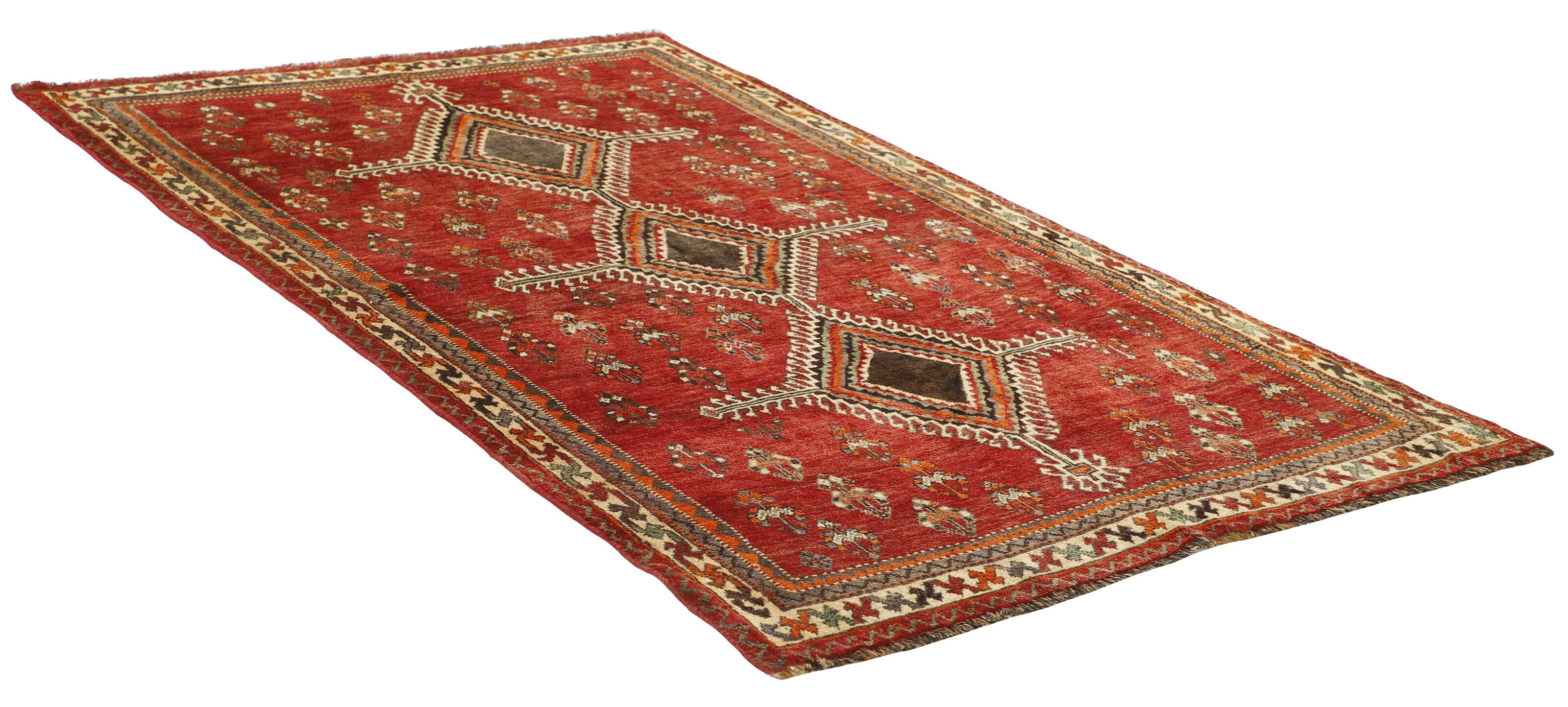 ShirazItem no.: 1489778 Size: 154 cm x 255 cmShiraz, with a population of about one million, is the capitol of the south-eastern province of Fars, and is situated in the Zargros Mountains. Shiraz is an age-old city, which has been the capitol of Iran several times, and it is known as the city of roses and nightingales. It has a reputation of being very relaxed, with a “ we will get around to that tomorrow”-attitude. Shiraz has laid name to rugs that are knotted in the small towns and villages surrounding it, from where they are brought to the city to be sold. The local tribes like the Kashghai, whose best works are even finer and more densely knotted than those knotted in Shiraz itself, also make them. Shiraz rugs are characterised by a deep claret colour, combined with dark blue and small areas of white and green. The wool is soft, and darker wool, sometimes mixed with goat’s hair, is used for both warp and weft. The patterns are coarse and geometrical, often identical to the Kashghai patterns. Often, small, geometrical birds and animals brighten them up. Shiraz rugs are made in all sizes, although big rugs are rare.