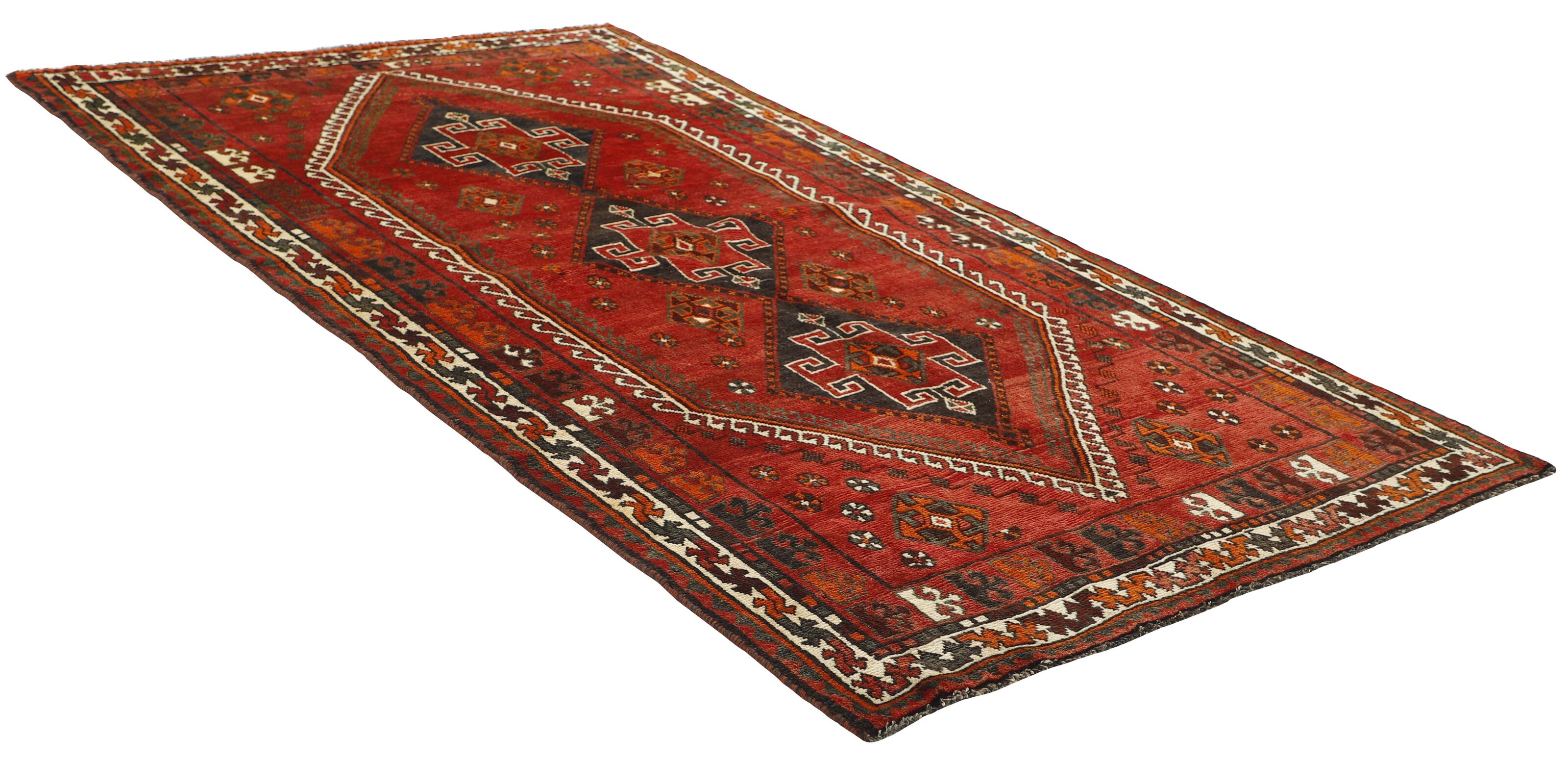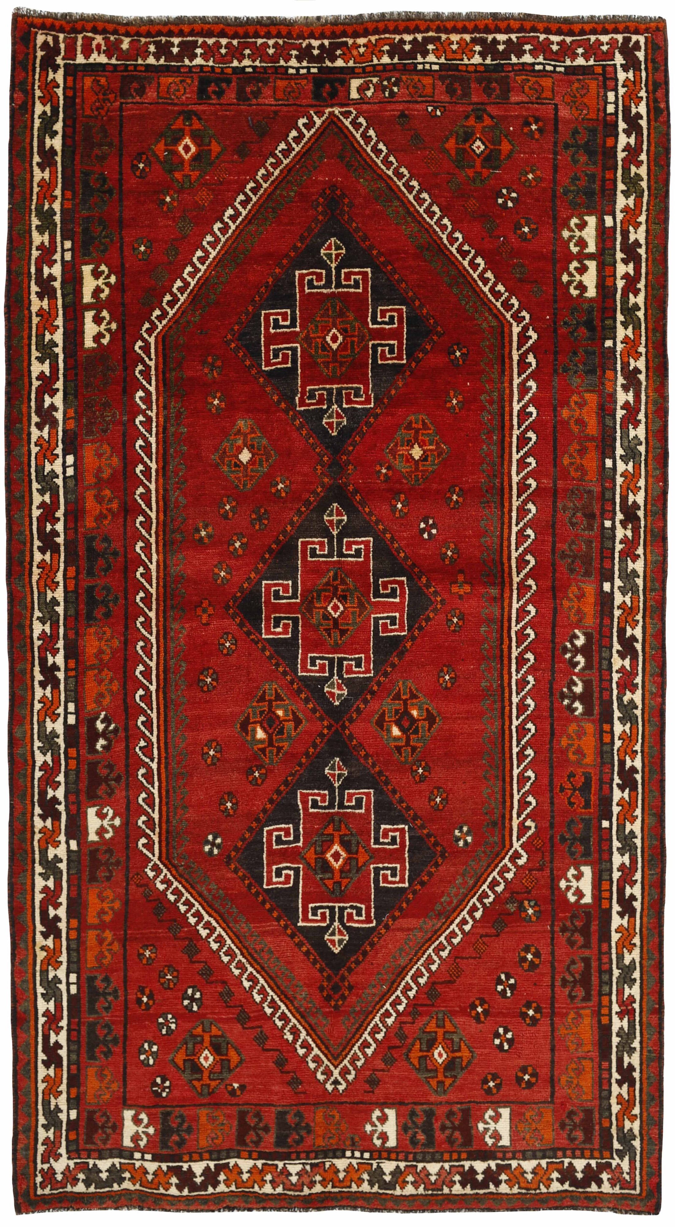 ShirazItem no.: 1489779 Size: 156 cm x 282 cmShiraz, with a population of about one million, is the capitol of the south-eastern province of Fars, and is situated in the Zargros Mountains. Shiraz is an age-old city, which has been the capitol of Iran several times, and it is known as the city of roses and nightingales. It has a reputation of being very relaxed, with a “ we will get around to that tomorrow”-attitude. Shiraz has laid name to rugs that are knotted in the small towns and villages surrounding it, from where they are brought to the city to be sold. The local tribes like the Kashghai, whose best works are even finer and more densely knotted than those knotted in Shiraz itself, also make them. Shiraz rugs are characterised by a deep claret colour, combined with dark blue and small areas of white and green. The wool is soft, and darker wool, sometimes mixed with goat’s hair, is used for both warp and weft. The patterns are coarse and geometrical, often identical to the Kashghai patterns. Often, small, geometrical birds and animals brighten them up. Shiraz rugs are made in all sizes, although big rugs are rare.