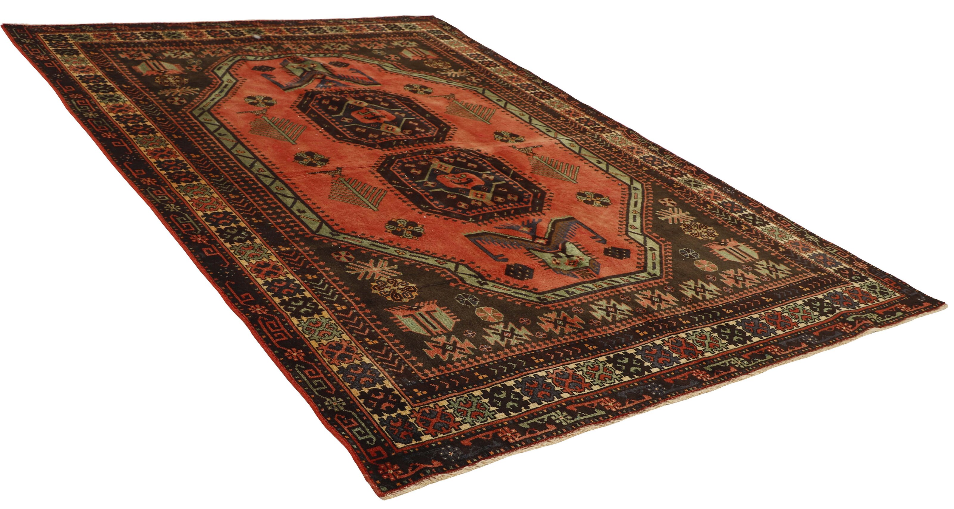 ShirazItem no.: 1489786 Size: 198 cm x 288 cmShiraz, with a population of about one million, is the capitol of the south-eastern province of Fars, and is situated in the Zargros Mountains. Shiraz is an age-old city, which has been the capitol of Iran several times, and it is known as the city of roses and nightingales. It has a reputation of being very relaxed, with a “ we will get around to that tomorrow”-attitude. Shiraz has laid name to rugs that are knotted in the small towns and villages surrounding it, from where they are brought to the city to be sold. The local tribes like the Kashghai, whose best works are even finer and more densely knotted than those knotted in Shiraz itself, also make them. Shiraz rugs are characterised by a deep claret colour, combined with dark blue and small areas of white and green. The wool is soft, and darker wool, sometimes mixed with goat’s hair, is used for both warp and weft. The patterns are coarse and geometrical, often identical to the Kashghai patterns. Often, small, geometrical birds and animals brighten them up. Shiraz rugs are made in all sizes, although big rugs are rare.