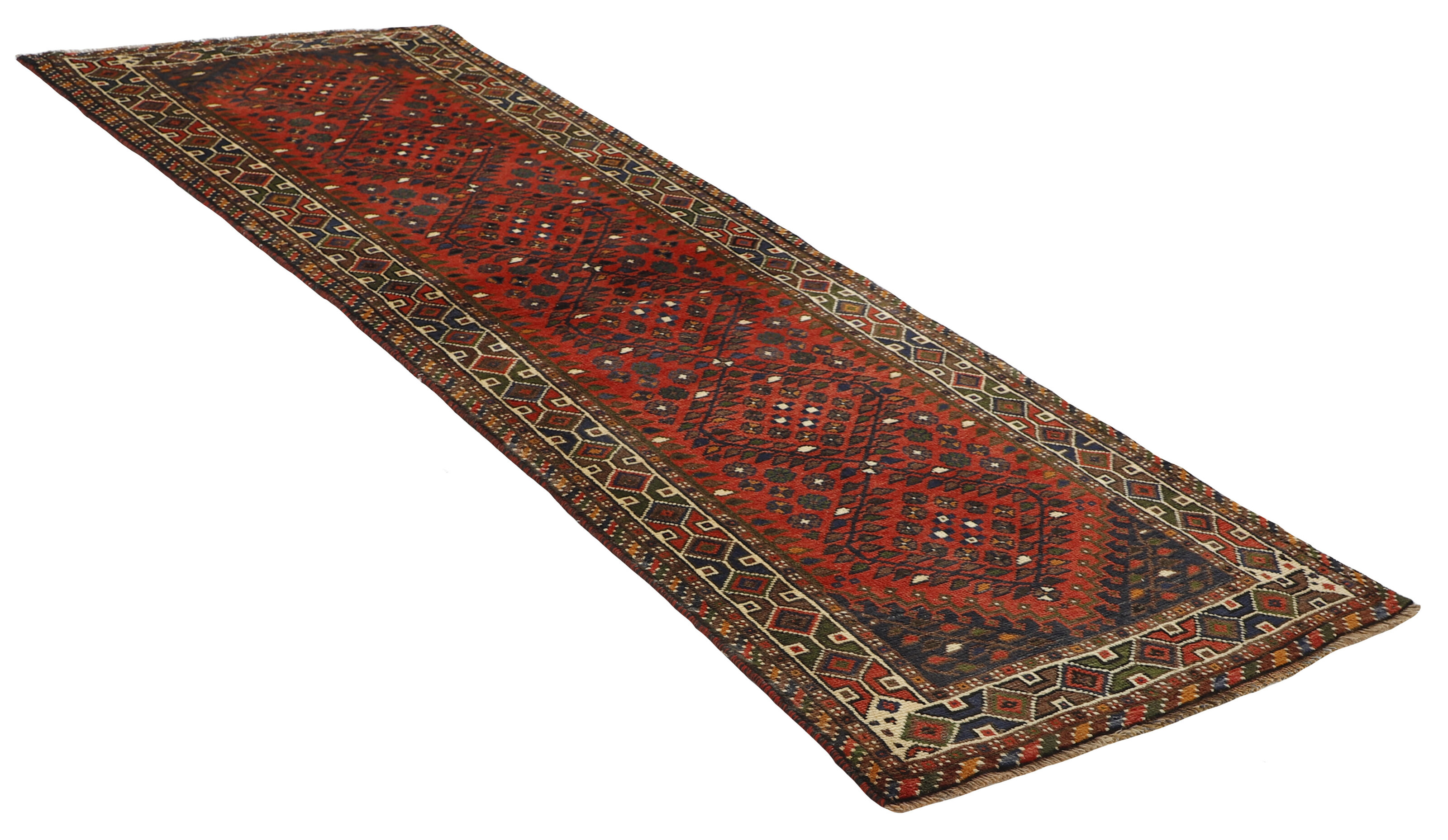 ShirazItem no.: 1489795 Size: 97 cm x 293 cmShiraz, with a population of about one million, is the capitol of the south-eastern province of Fars, and is situated in the Zargros Mountains. Shiraz is an age-old city, which has been the capitol of Iran several times, and it is known as the city of roses and nightingales. It has a reputation of being very relaxed, with a “ we will get around to that tomorrow”-attitude. Shiraz has laid name to rugs that are knotted in the small towns and villages surrounding it, from where they are brought to the city to be sold. The local tribes like the Kashghai, whose best works are even finer and more densely knotted than those knotted in Shiraz itself, also make them. Shiraz rugs are characterised by a deep claret colour, combined with dark blue and small areas of white and green. The wool is soft, and darker wool, sometimes mixed with goat’s hair, is used for both warp and weft. The patterns are coarse and geometrical, often identical to the Kashghai patterns. Often, small, geometrical birds and animals brighten them up. Shiraz rugs are made in all sizes, although big rugs are rare.